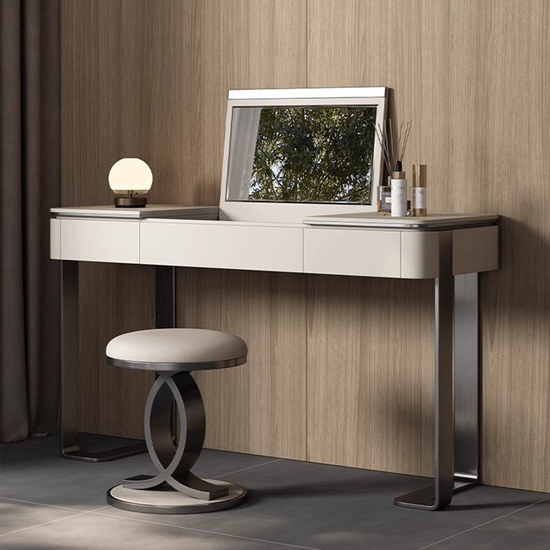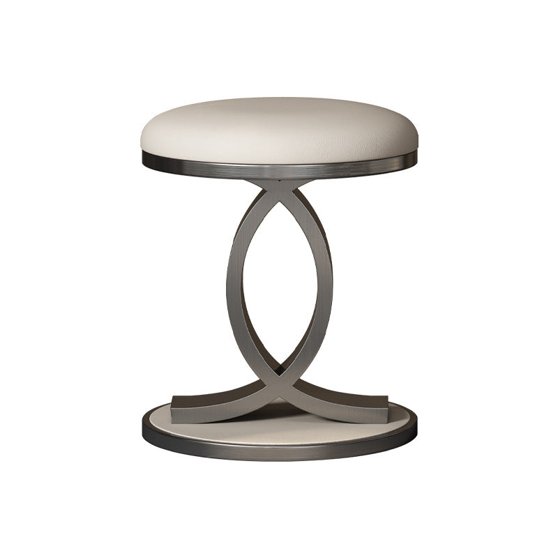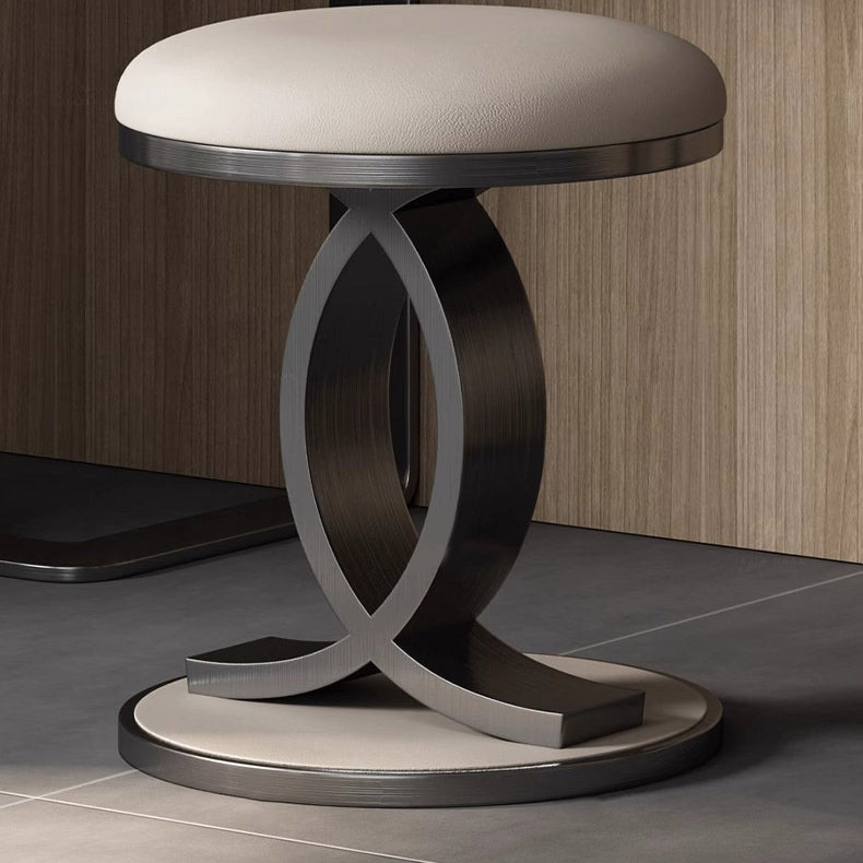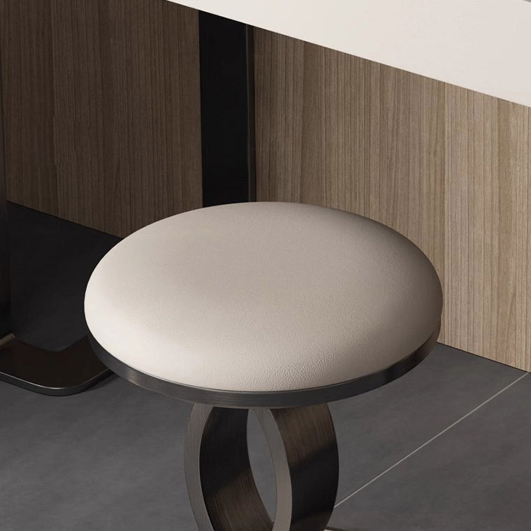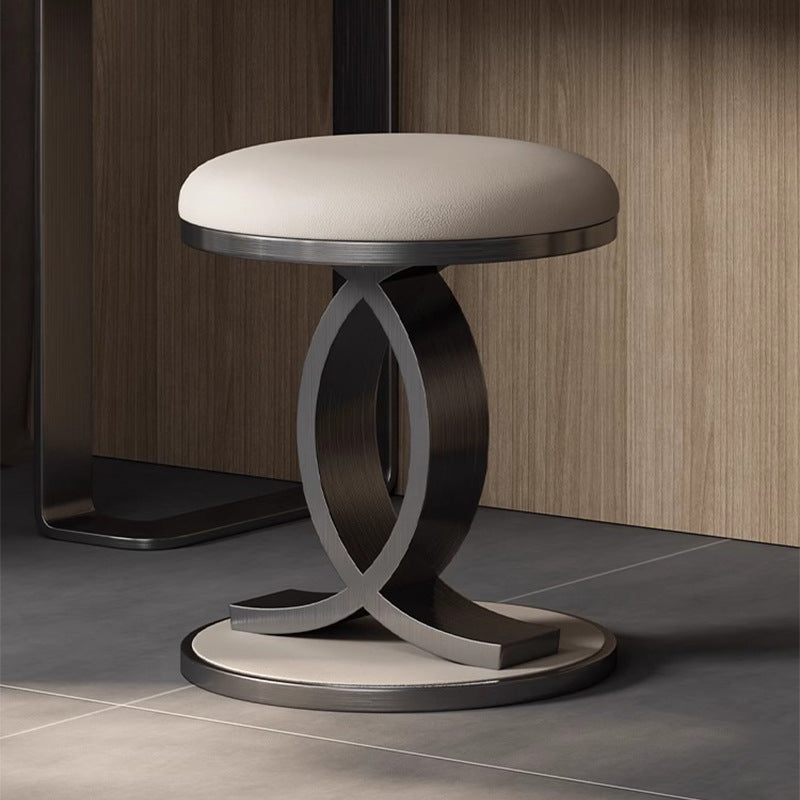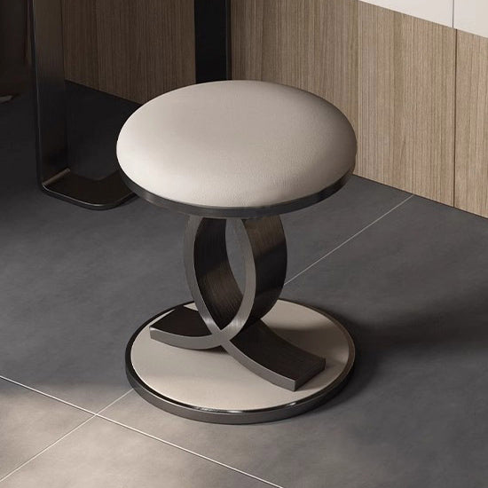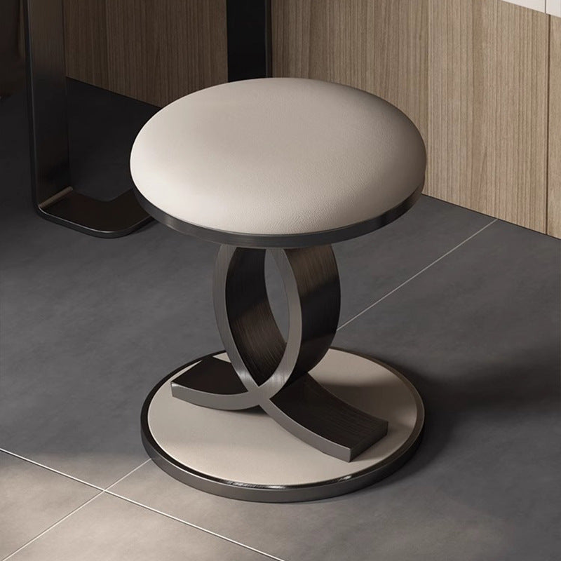 Contemporary Nordic Round Microfiber Leather Vanity Stool For Bedroom