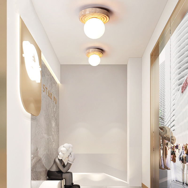مصباح سقف عصري دائري مطوي من الزجاج البيج من ترافرتين، بتصميم نورديك، مزود بإضاءة واحدة، ومثبت بشكل نصف مسطح، لغرفة المعيشة
