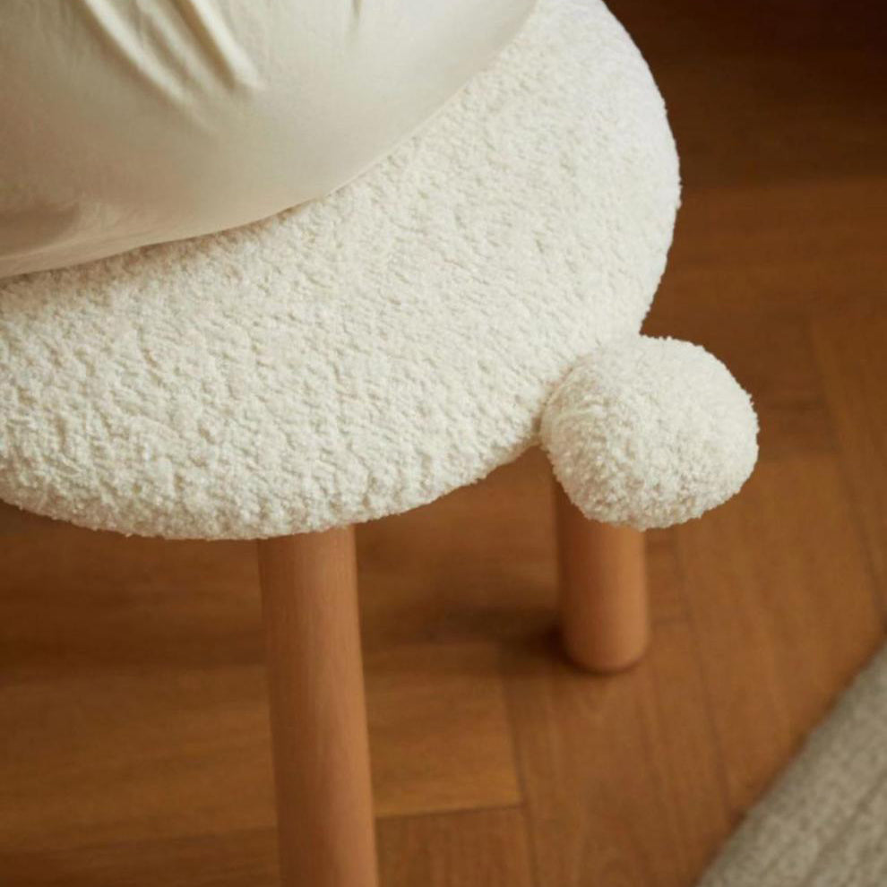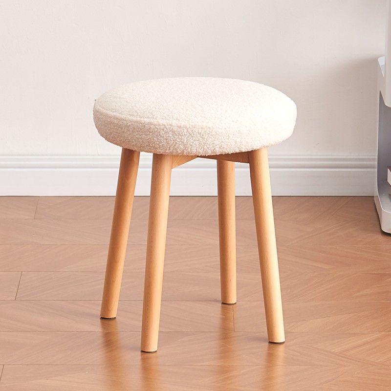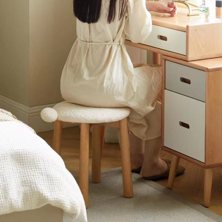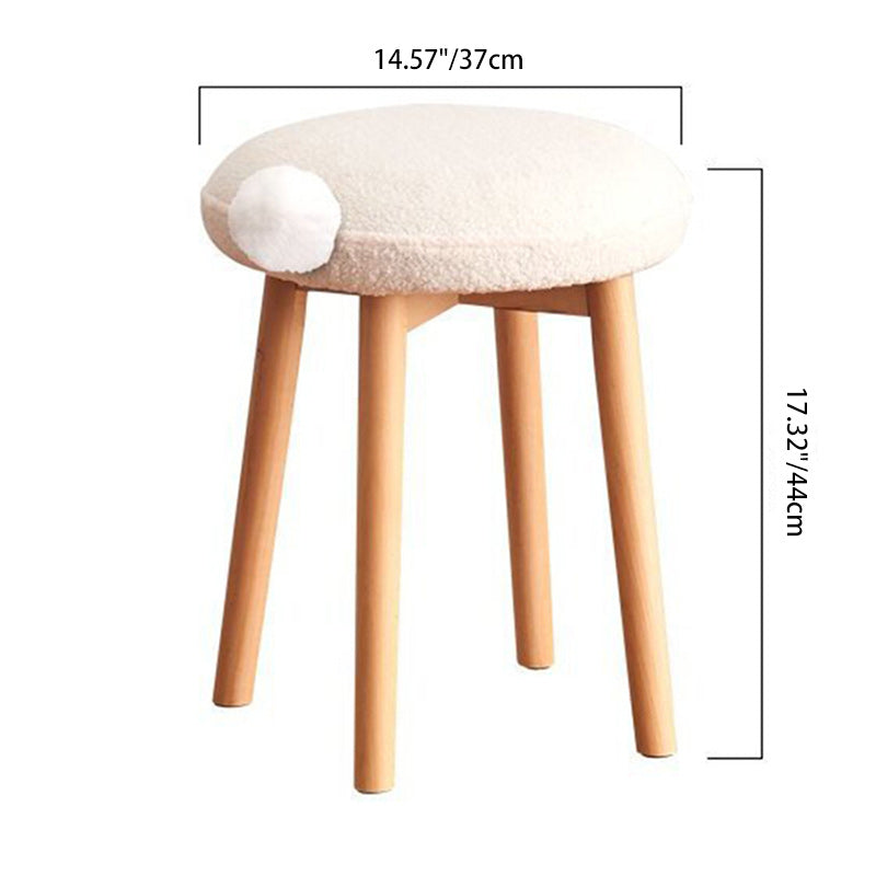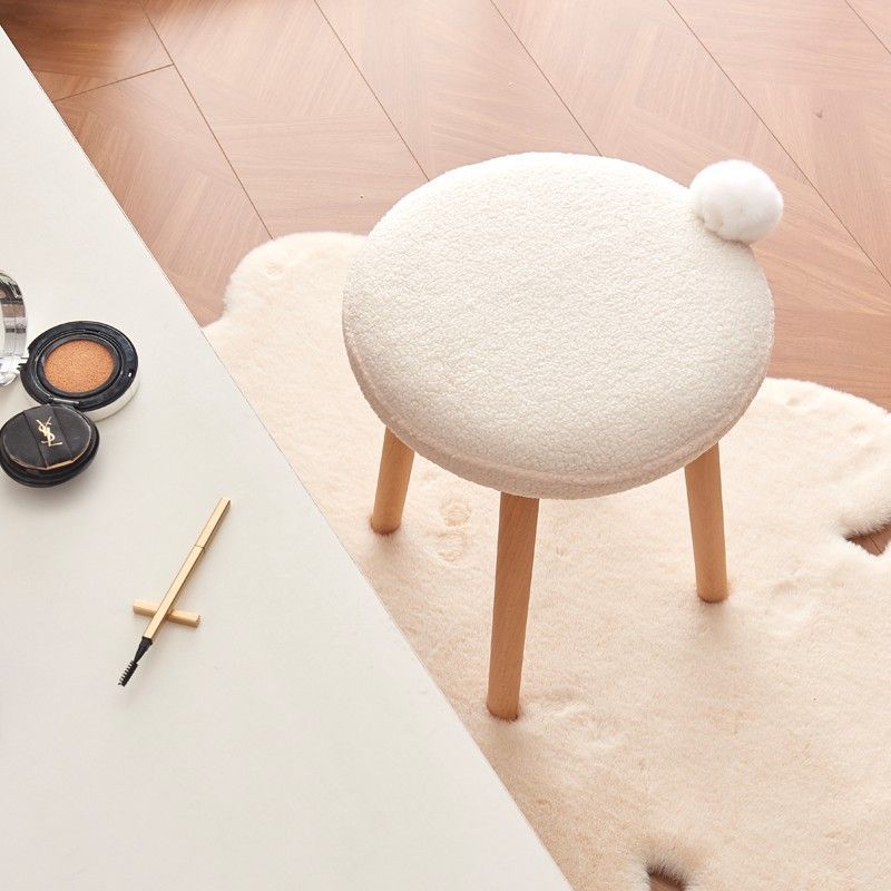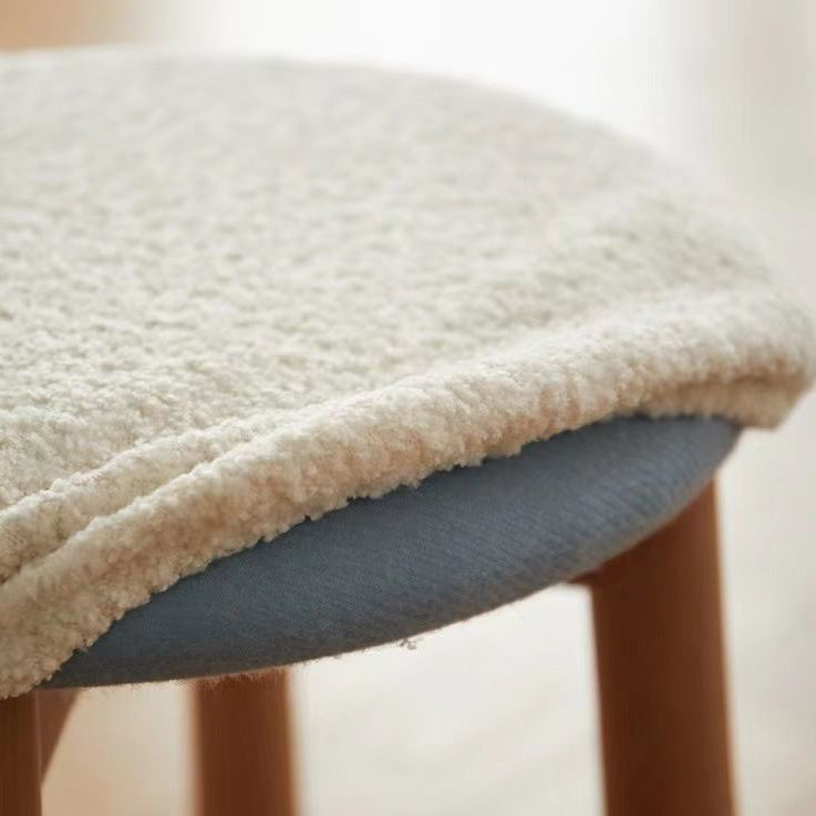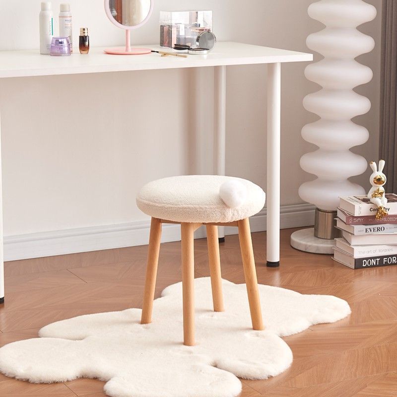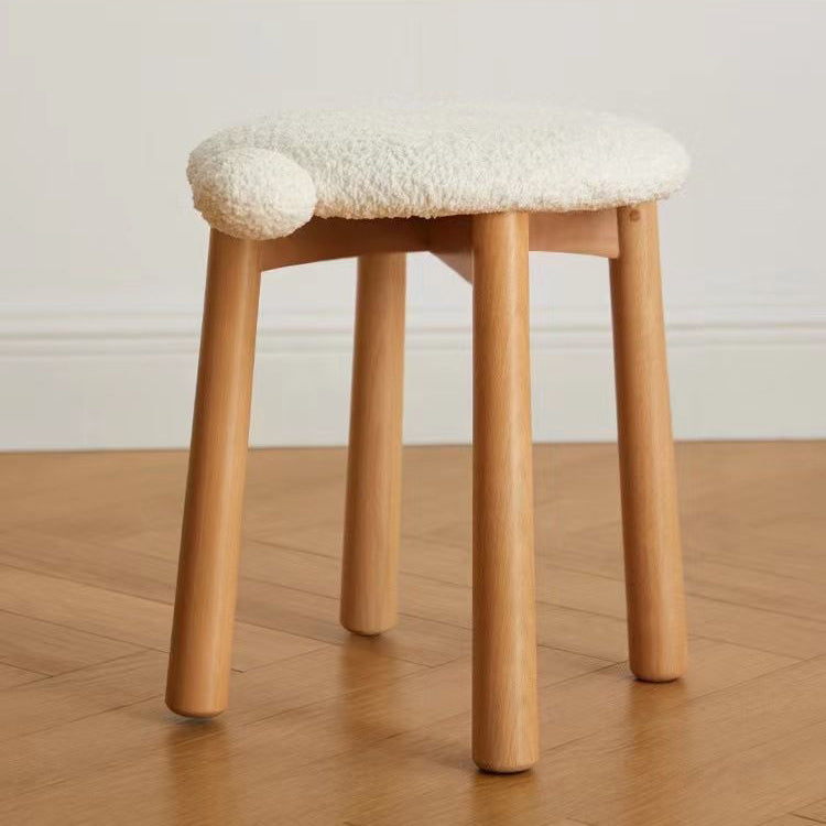 Contemporary Nordic Round Wood Lambswool Vanity Stool For Bedroom