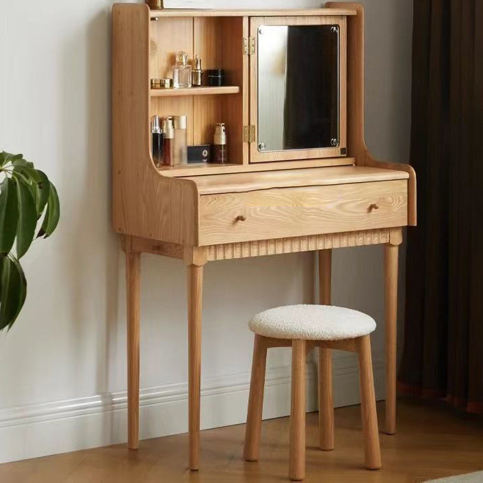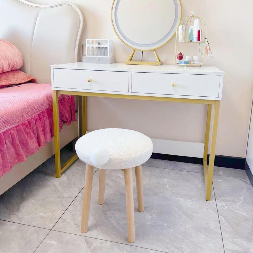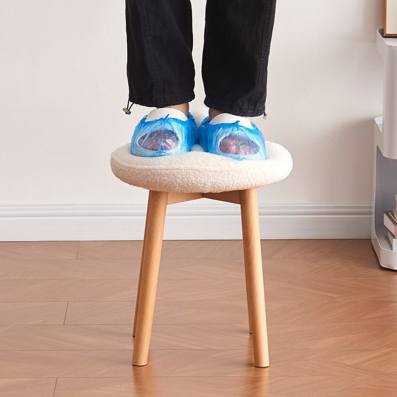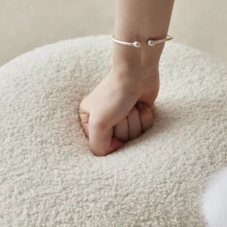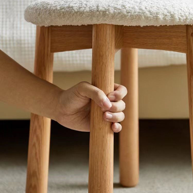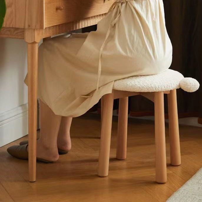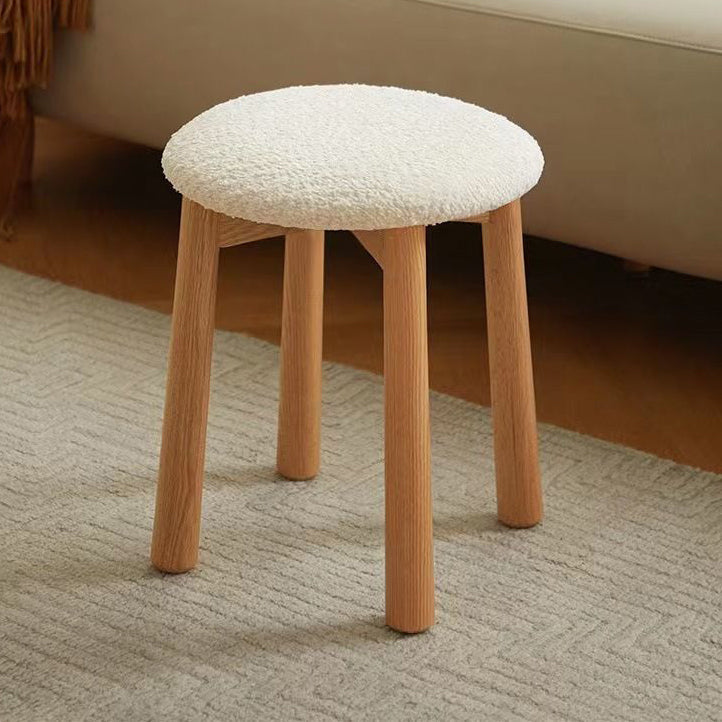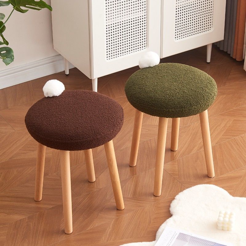 Contemporary Nordic Round Wood Lambswool Vanity Stool For Bedroom
