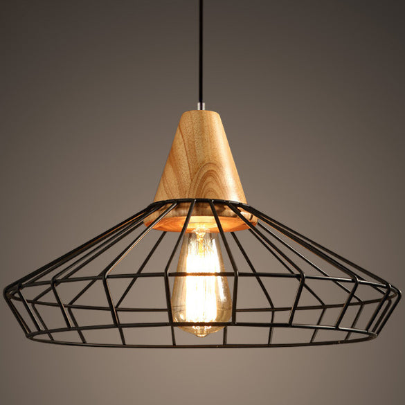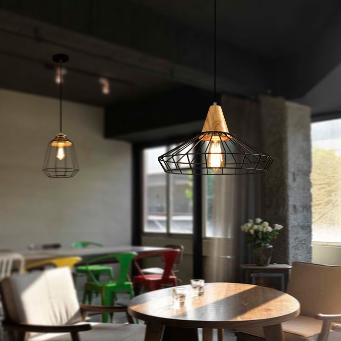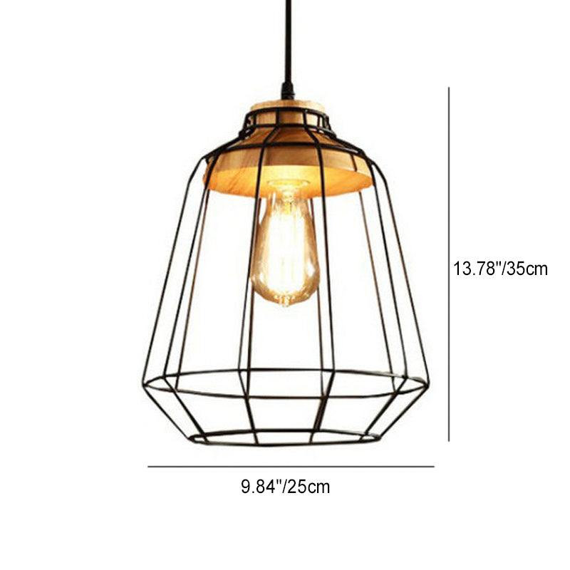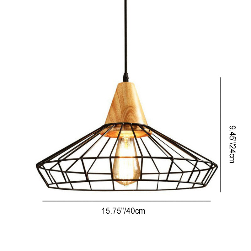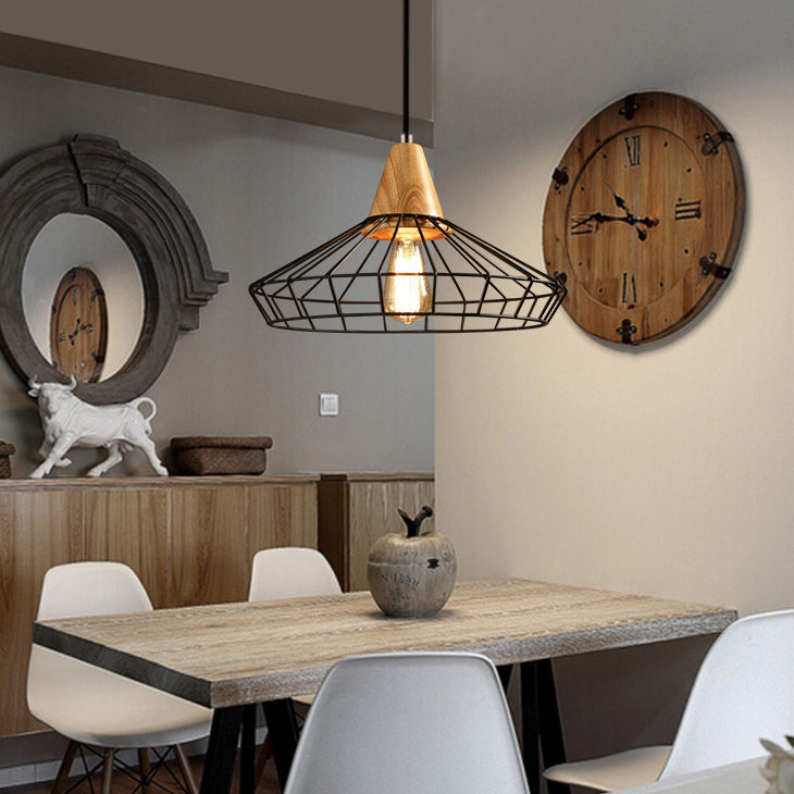 مصباح معلق عصري من الخشب الصلب بتصميم هيكل دائري متعدد الأضلاع، مزود بمصباح واحد لغرفة المعيشة