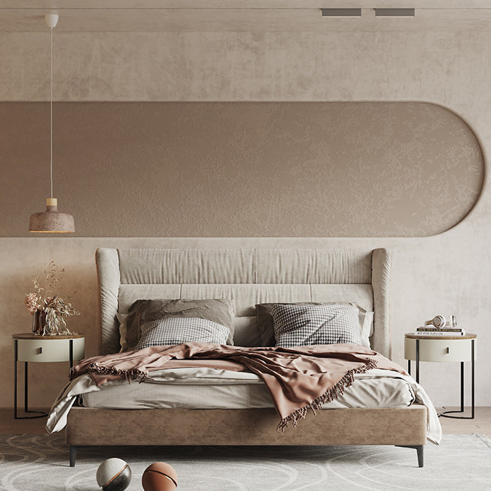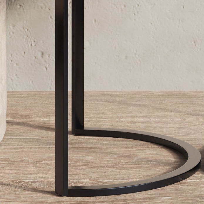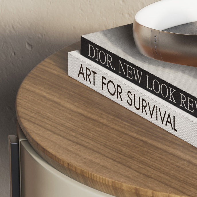 Contemporary Nordic Solid Wood Round Top Iron Nightstand 1-Drawer For Bedroom