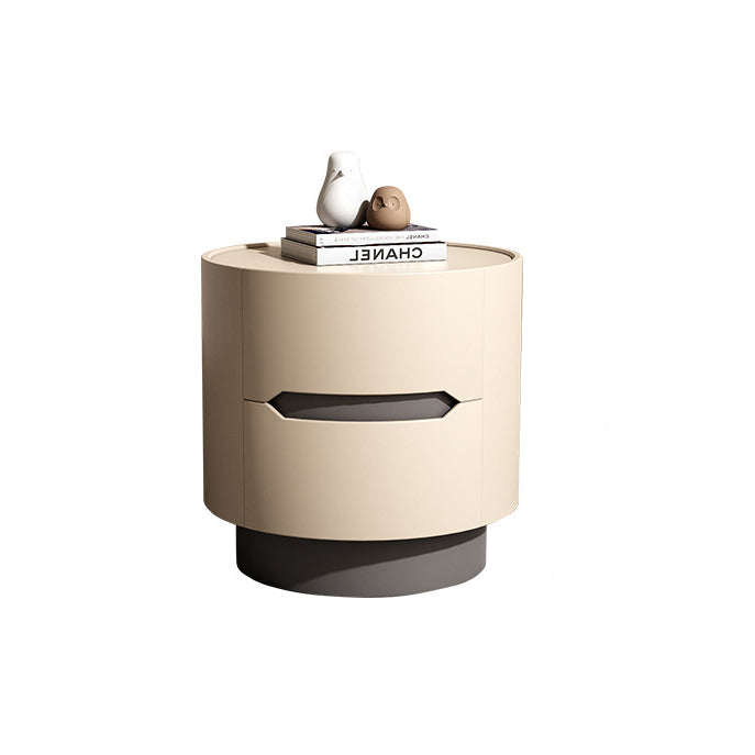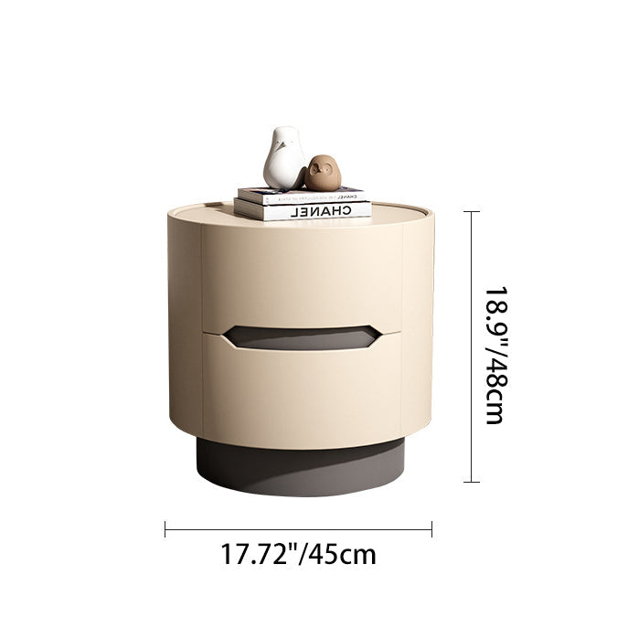 Contemporary Nordic Solid Wood Round Top Nightstand 2-Drawer Storage Cabinet For Bedroom