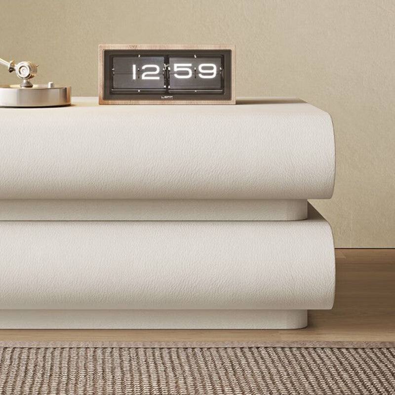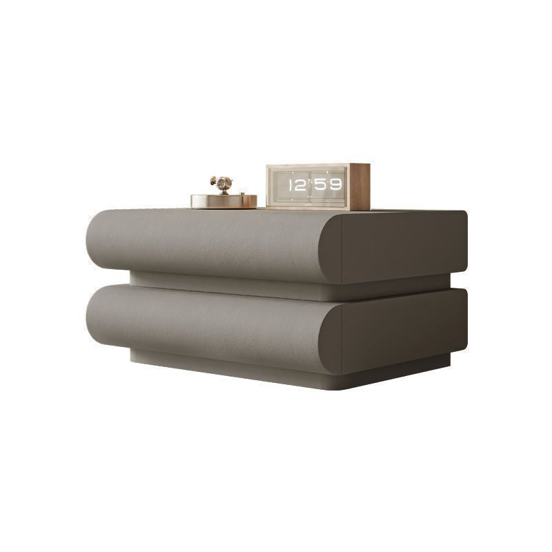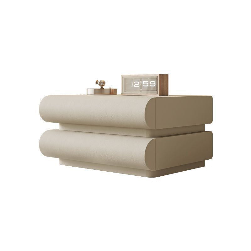 Contemporary Nordic Square Cube Solid Wood Leather Hardware Nightstand 2 - Drawer For Bedroom