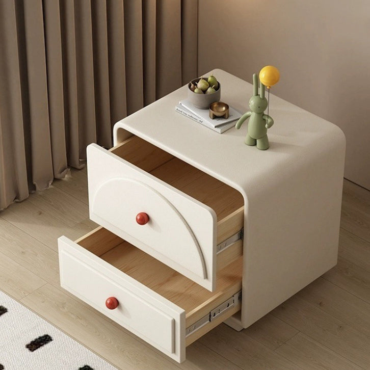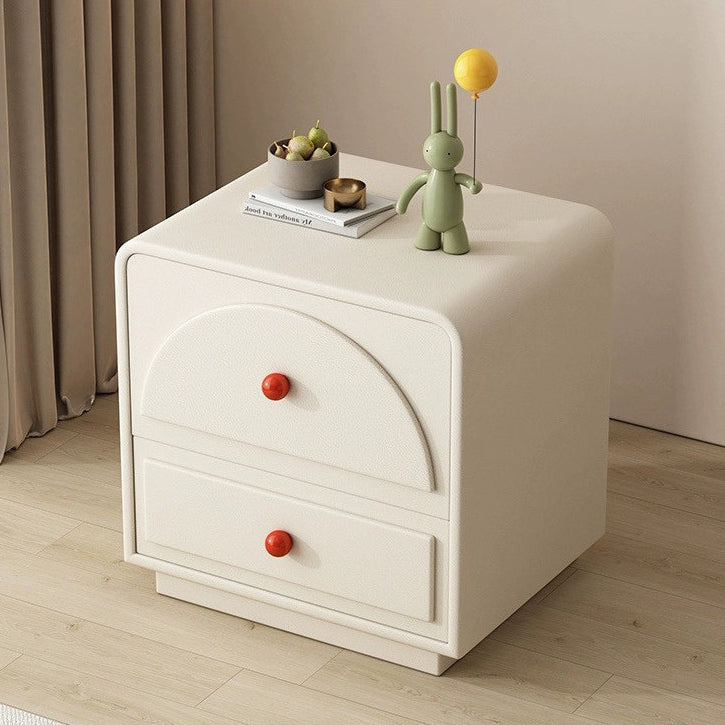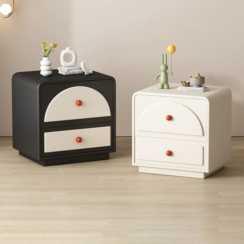 Contemporary Nordic Square Rectangle Wood Nightstand 2-Drawer For Bedroom