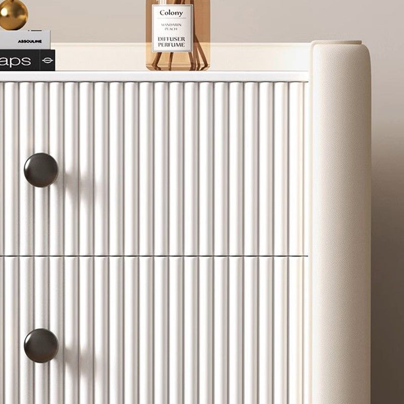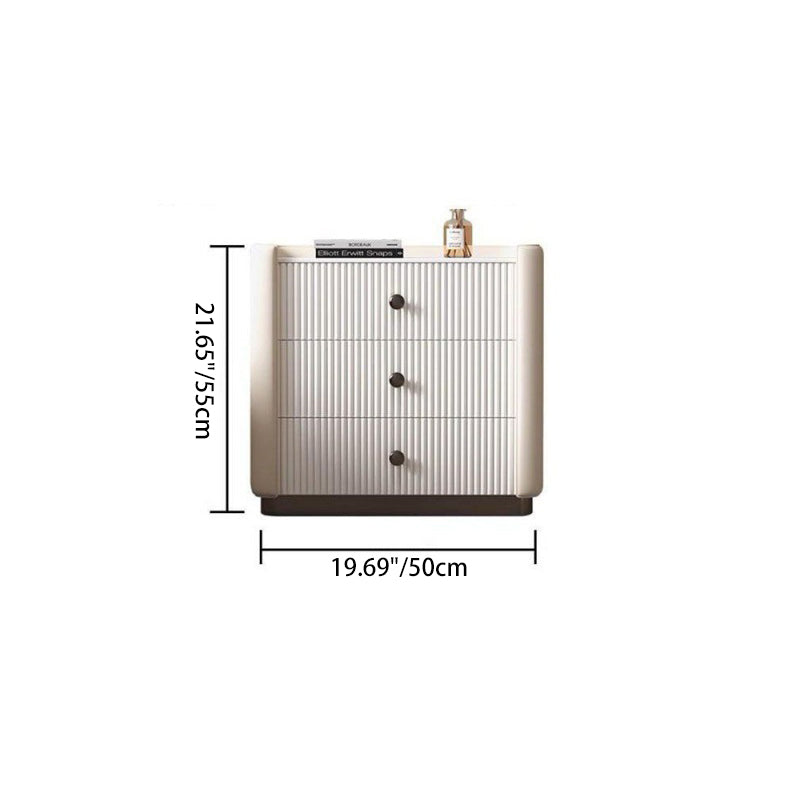 Contemporary Nordic Square Sintered Stone Top Solid Wood Leather Nightstand 3-Drawer For Bedroom