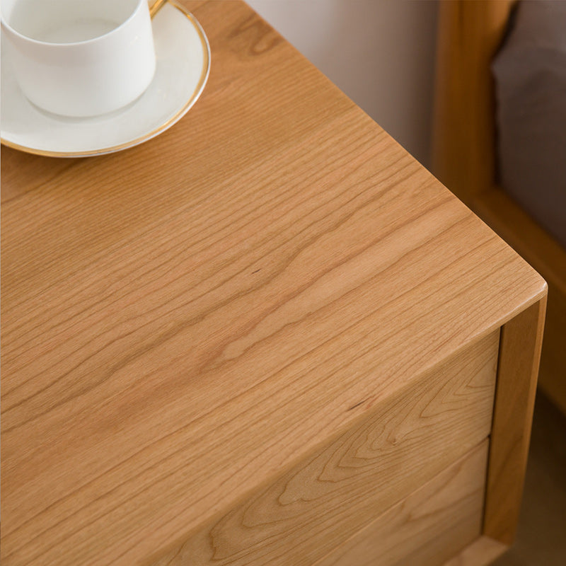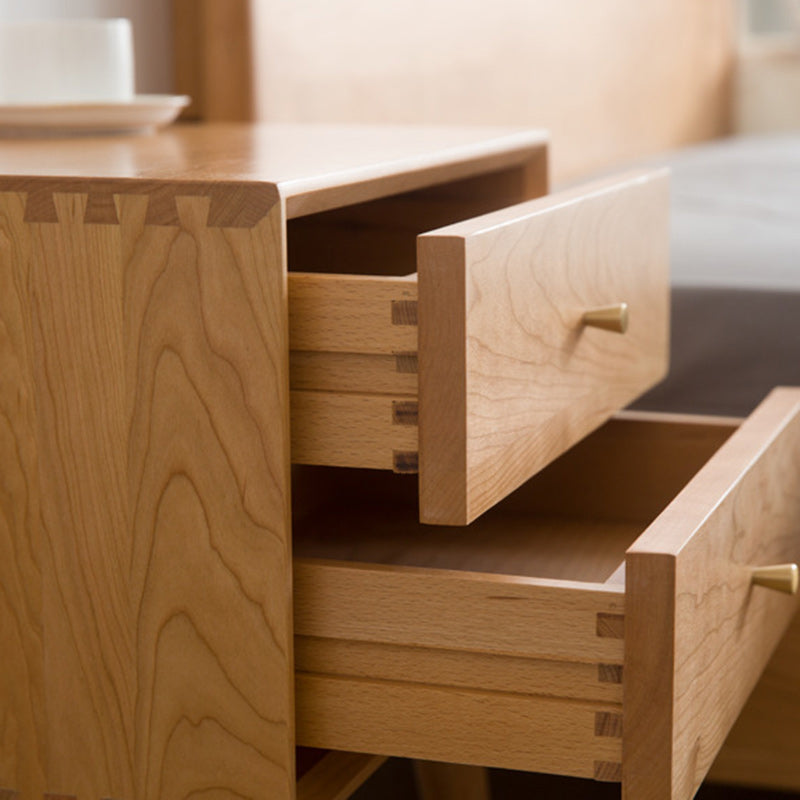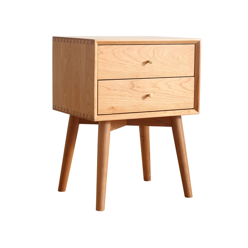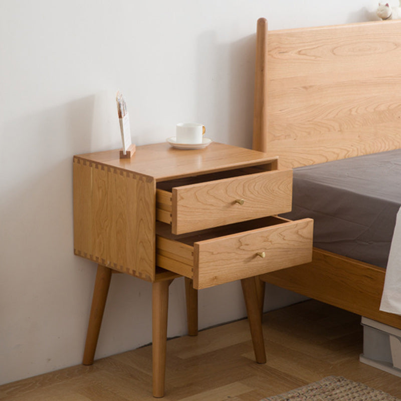 Contemporary Nordic Square Solid Wood Nightstand 2-Drawer For Bedroom
