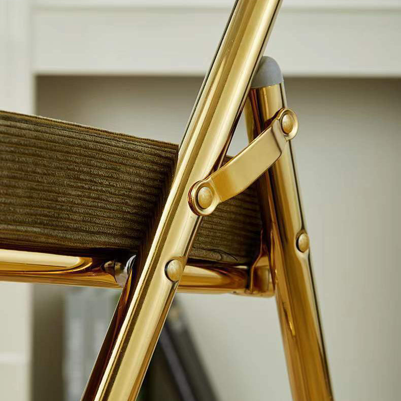 Contemporary Nordic Square Velvet Upholstered Metal Foldable Vanity Stool Backrest Footrest For Bedroom