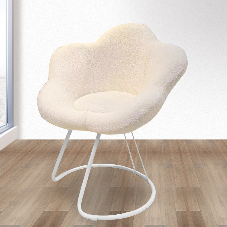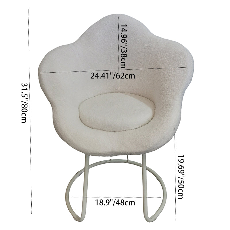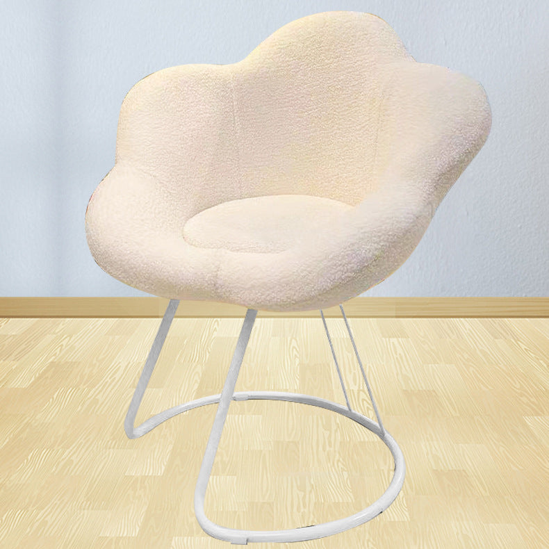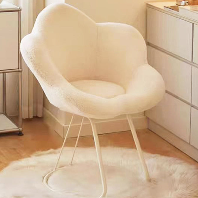 Contemporary Nordic Swivel Lambswool Iron Petal Vanity Stool With Backrest & Armrests For Bedroom