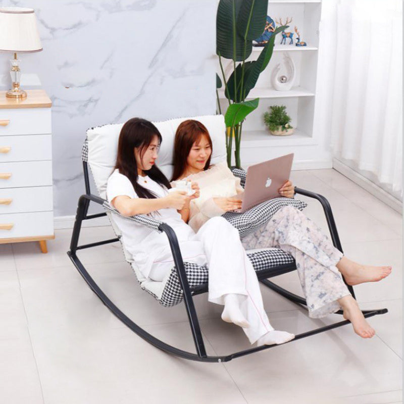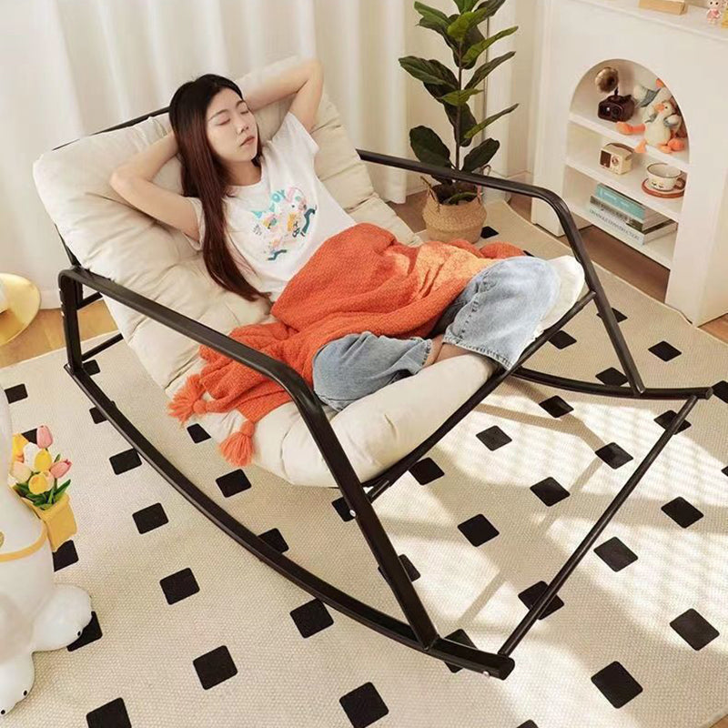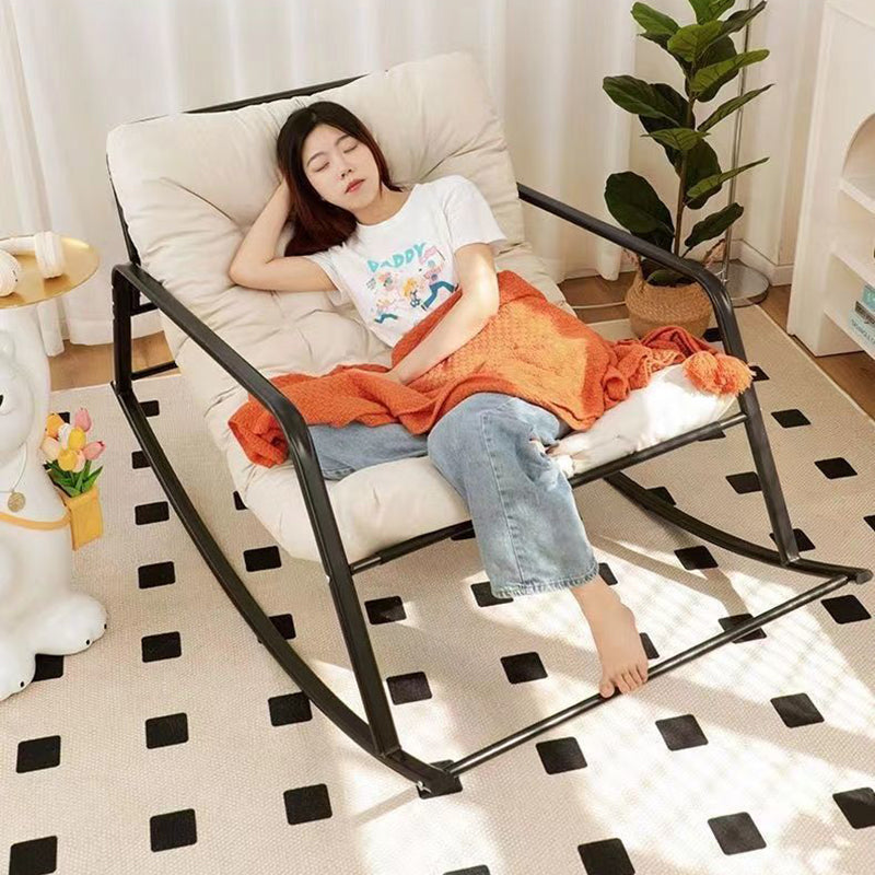 Contemporary Nordic Tech Fabric & Carbon Steel Moon Rocking Chair With Backrest & Armrests For Living Room & Bedroom