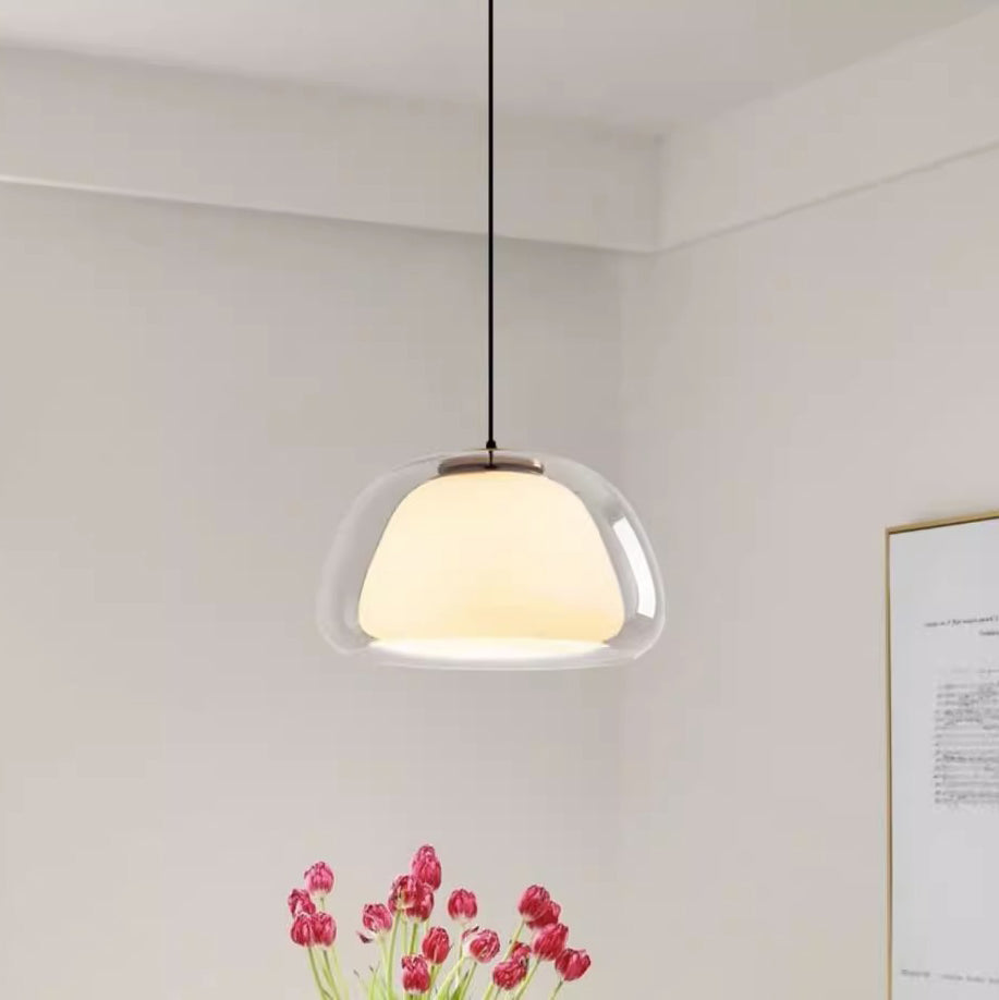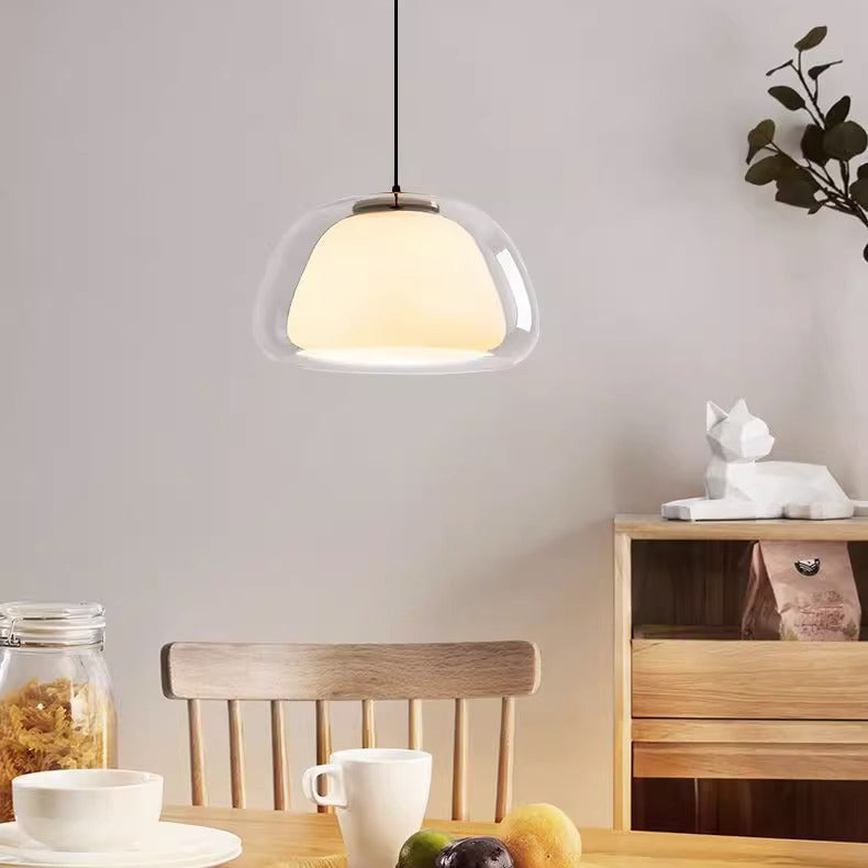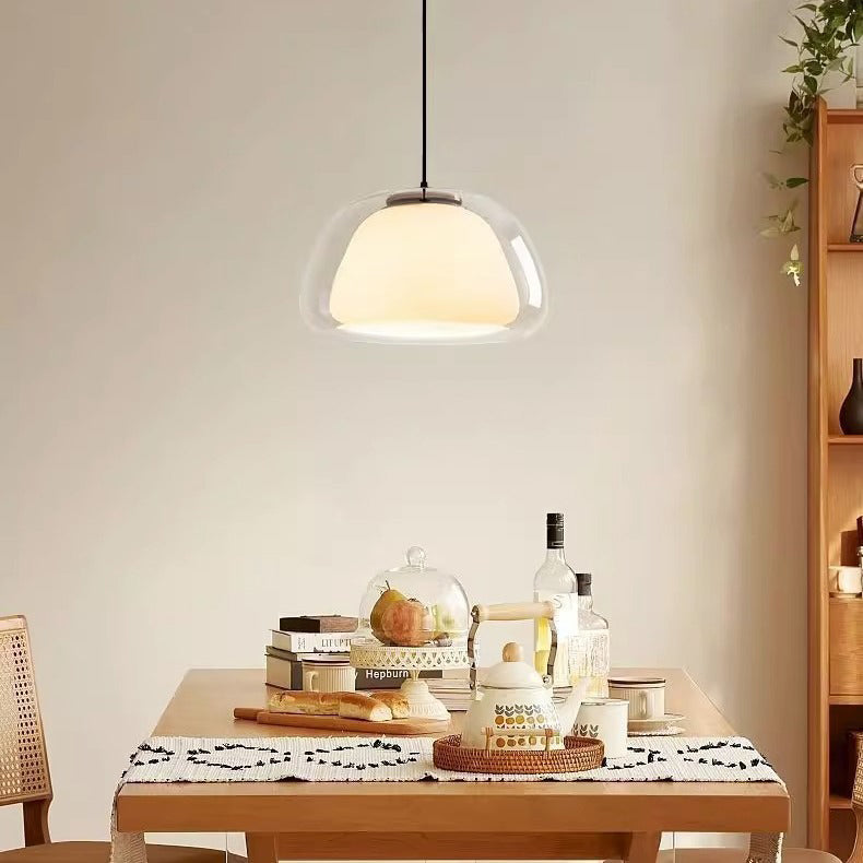 مصباح معلق عصري شفاف من الزجاج والحديد لغرفة الطعام
