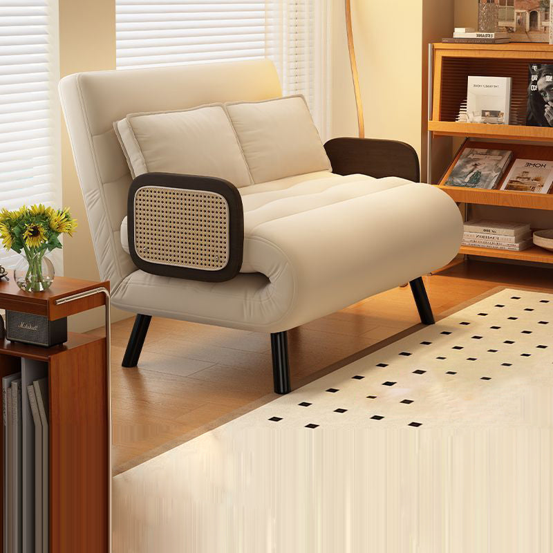 This contemporary Nordic-style sofa bed combines a solid wood frame and soft beige fabric, featuring a foldable design with five-level adjustable backrest for personalized comfort. Ideal for small living rooms or bedrooms, it transitions easily between seating and sleeping.