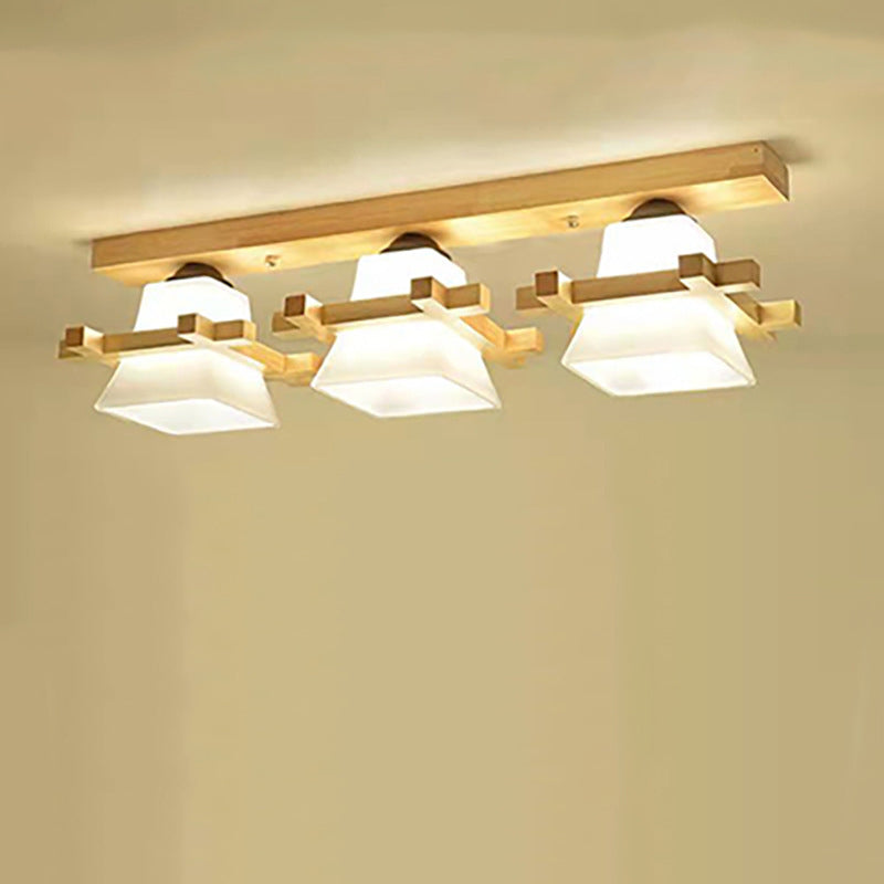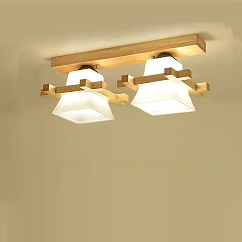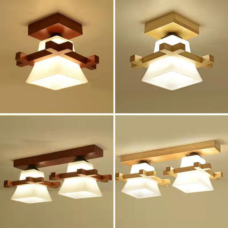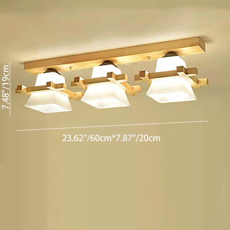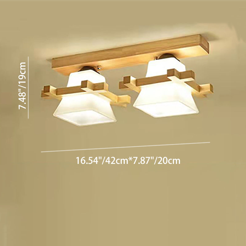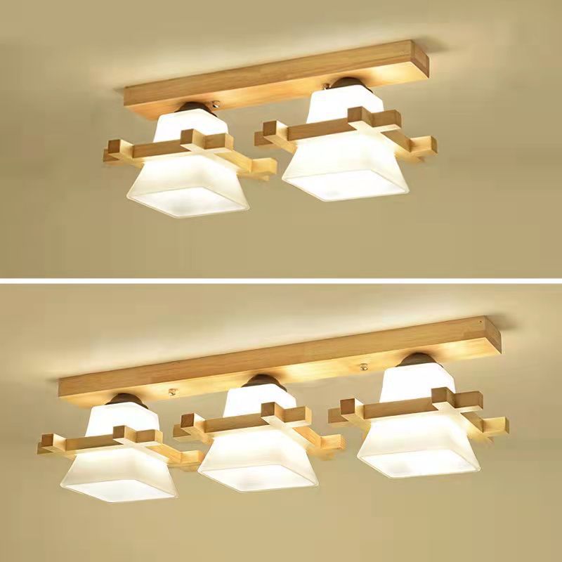 مصباح سقف شبه منحرف مربع الشكل من الخشب والزجاج الإسكندنافي المعاصر، 1/2/3 مصابيح، مثبت بشكل شبه مسطح لغرفة المعيشة والممر