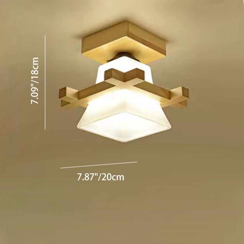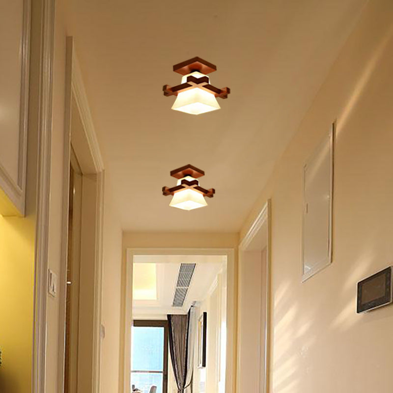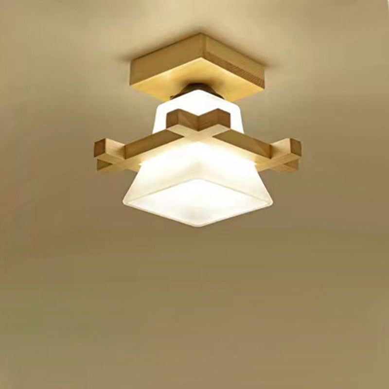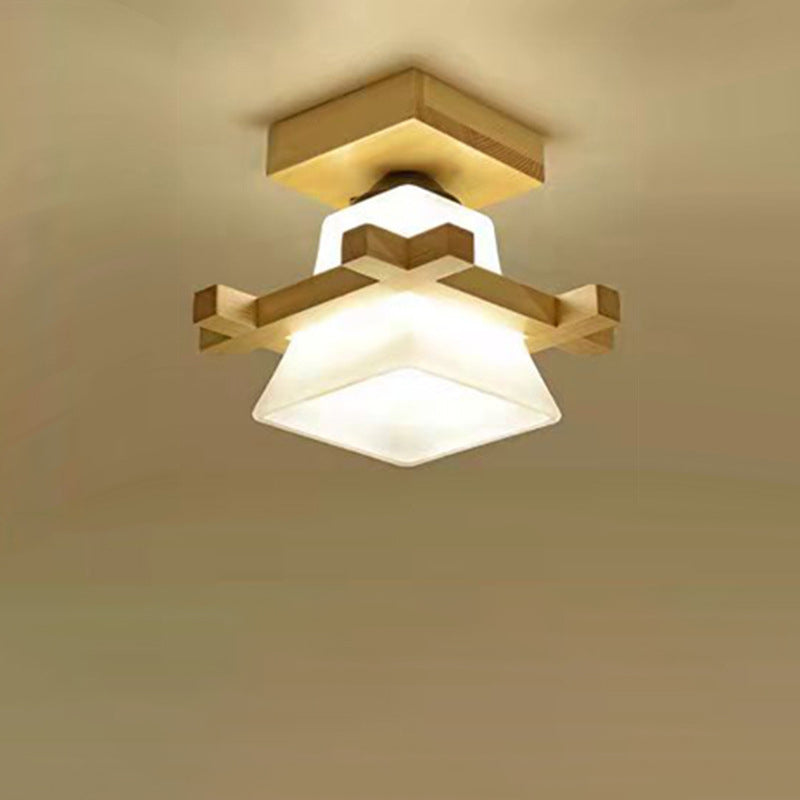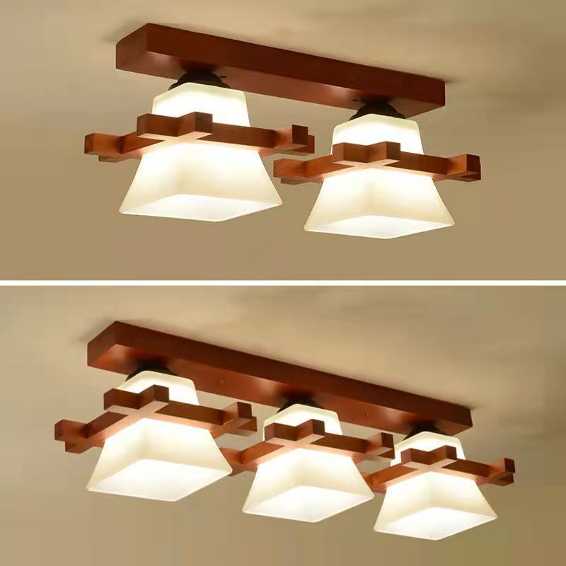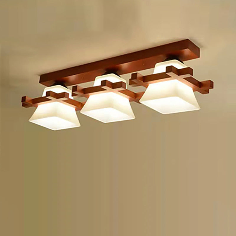 مصباح سقف شبه منحرف مربع الشكل من الخشب والزجاج الإسكندنافي المعاصر، 1/2/3 مصابيح، مثبت بشكل شبه مسطح لغرفة المعيشة والممر