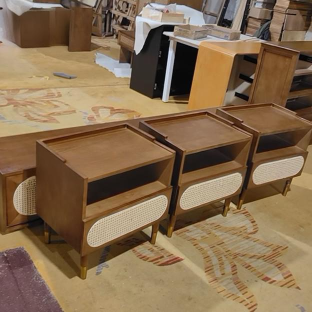 Crafted from natural wood and handwoven rattan, this square nightstand features one drawer for practical storage and showcases rich walnut or sleek black finishes. Perfect for bedrooms or living spaces, it adds warm texture and minimalist style with visible wood grain and organic materials.