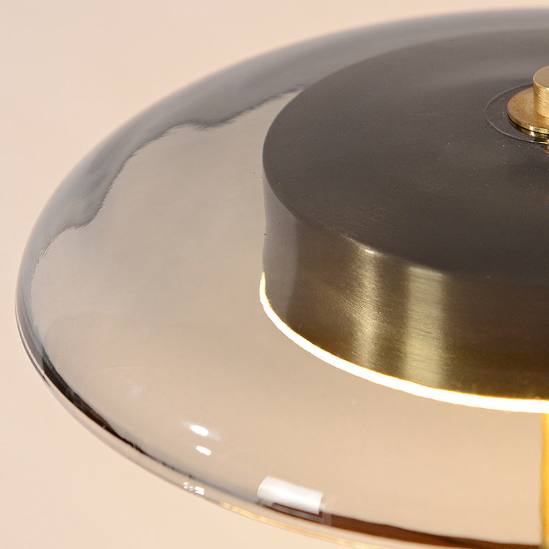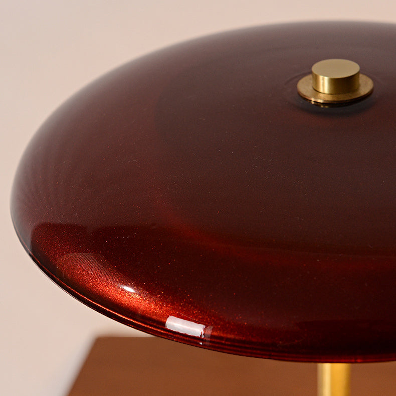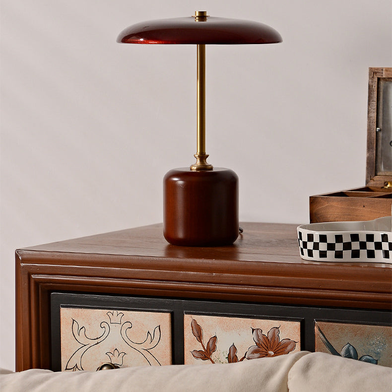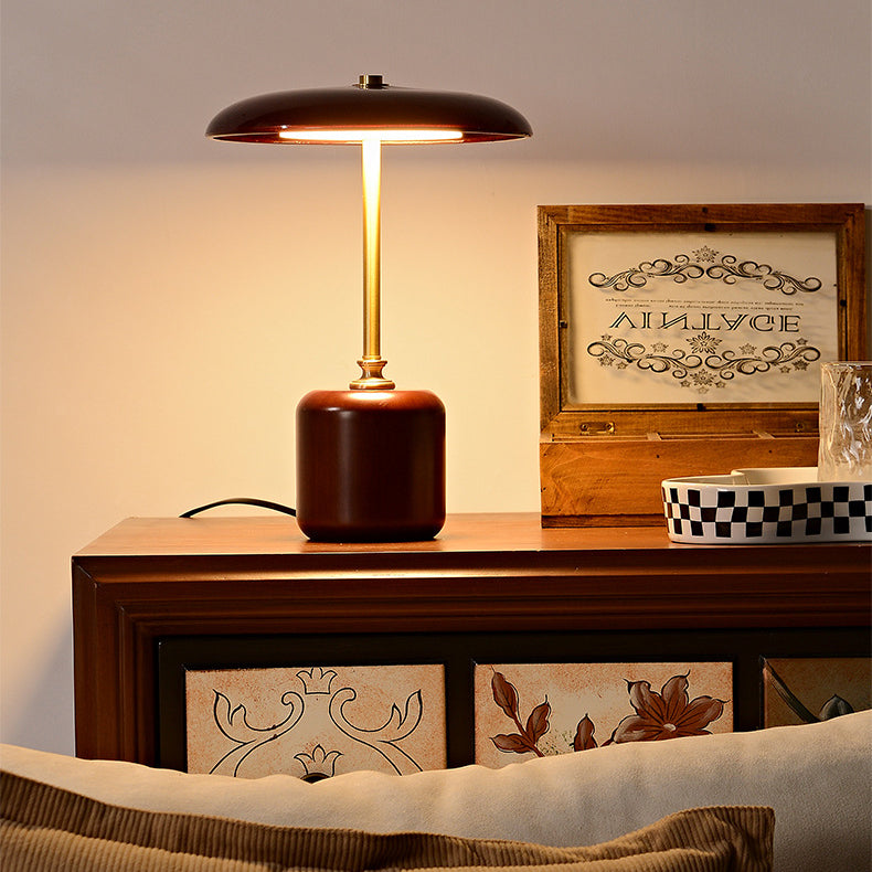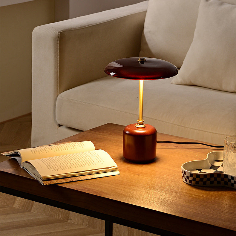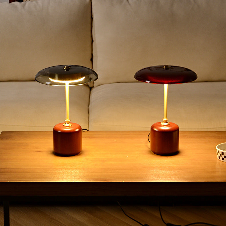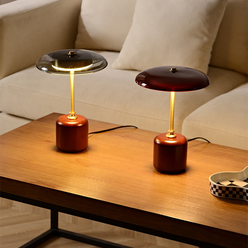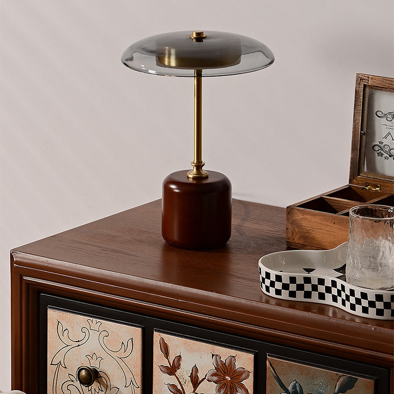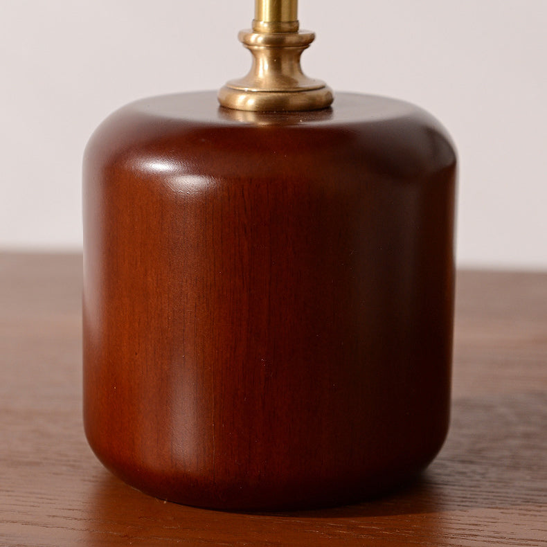 Contemporary Retro Brass Wood Glass Round Cylinder LED Table Lamp For Bedside