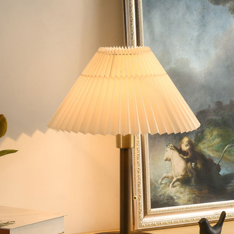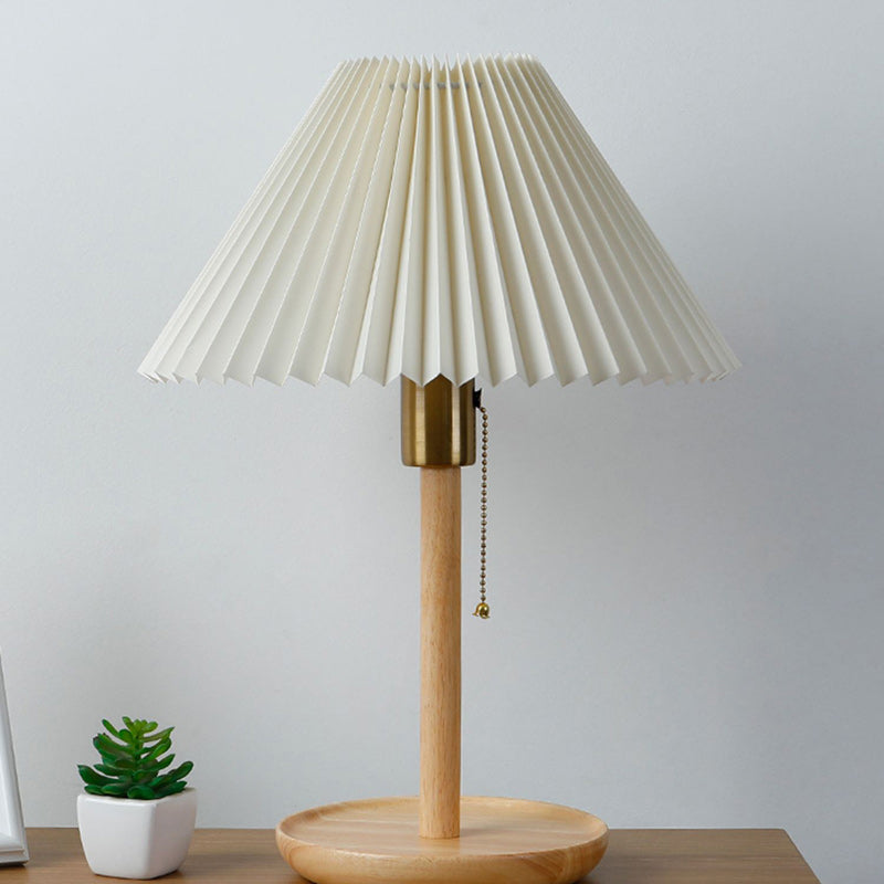 Contemporary Retro Cone Solid Wood Fabric 1-Light Table Lamp For Bedroom
