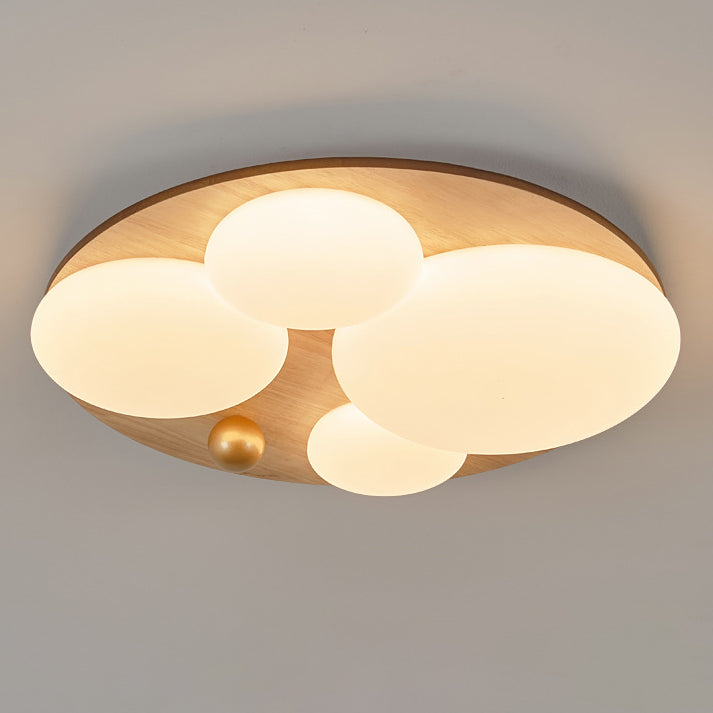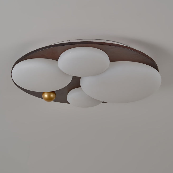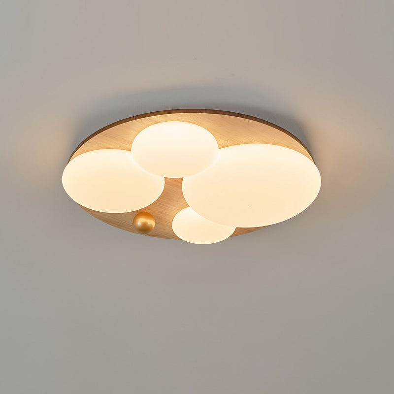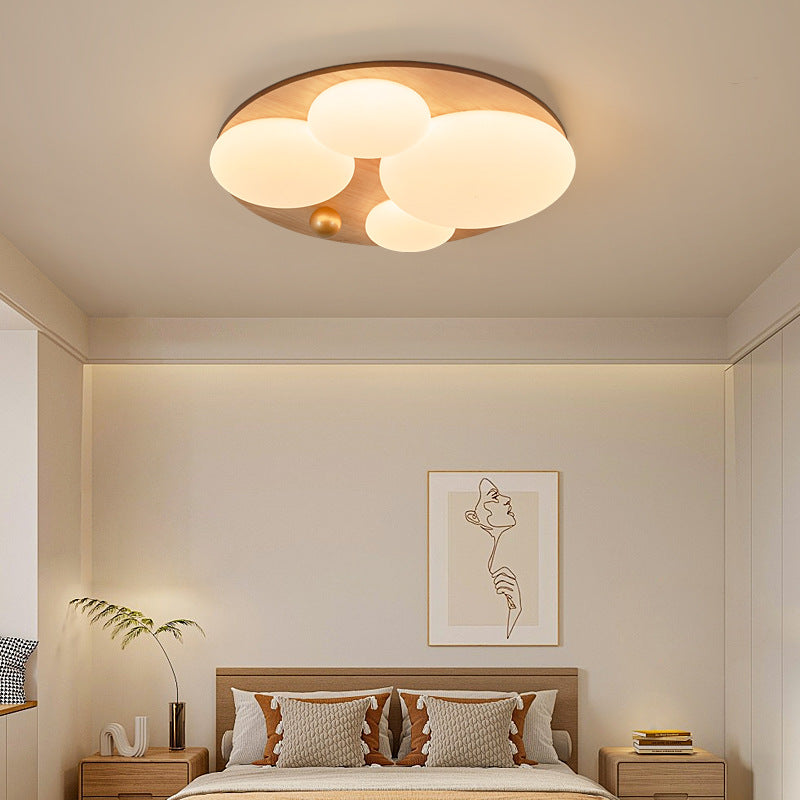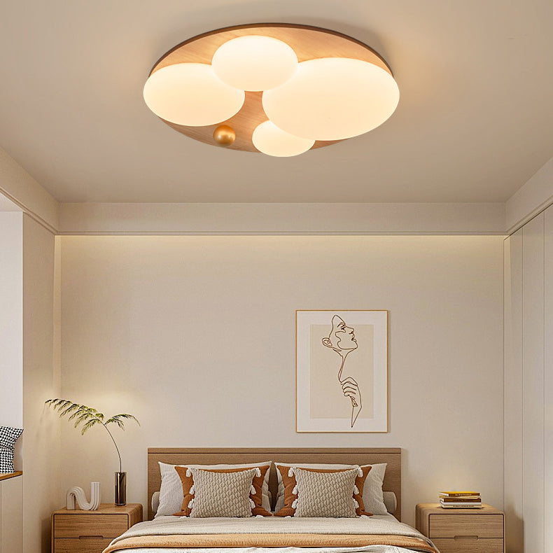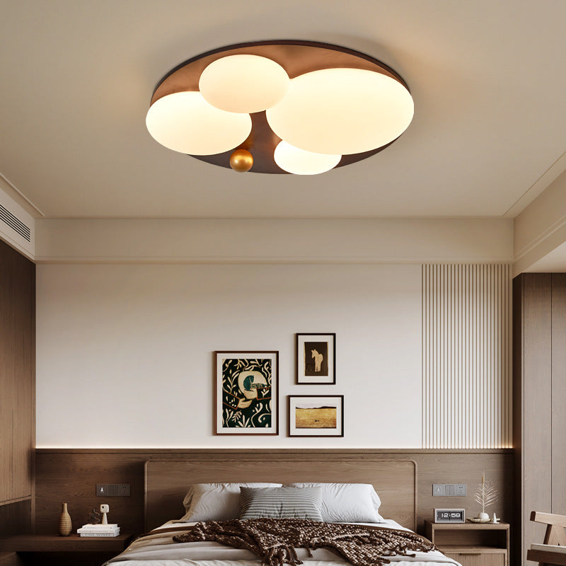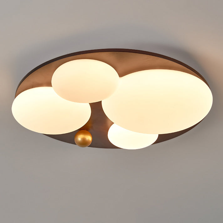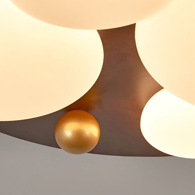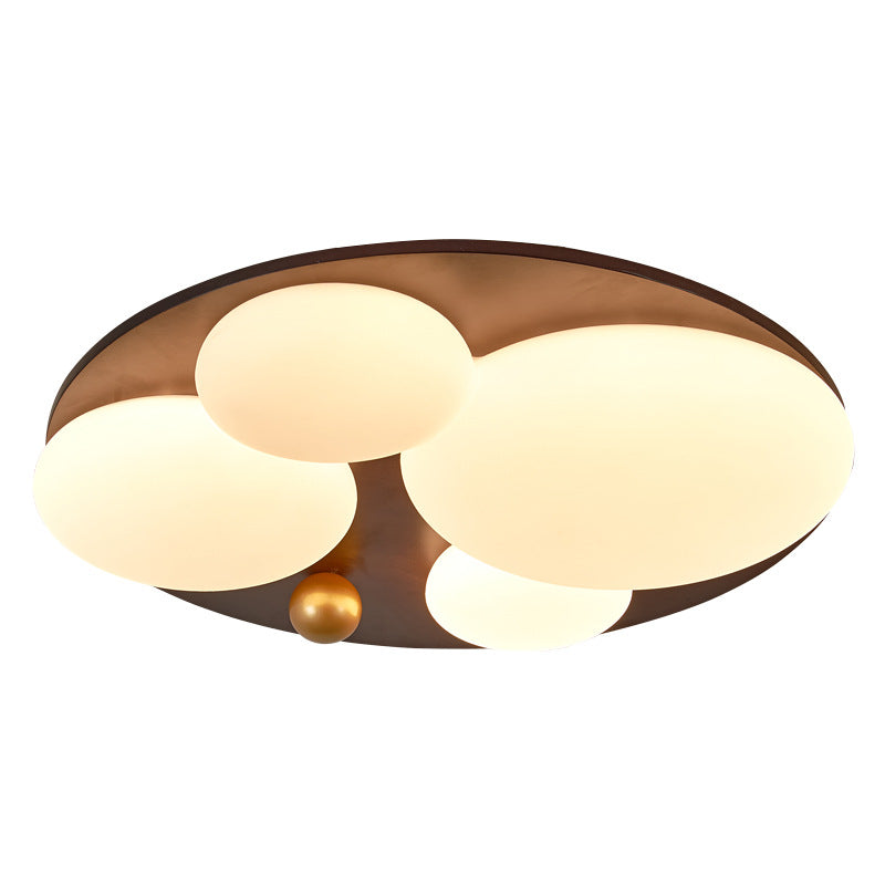 مصباح سقف LED شبه مسطح لغرفة النوم بتصميم معاصر على شكل كرة ذهبية دائرية من الخشب المطاطي والأكريليك والحديد