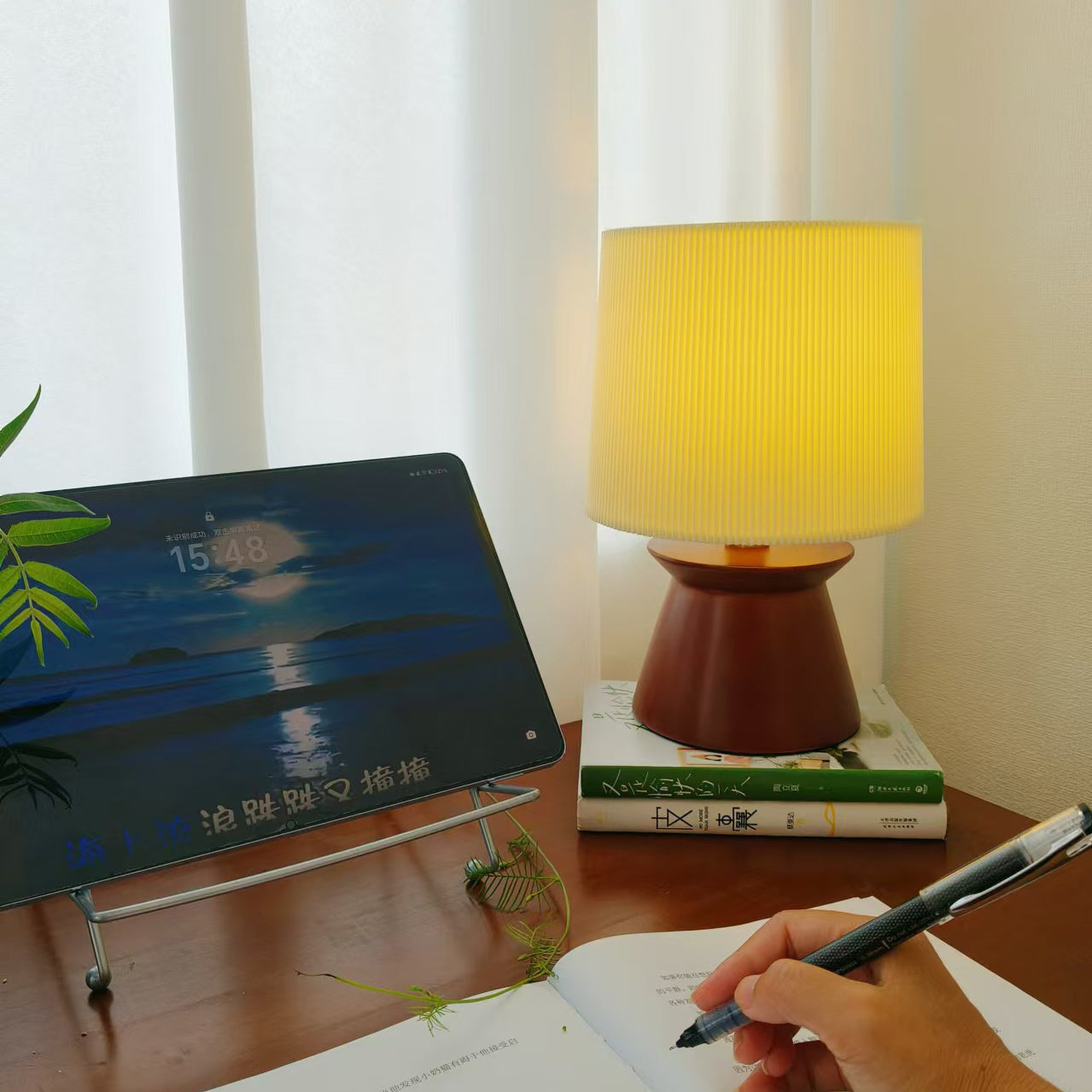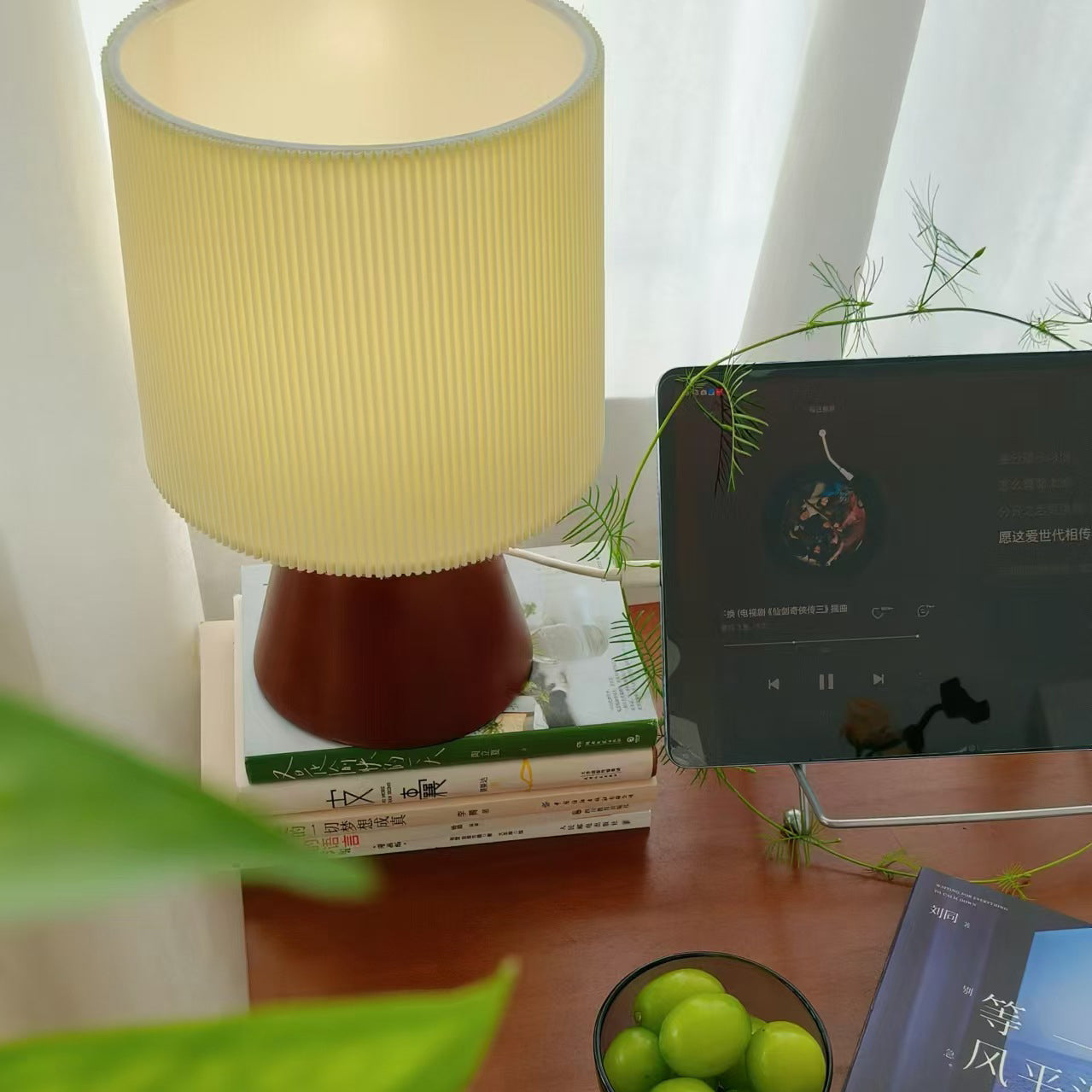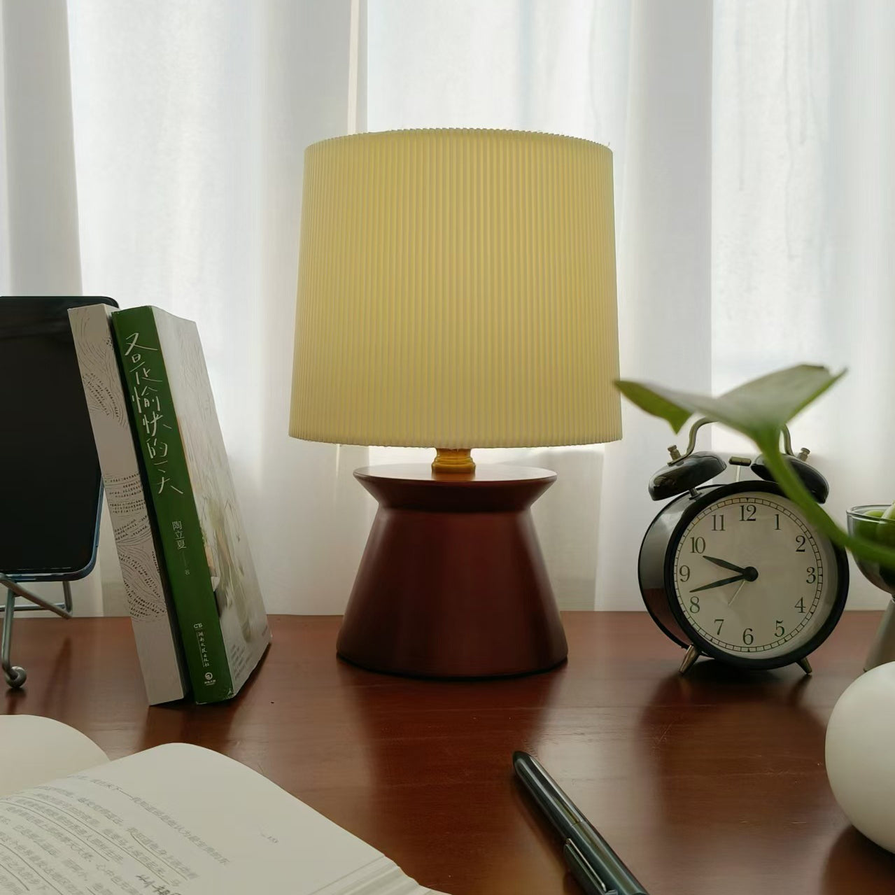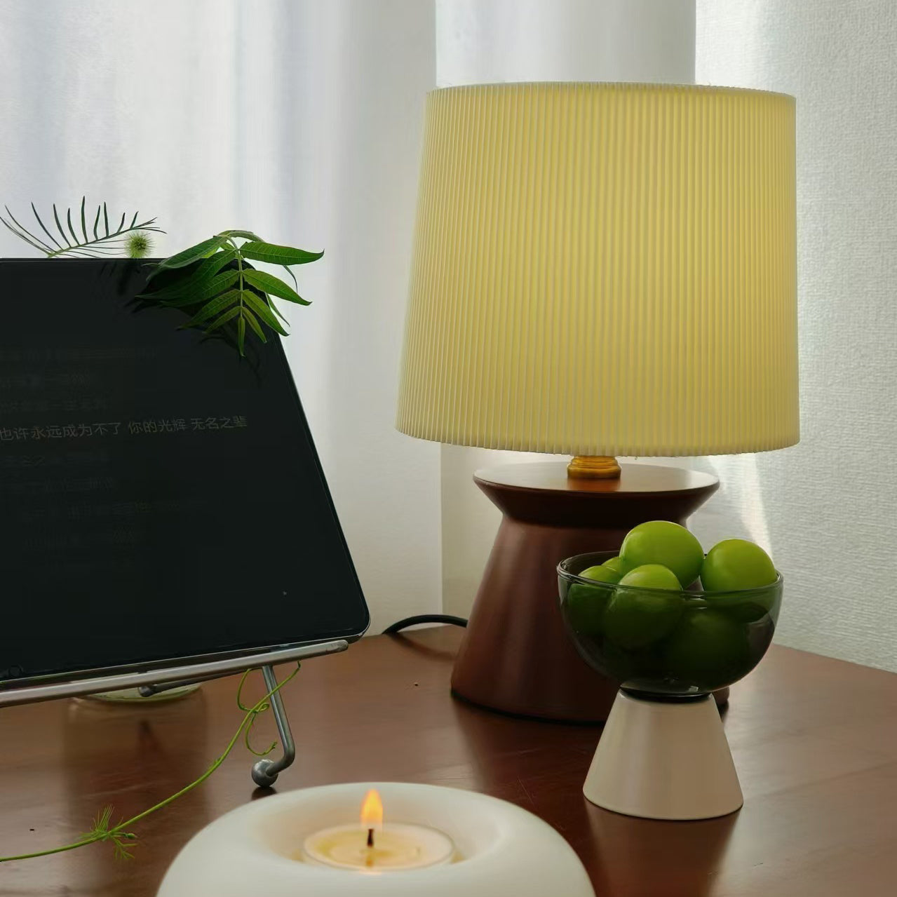 Contemporary Retro Wood Fabric Stripes Cylinder 1-Light Table Lamp For Bedside