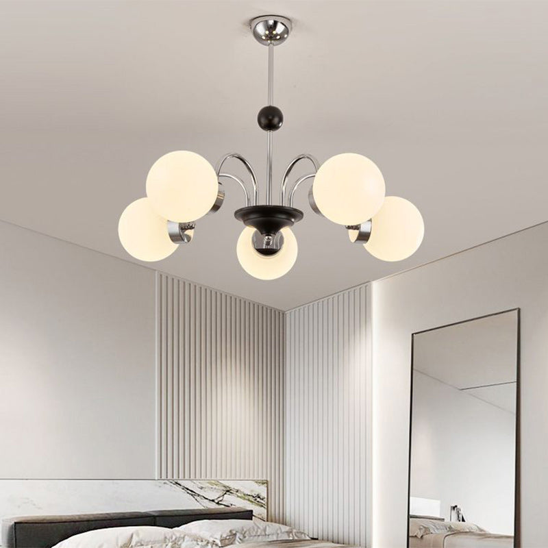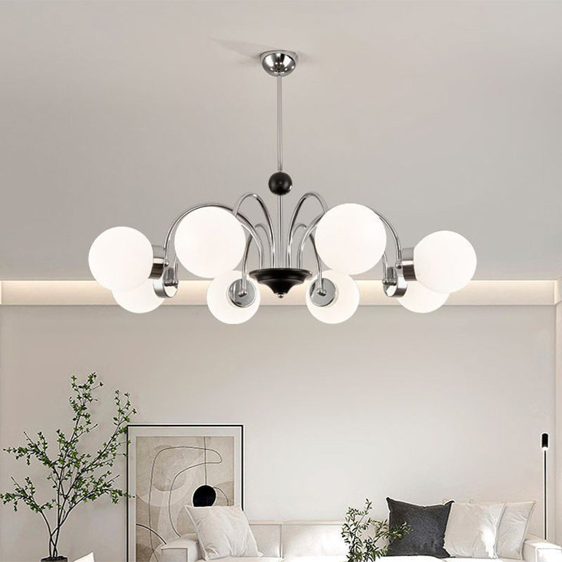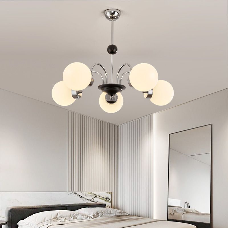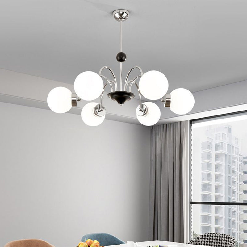ثريا معاصرة من الزجاج الحديدي بتصميم دائري على شكل حبة سحرية كريمية إسكندنافية، 3/5/6/8 مصابيح لغرفة المعيشة