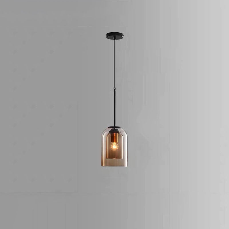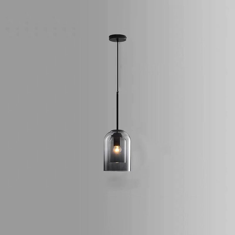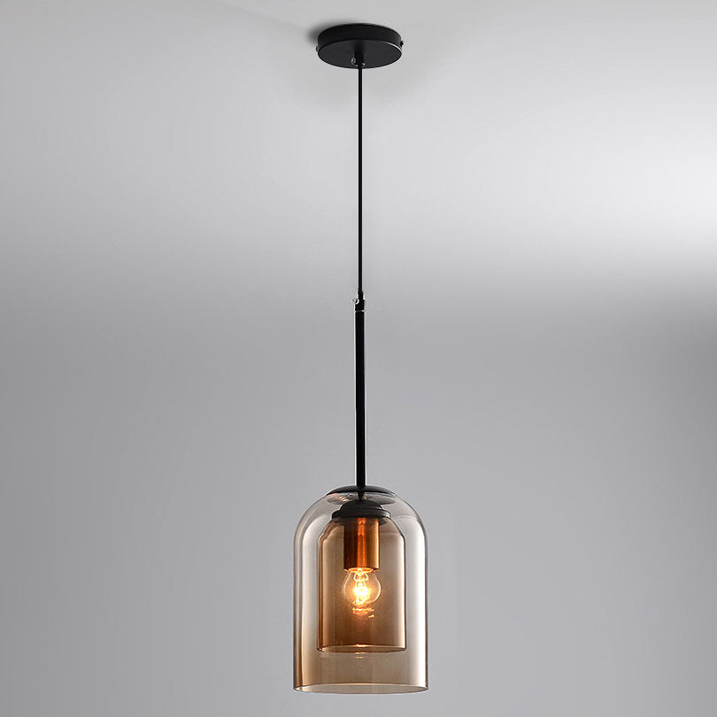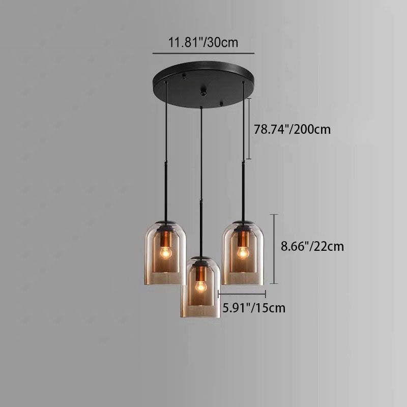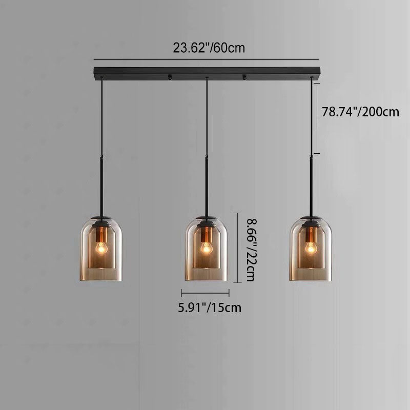 ثريا جزيرة زجاجية حديدية أسطوانية معاصرة على الطراز الإسكندنافي، بإضاءة ثلثية، لغرفة الطعام