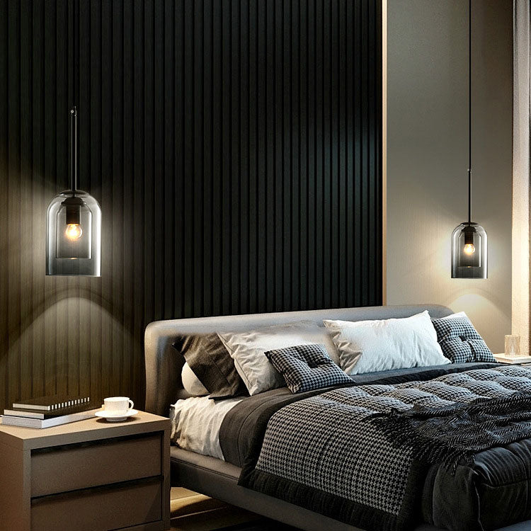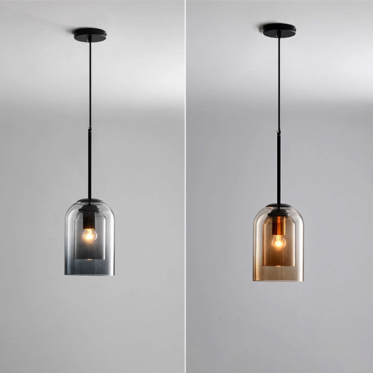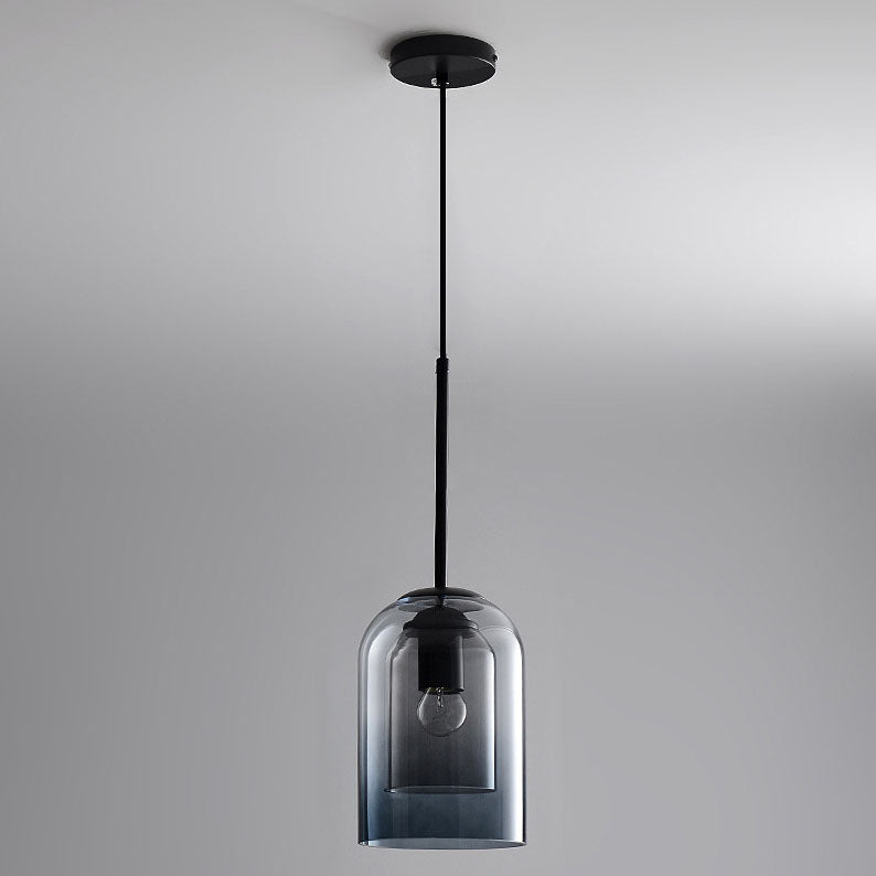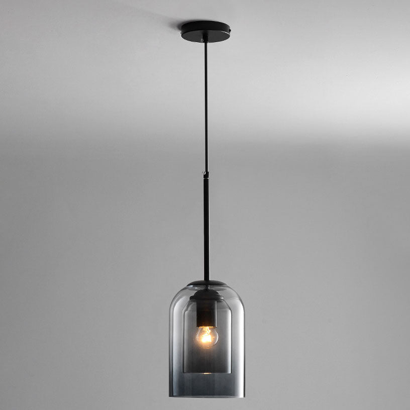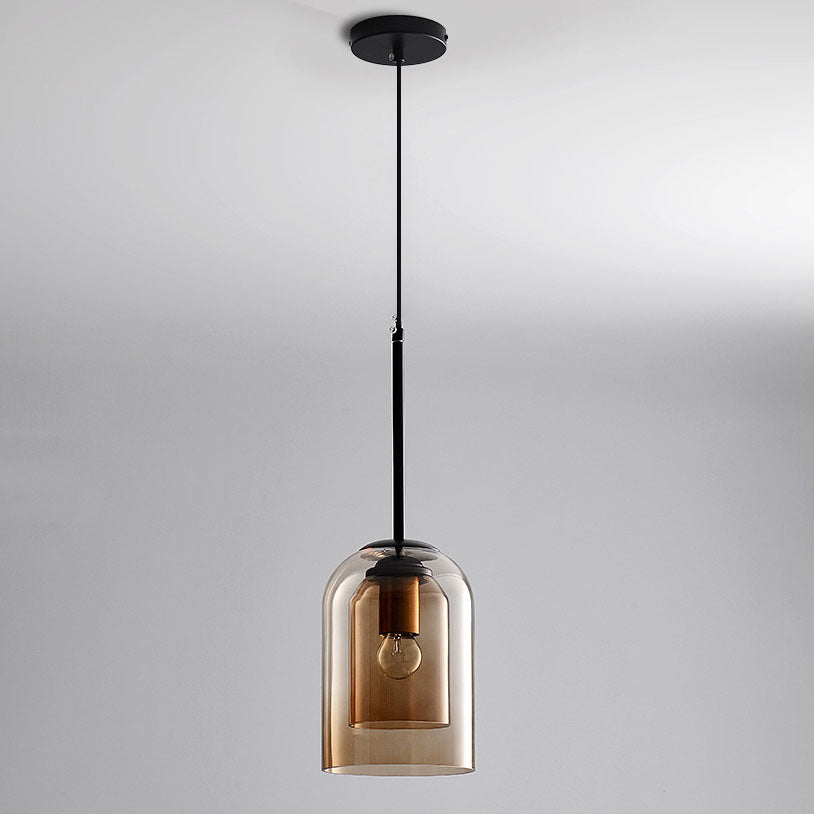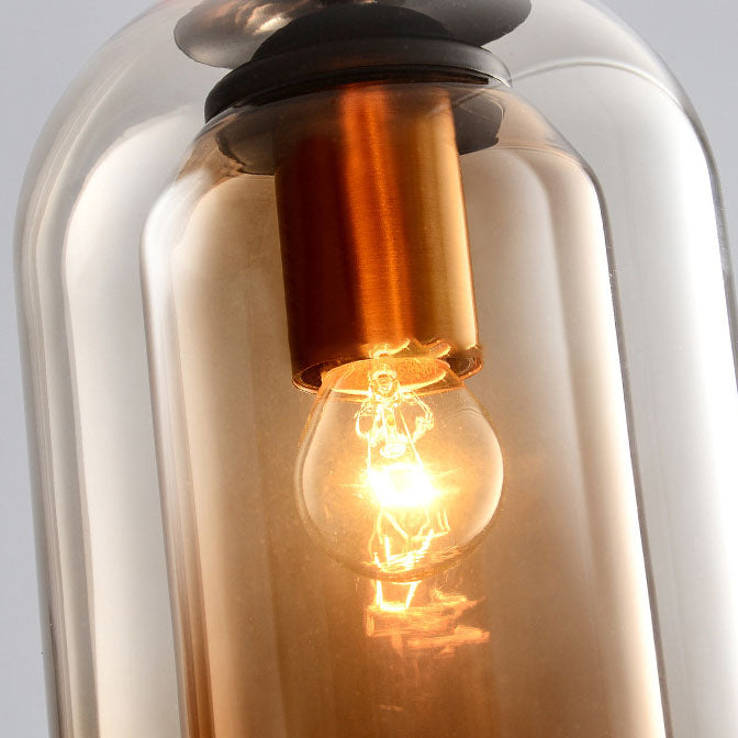 ثريا جزيرة زجاجية حديدية أسطوانية معاصرة على الطراز الإسكندنافي، بإضاءة ثلثية، لغرفة الطعام