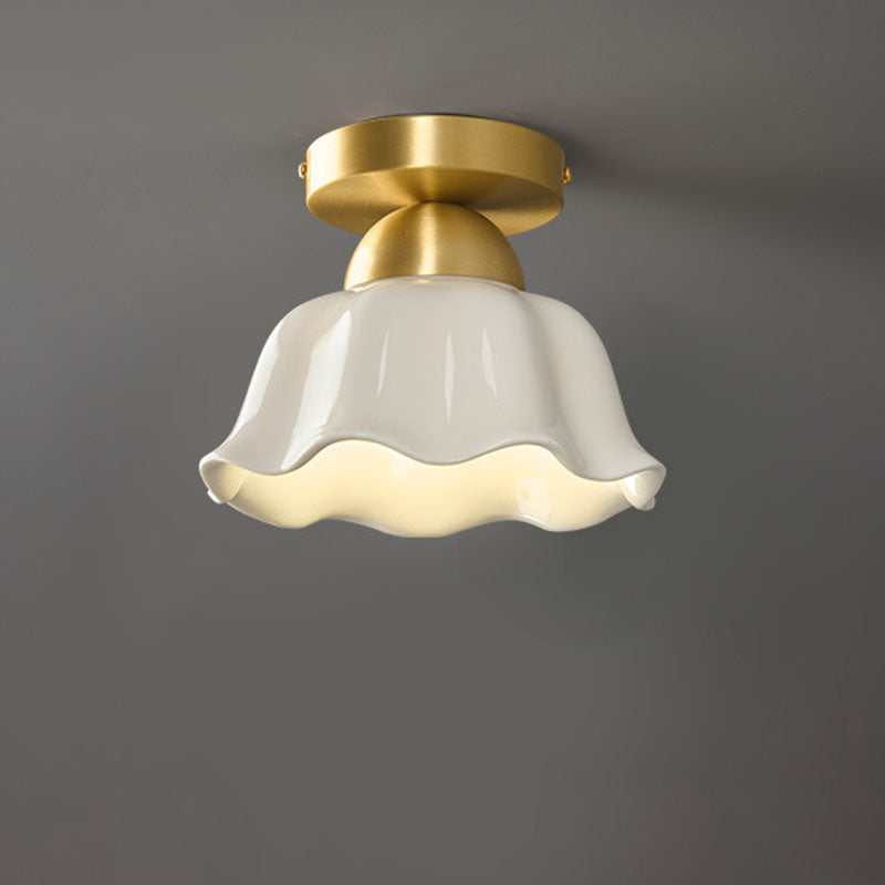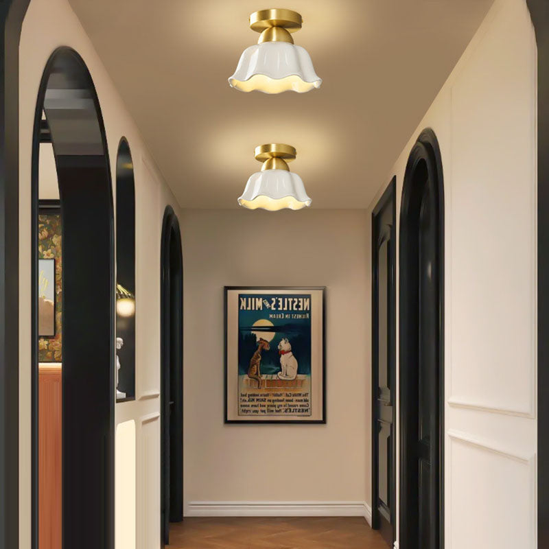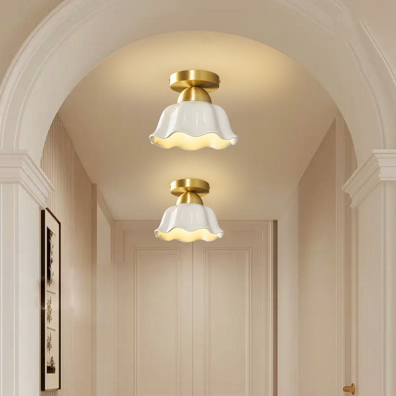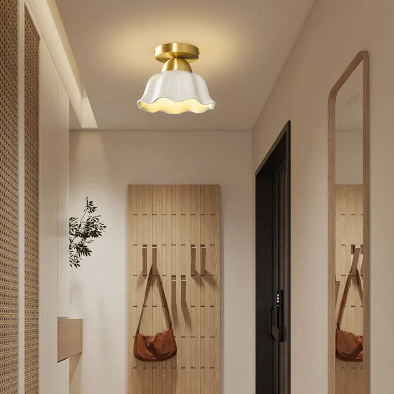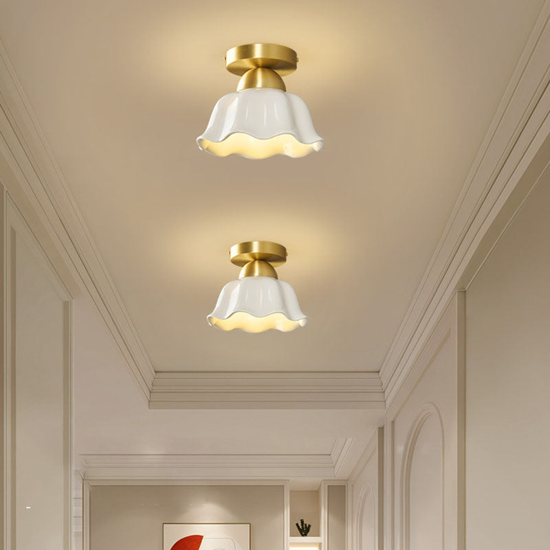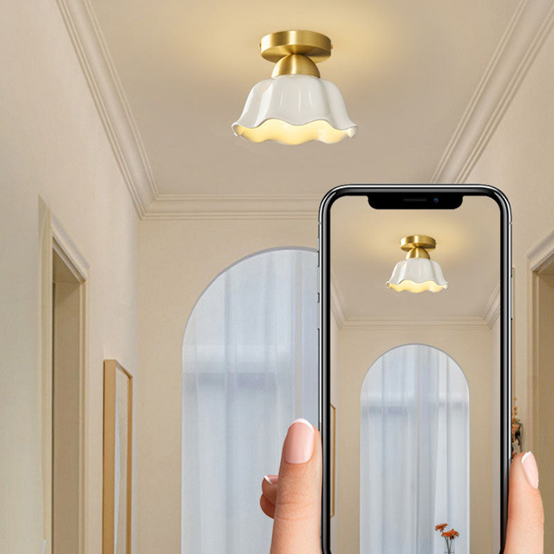 مصباح سقف معاصر على شكل زهرة من الحديد والسيراميك بتصميم إسكندنافي، مزود بإضاءة واحدة، ومثبت بشكل نصف مسطح، للممر