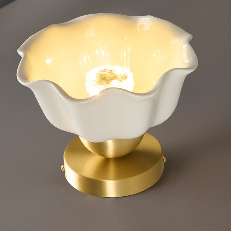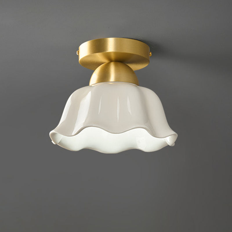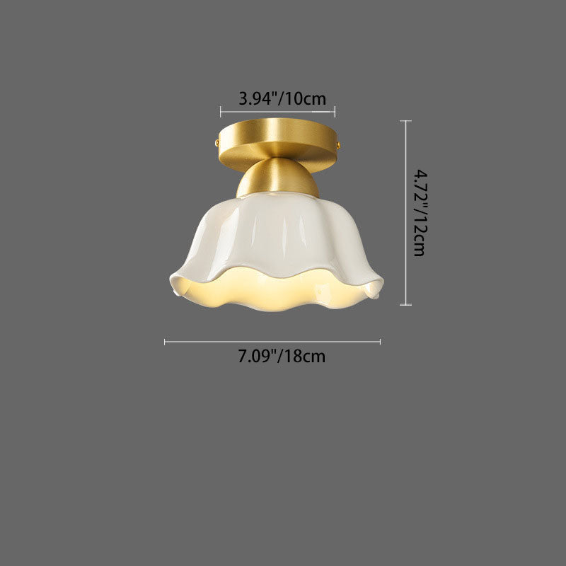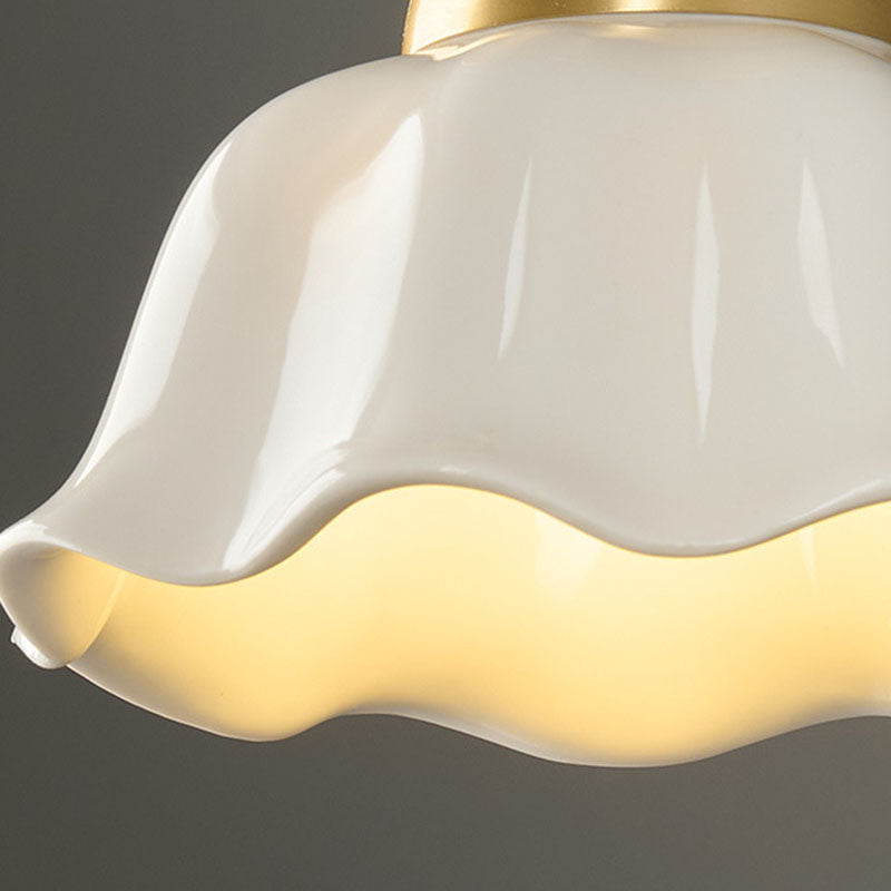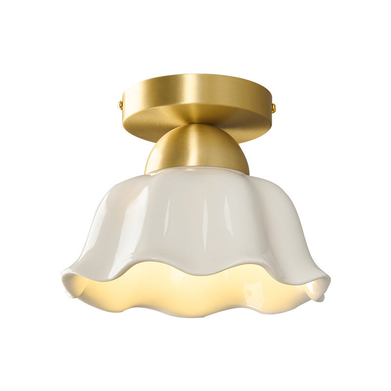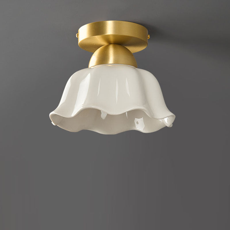 مصباح سقف معاصر على شكل زهرة من الحديد والسيراميك بتصميم إسكندنافي، مزود بإضاءة واحدة، ومثبت بشكل نصف مسطح، للممر