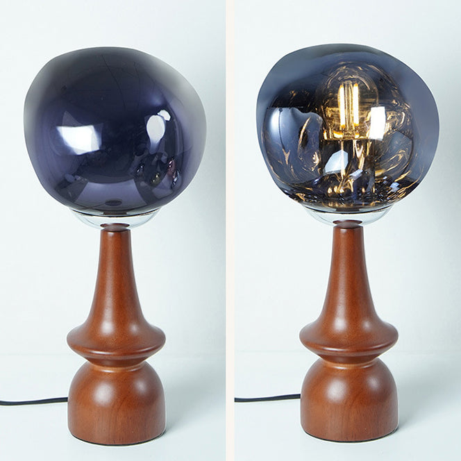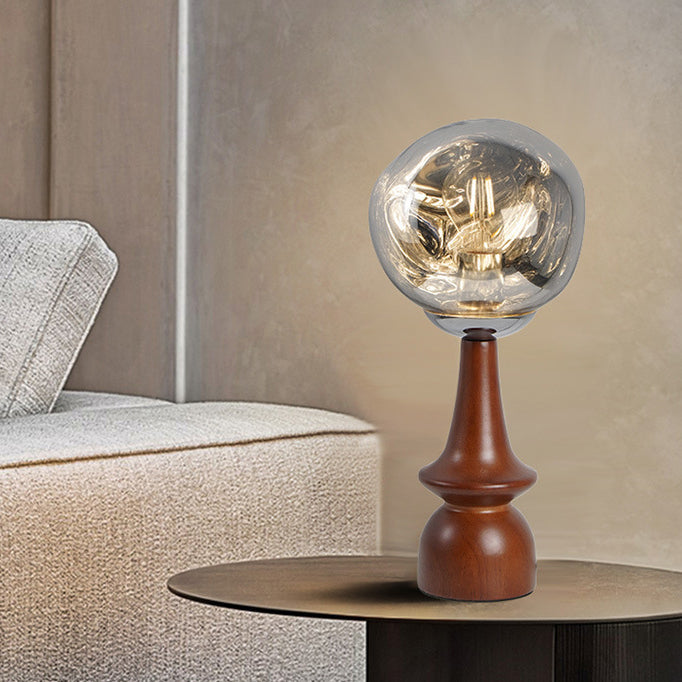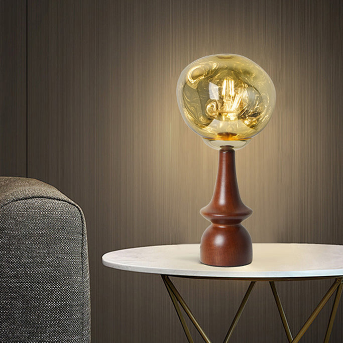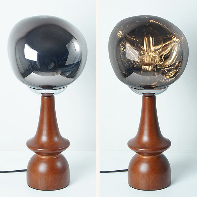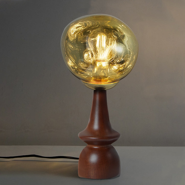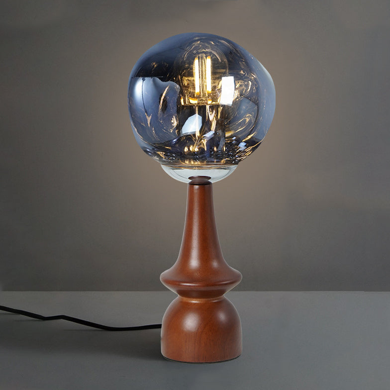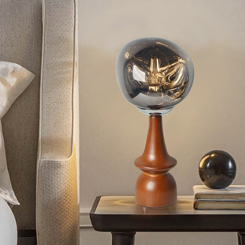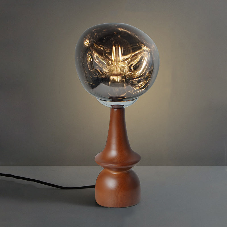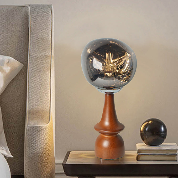 Contemporary Scandinavian Lava Irregular Round Solid Wood Acrylic 1 - Light Table Lamp For Living Room