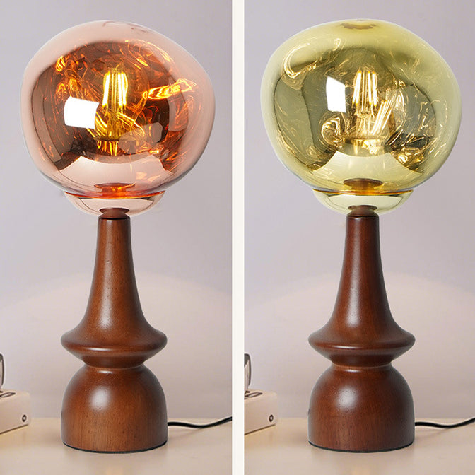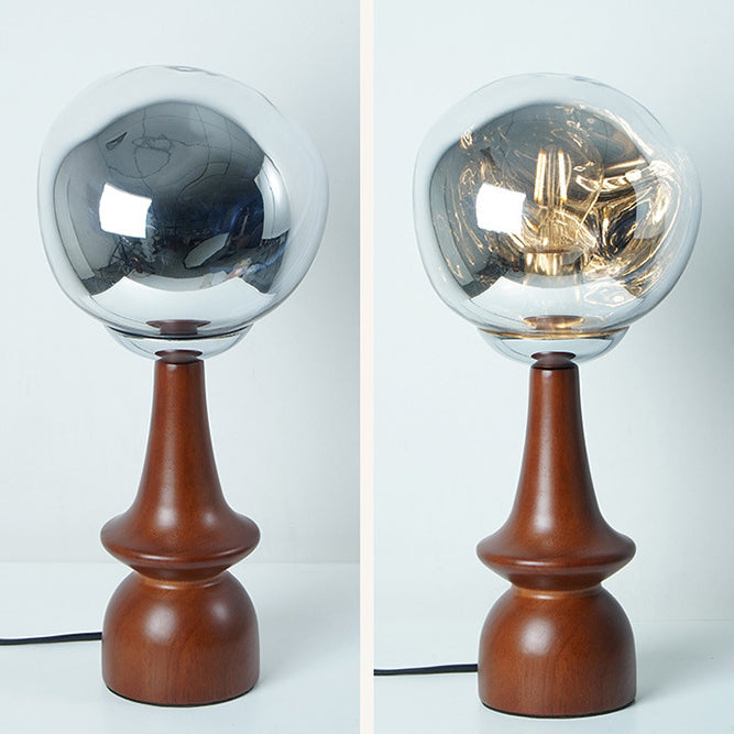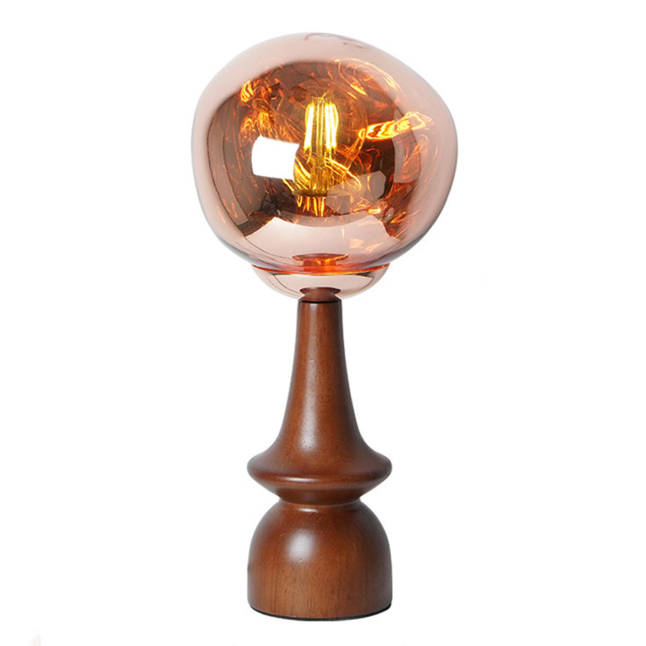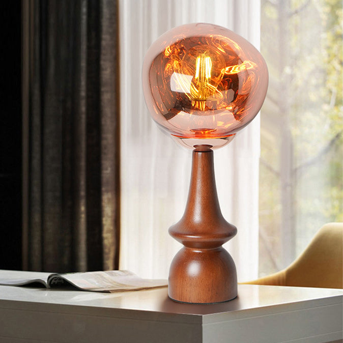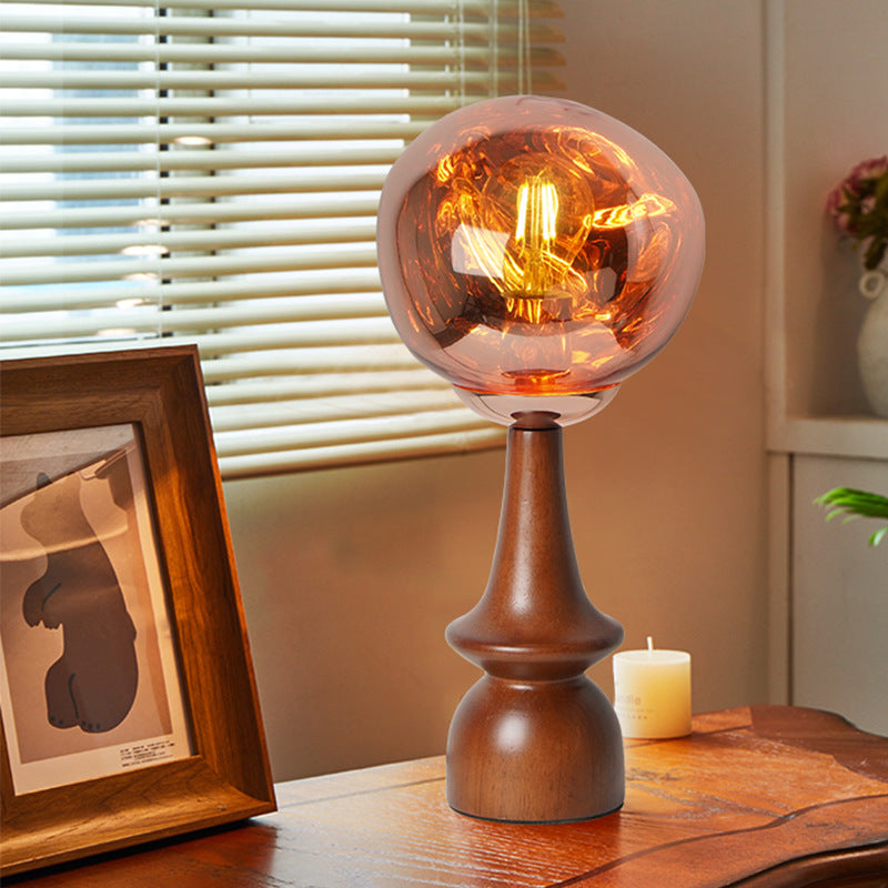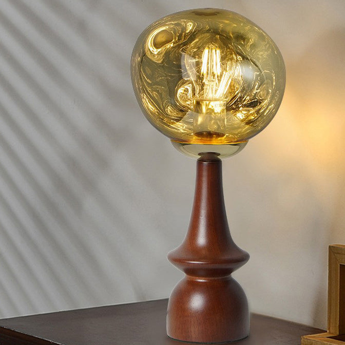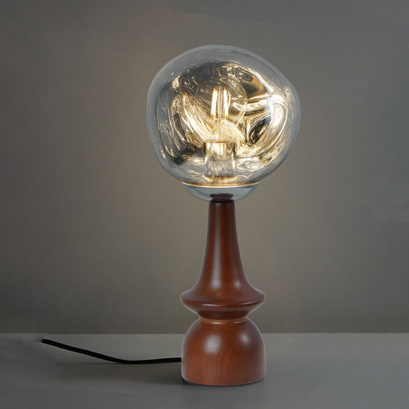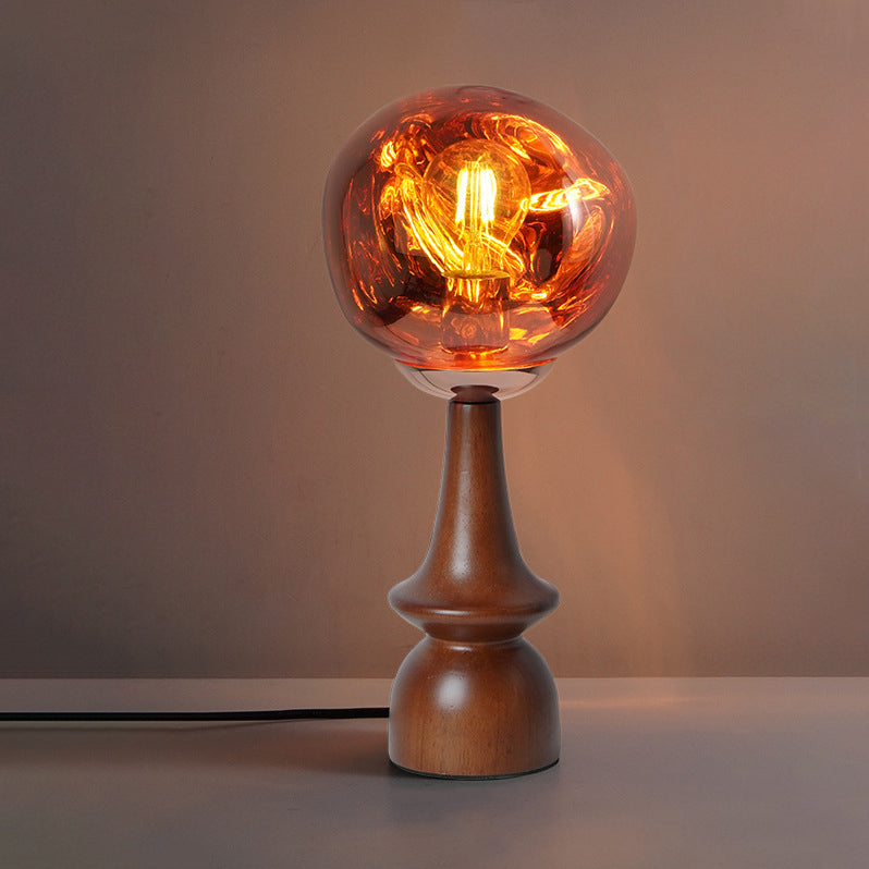 Contemporary Scandinavian Lava Irregular Round Solid Wood Acrylic 1 - Light Table Lamp For Living Room