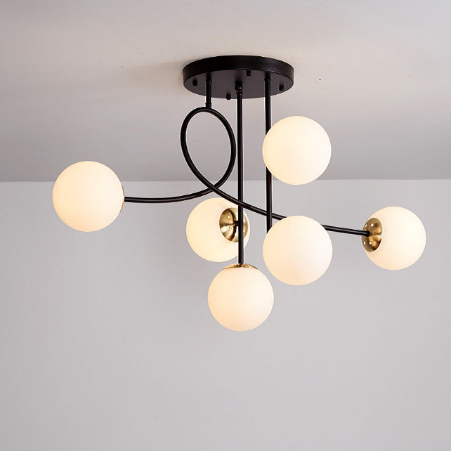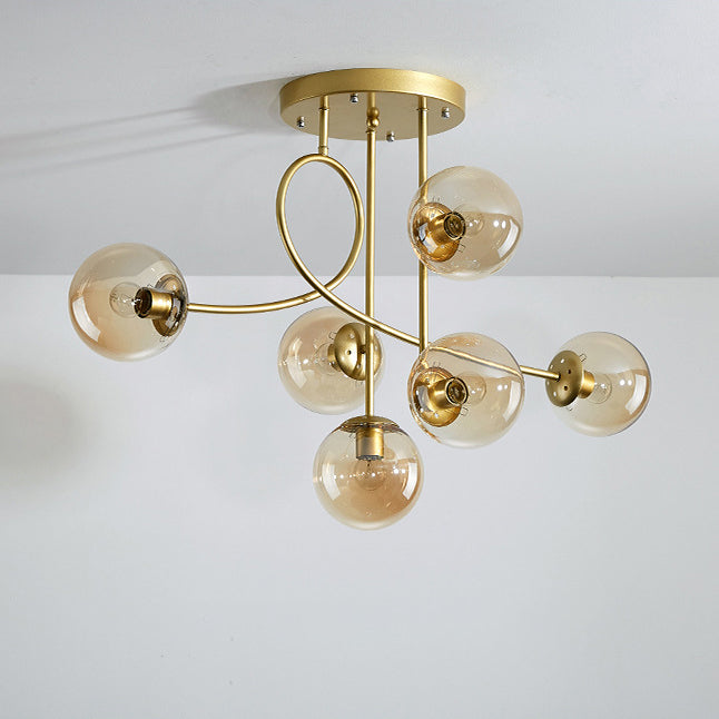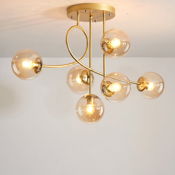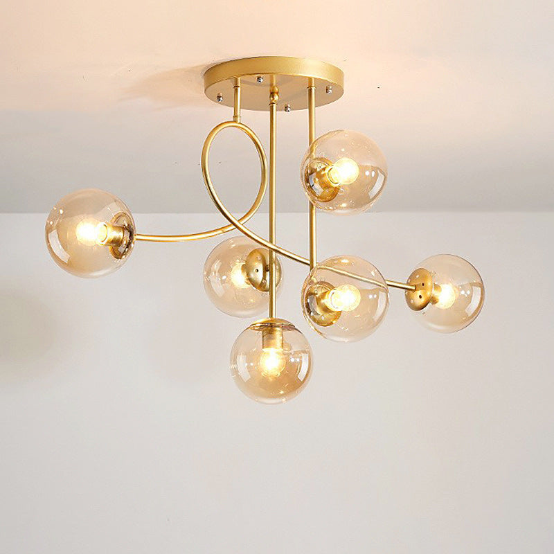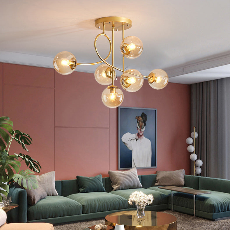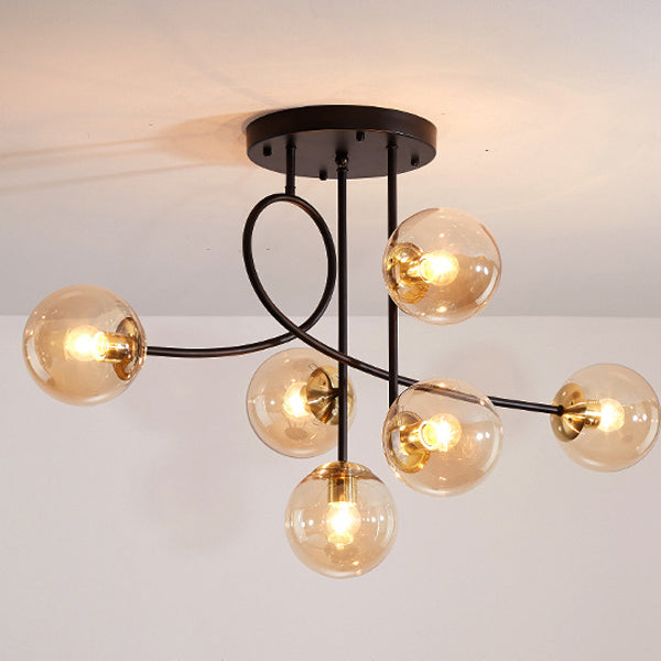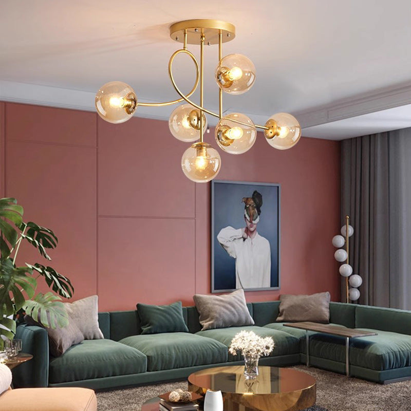 ثريا دائرية معاصرة من الحديد والزجاج بتصميم إسكندنافي على شكل حبة سحرية، بستة مصابيح لغرفة المعيشة