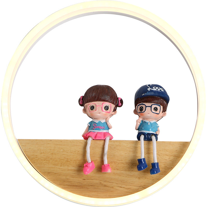 مصباح حائط LED دائري معاصر من الأكريليك من الخشب الصلب لغرفة المعيشة