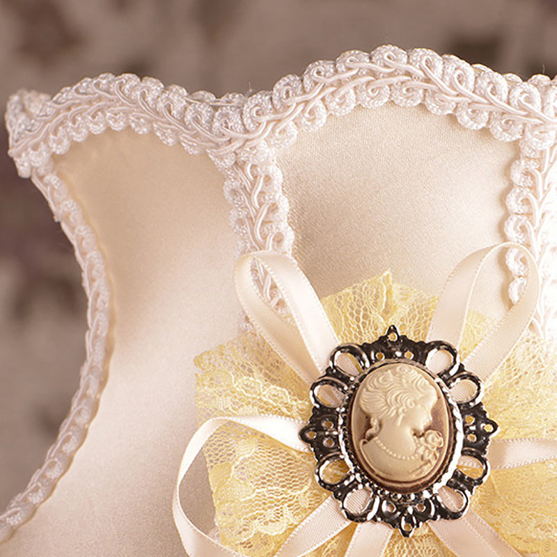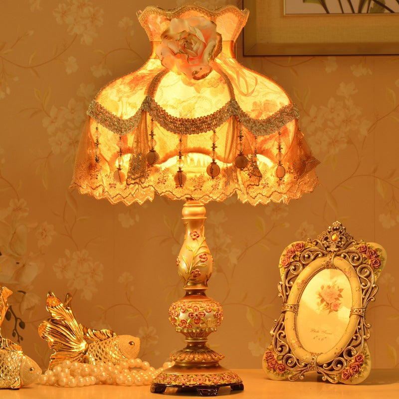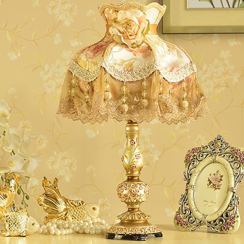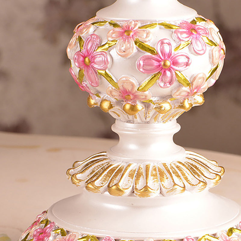 Contemporary Scandinavian Sculpted Floral Resin Iron Metal Fabric 1-Light Table Lamp For Bedroom