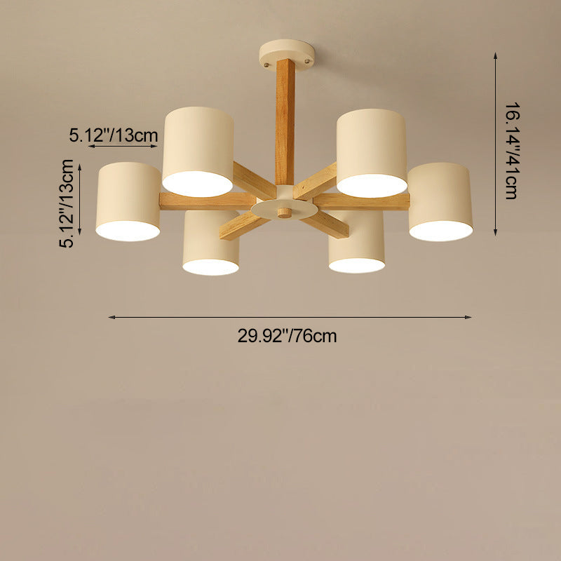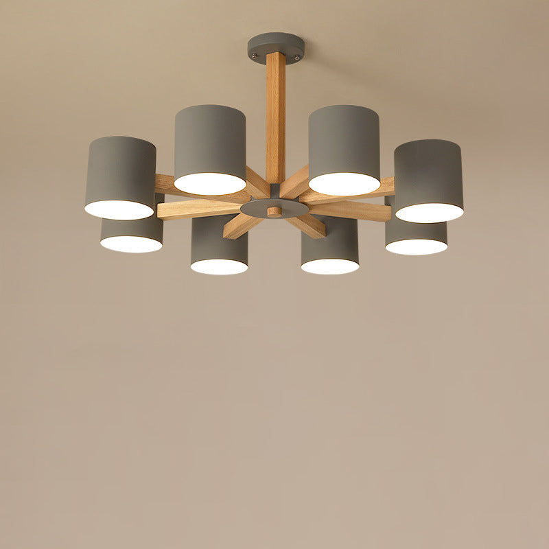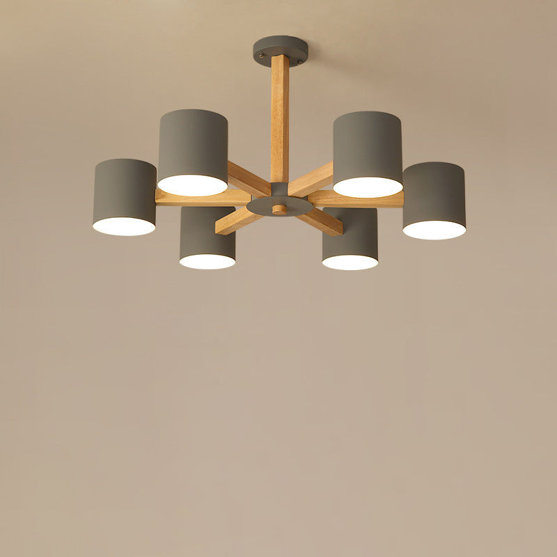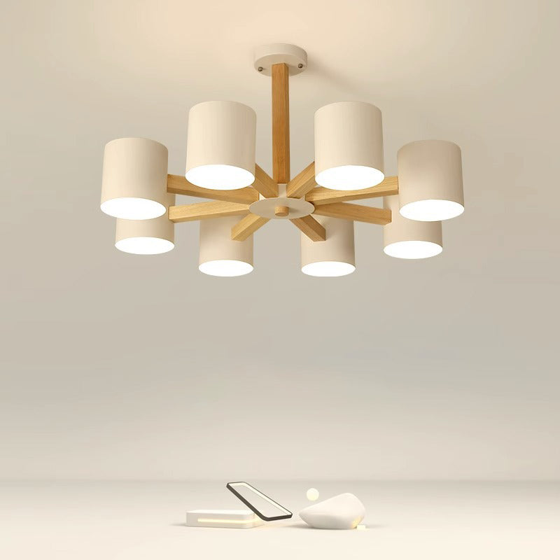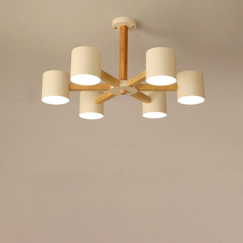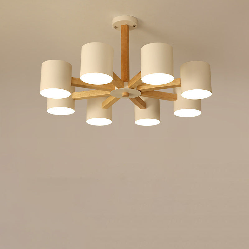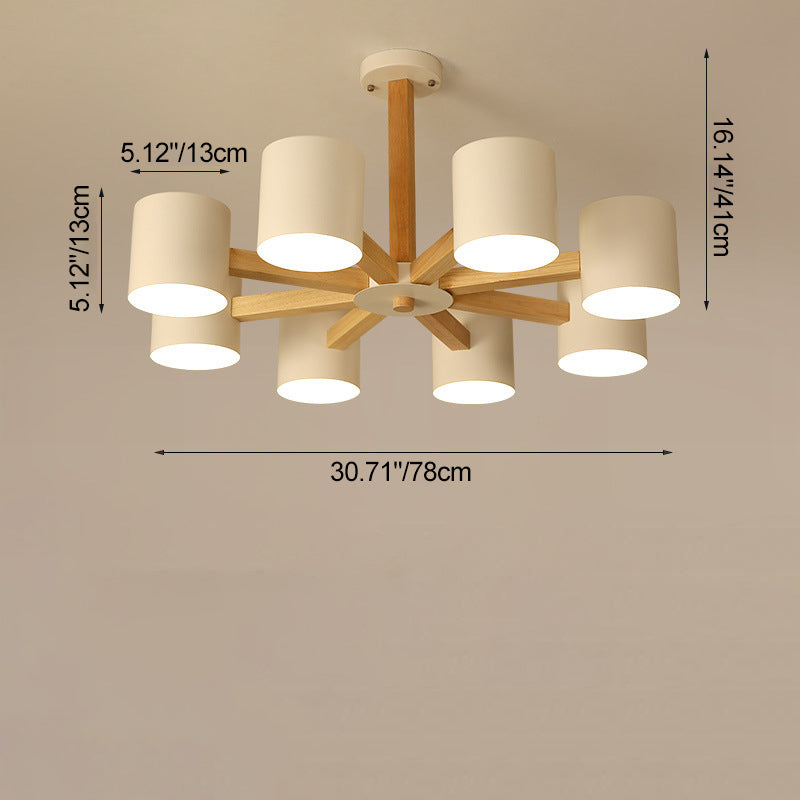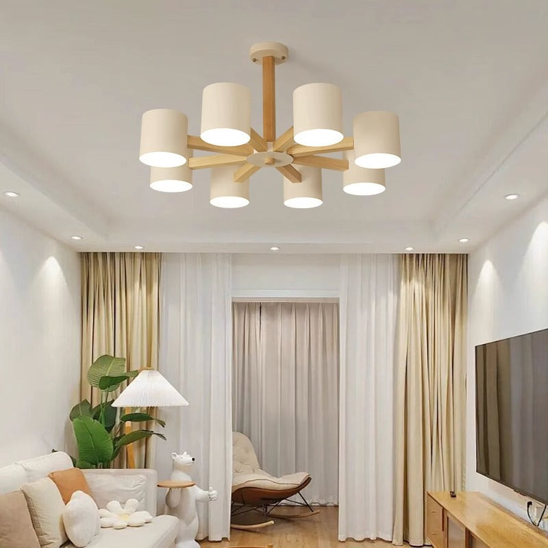 مصباح سقف شبه مدمج بإطار من الخشب الصلب بتصميم إسكندنافي معاصر، مزود بغطاء أسطواني، 6/8 ضوء، لغرفة المعيشة