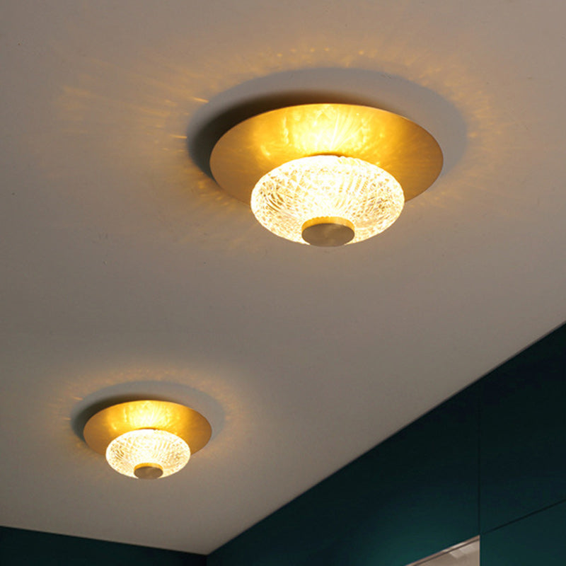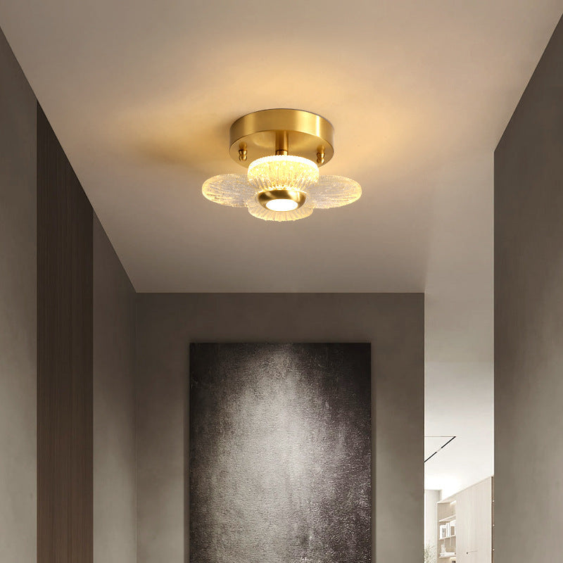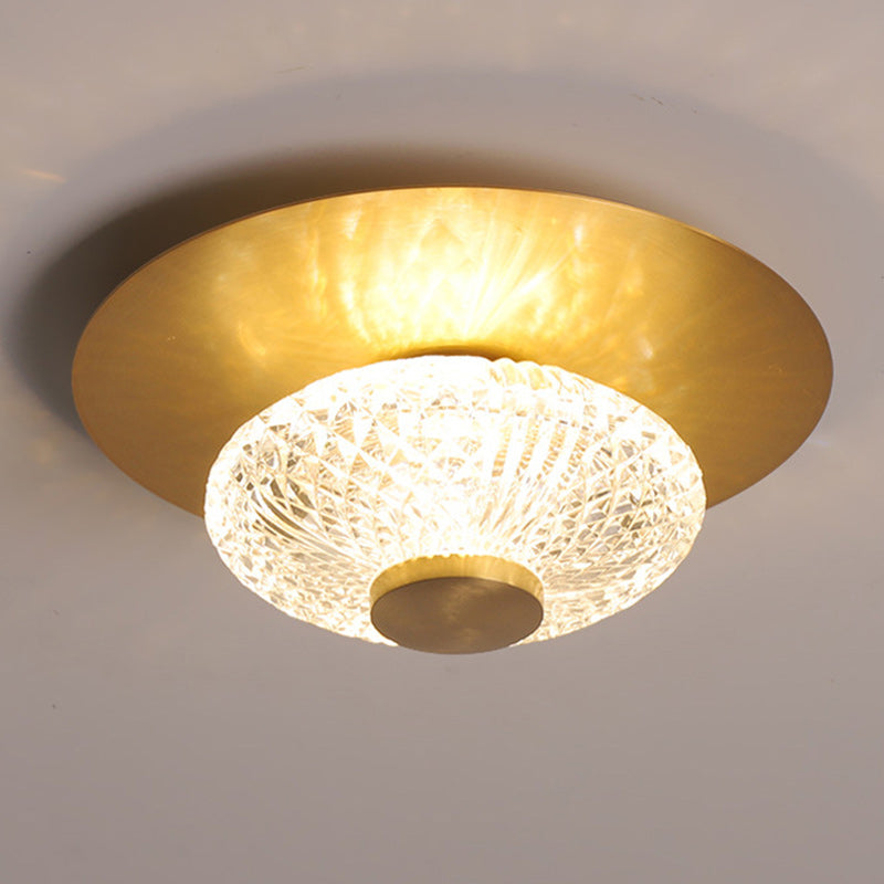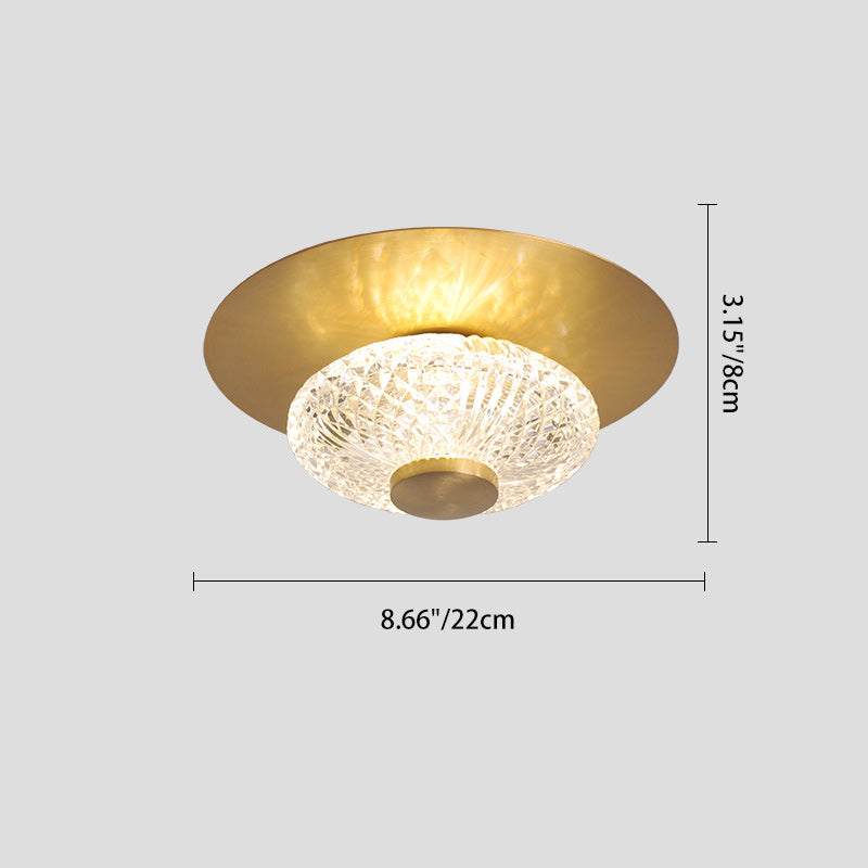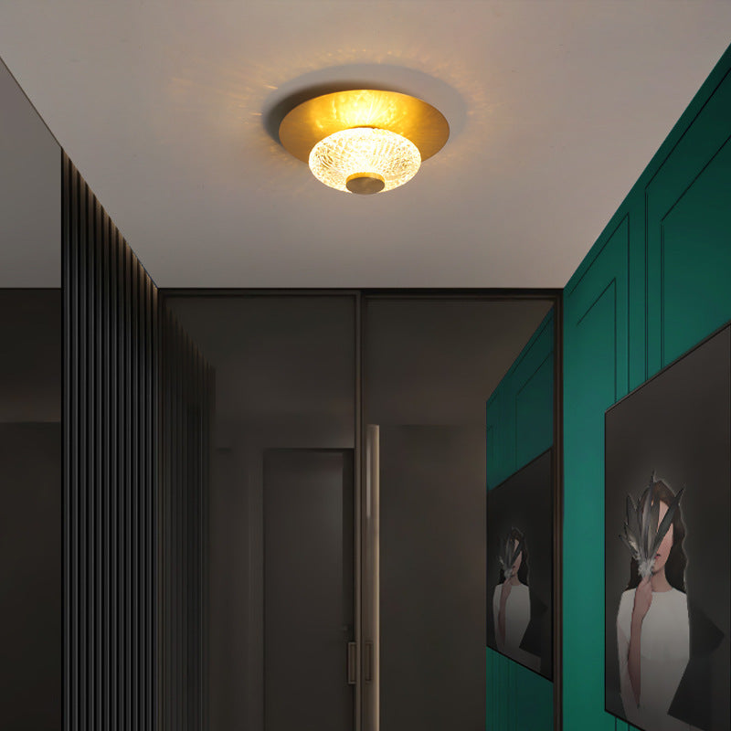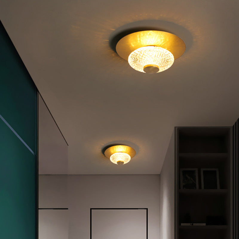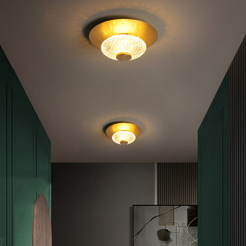 مصباح سقف LED شبه مسطح بتصميم معاصر على شكل قبة دائرية من النحاس والزجاج للممرات