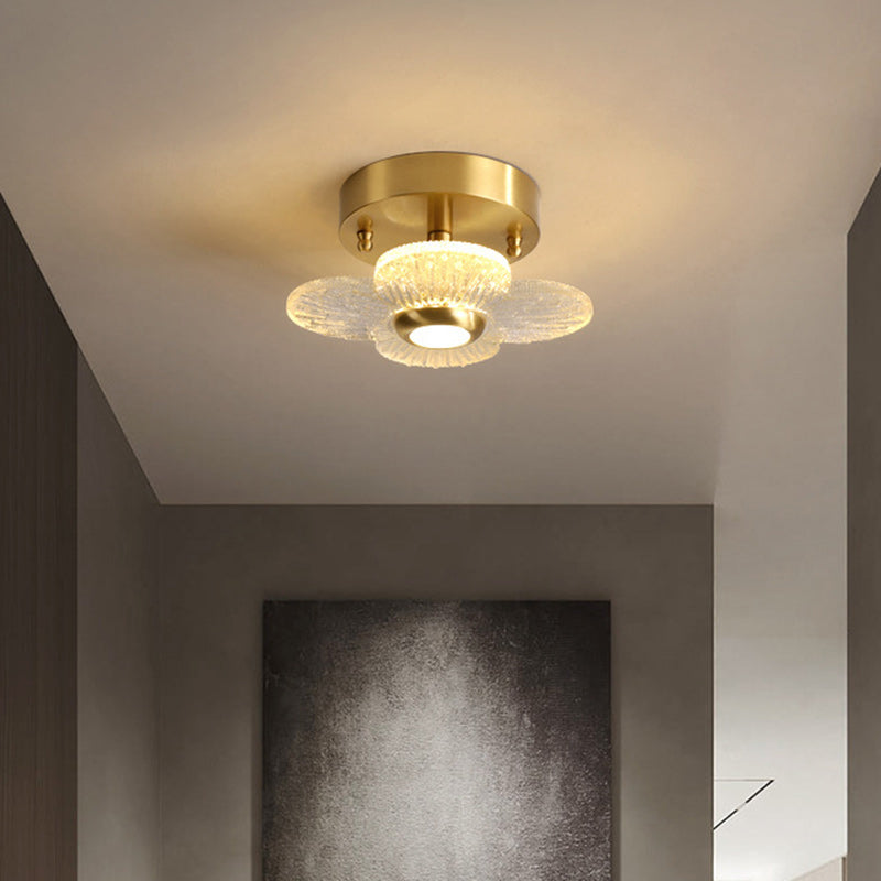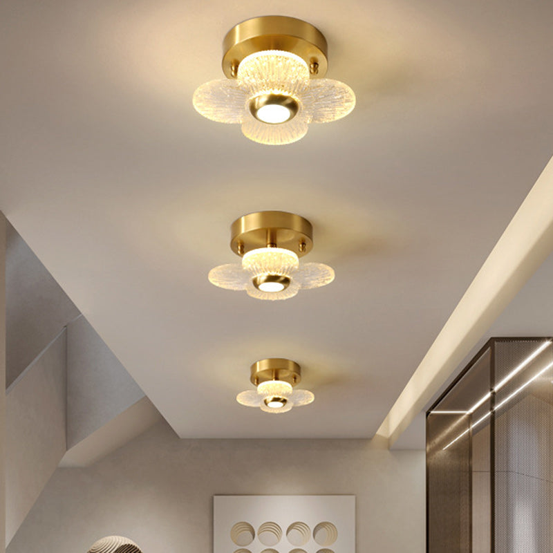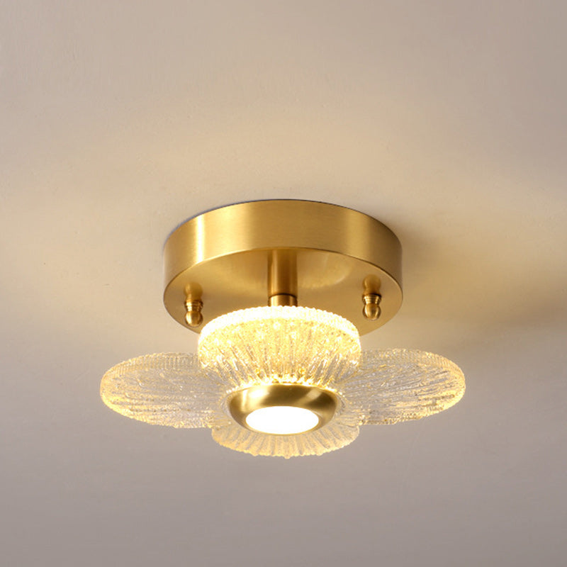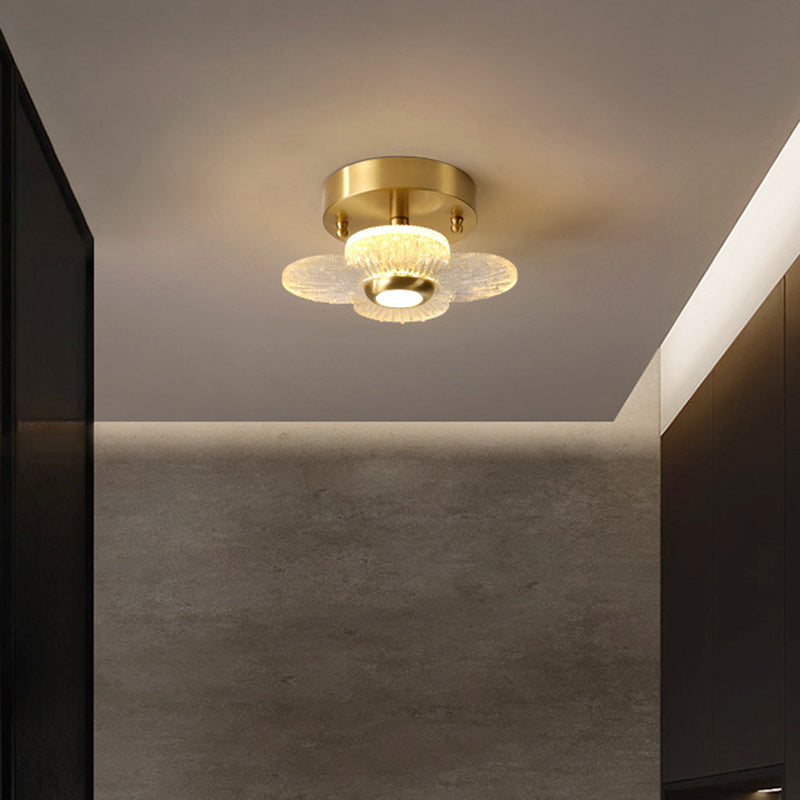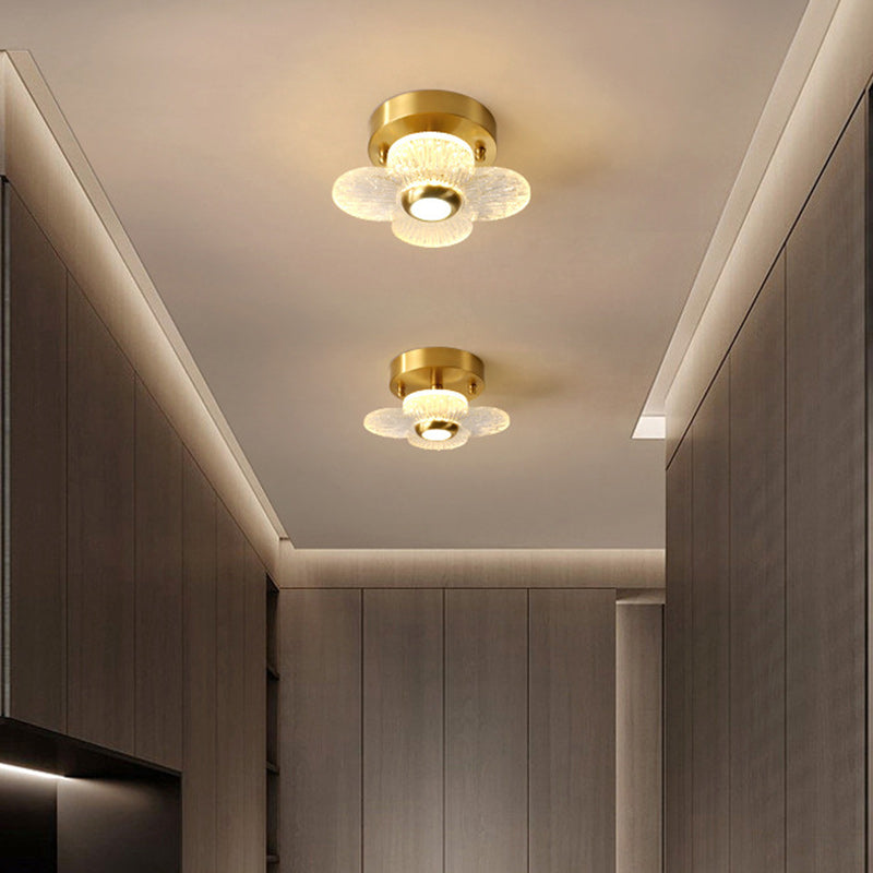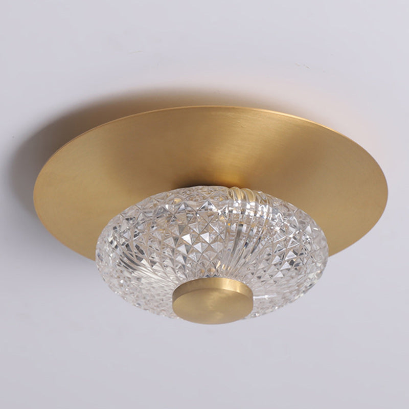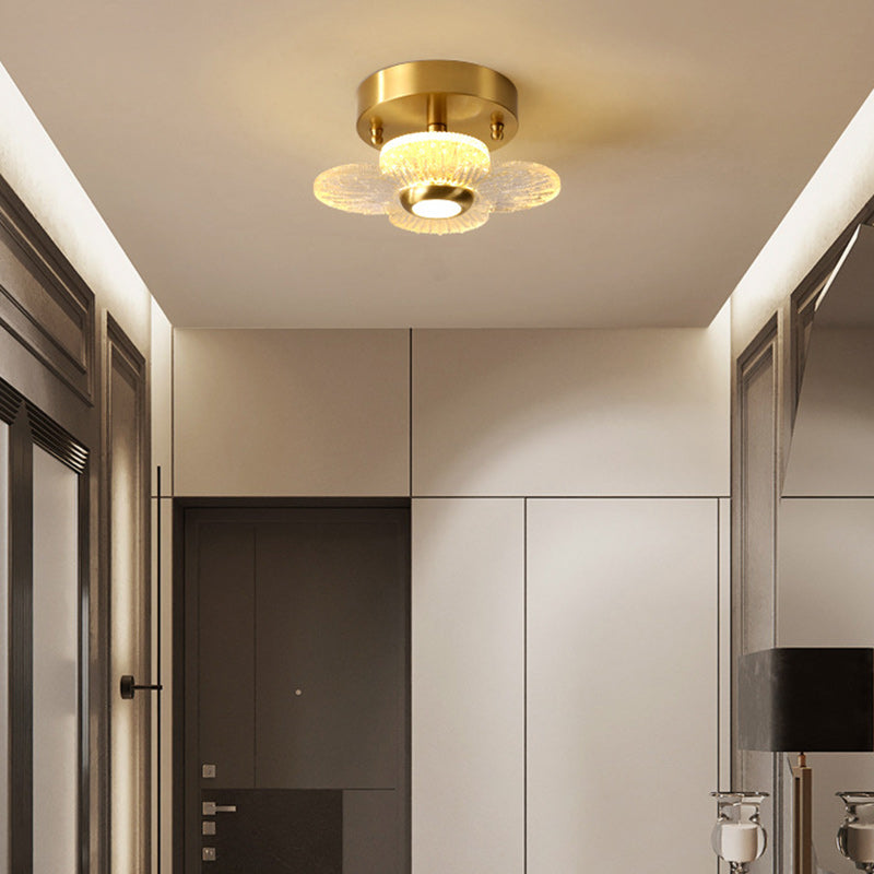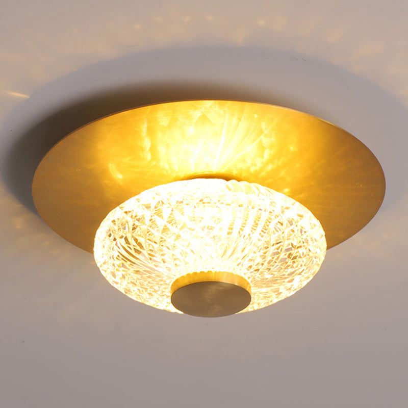 مصباح سقف LED شبه مسطح بتصميم معاصر على شكل قبة دائرية من النحاس والزجاج للممرات