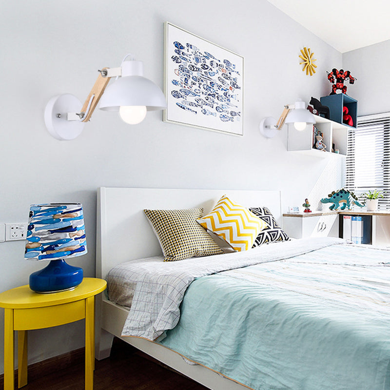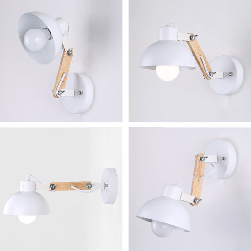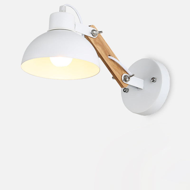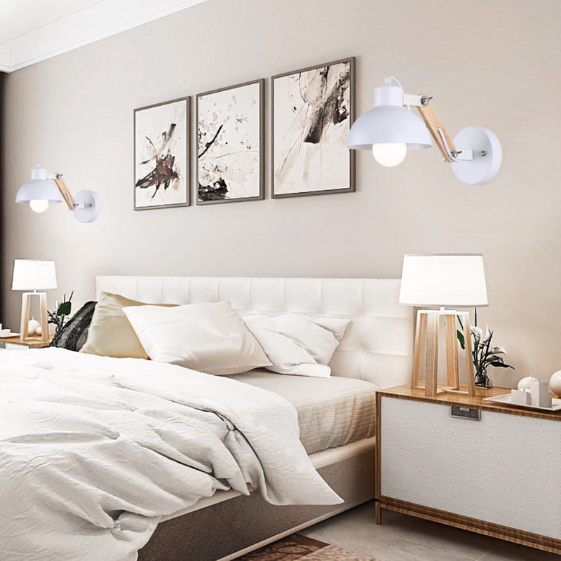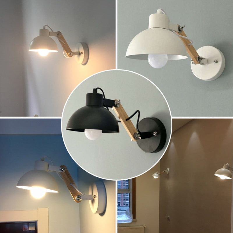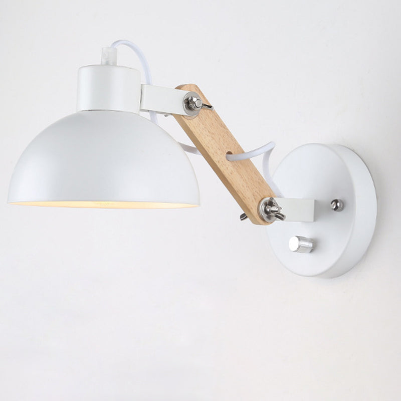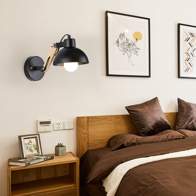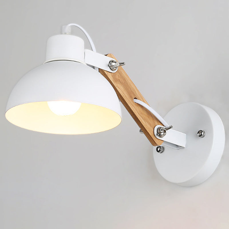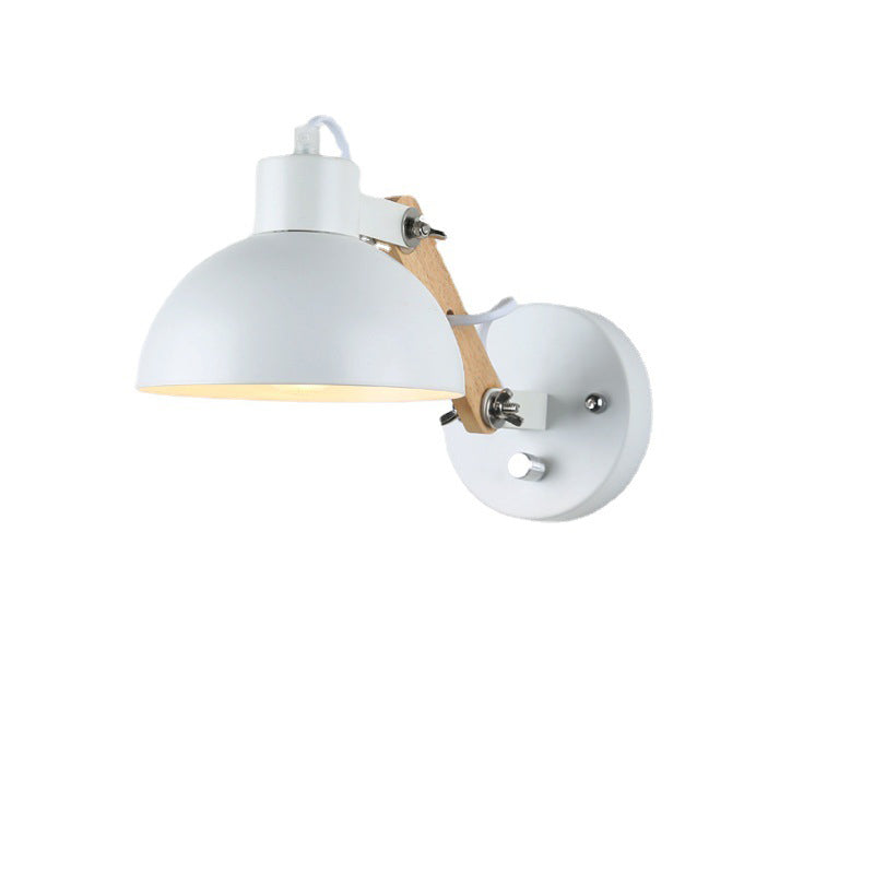 مصباح حائطي بسيط معاصر من الخشب الصلب على شكل نصف دائري مصنوع من الحديد ومصباح واحد لغرفة النوم