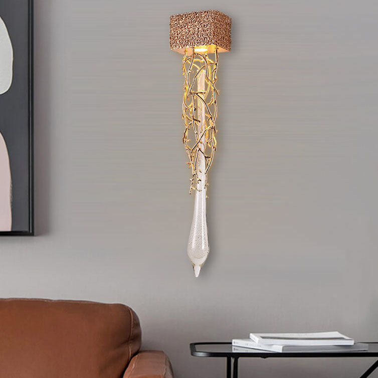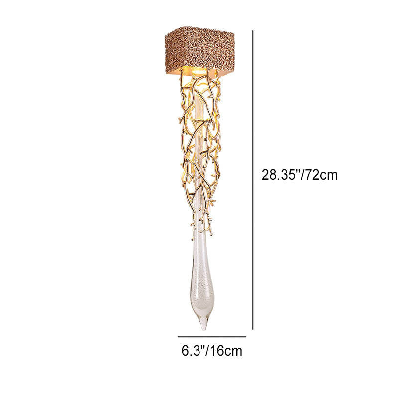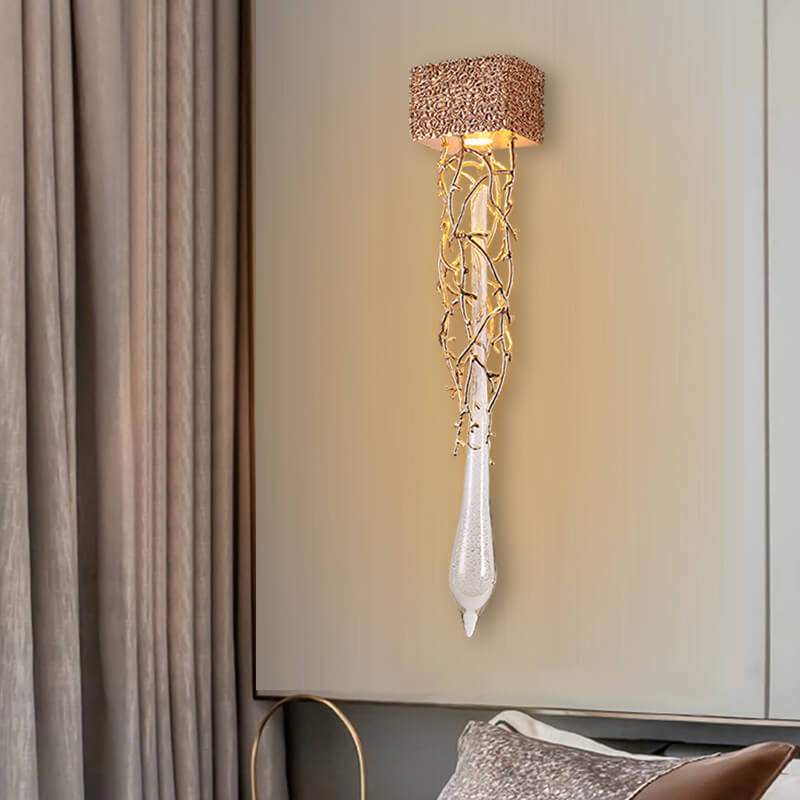مصباح حائط أوروبي فاخر من النحاس بتصميم قطرة ماء كريستالية على شكل فرع شجرة