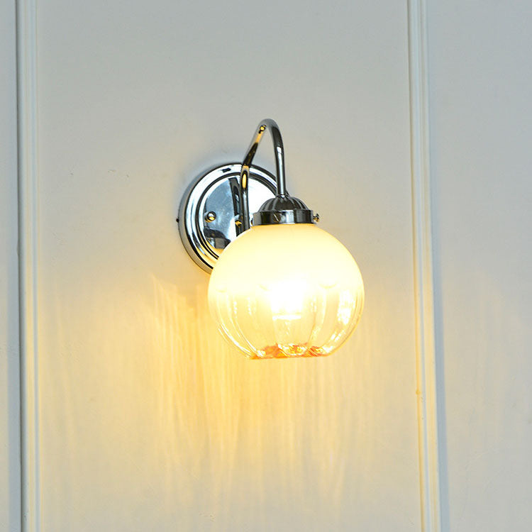 مصباح حائطي فاخر من الزجاج والحديد بتصميم أوروبي فاتح، مزود بمصباح واحد