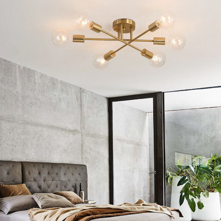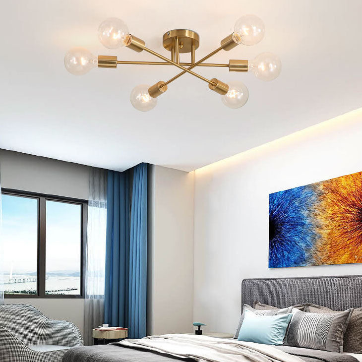 ثريا أوروبية فاخرة بإطار ذهبي وغطاء زجاجي بستة مصابيح