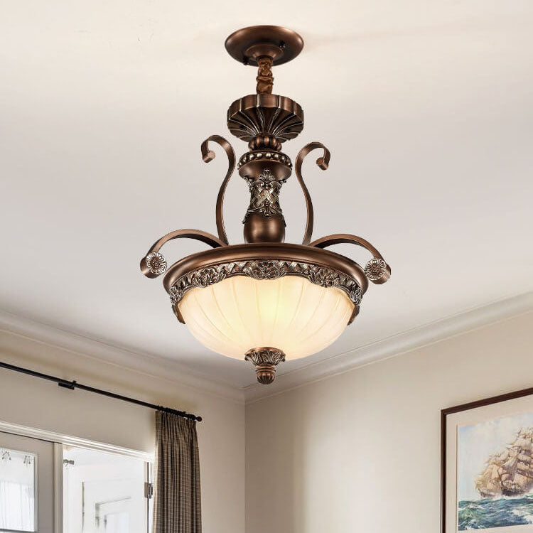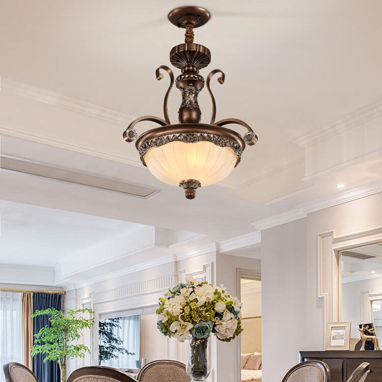ثريا أوروبية عتيقة نصف دائرية منحوتة من الحديد والزجاج بثلاثة مصابيح