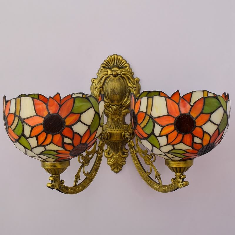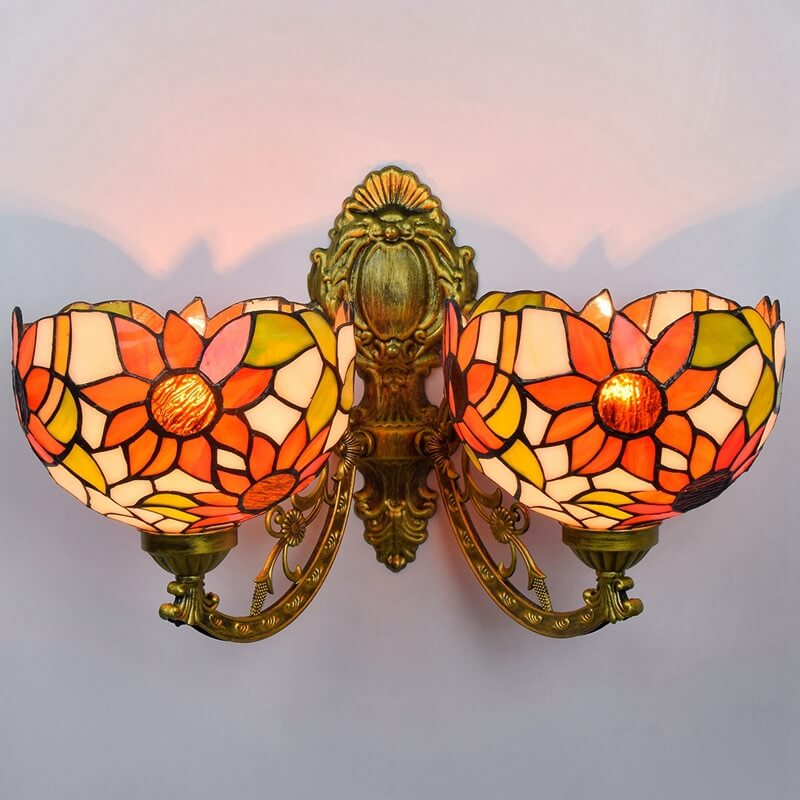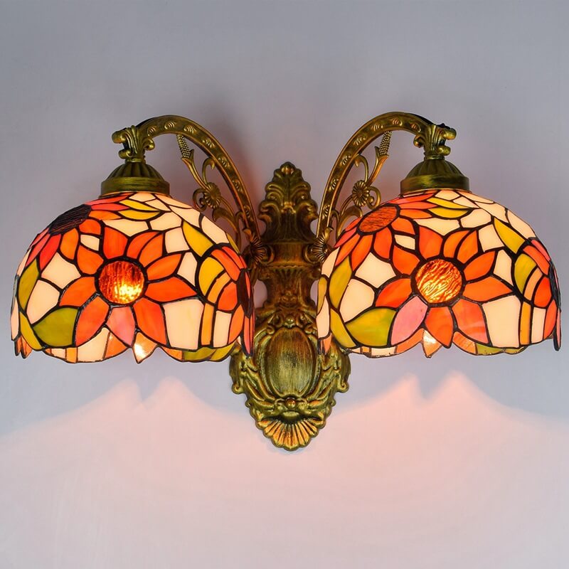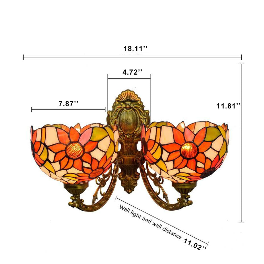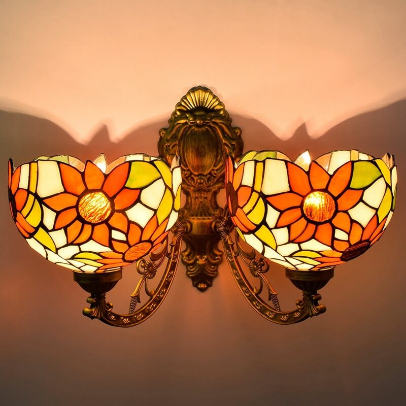 مصباح حائطي أوروبي من الزجاج الملون تيفاني عباد الشمس، مزود بضوءين