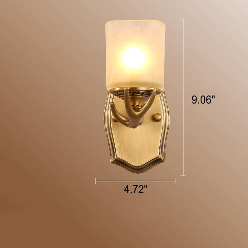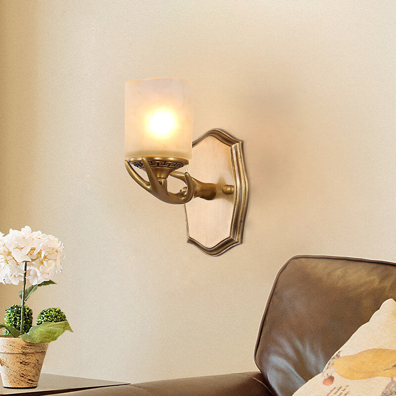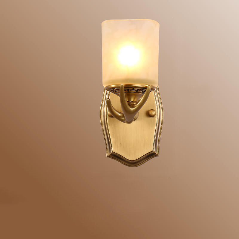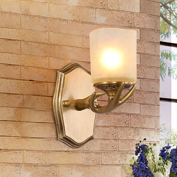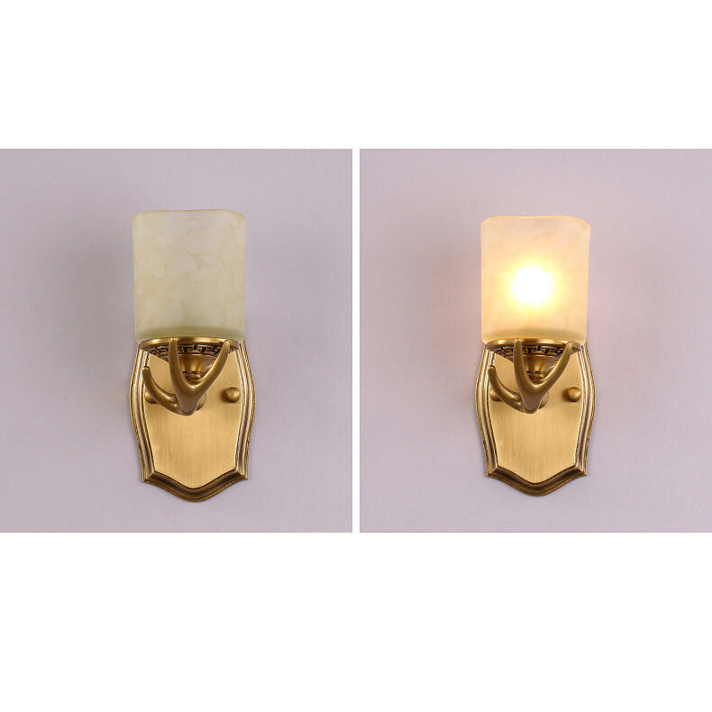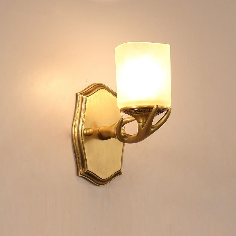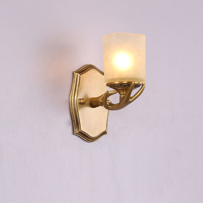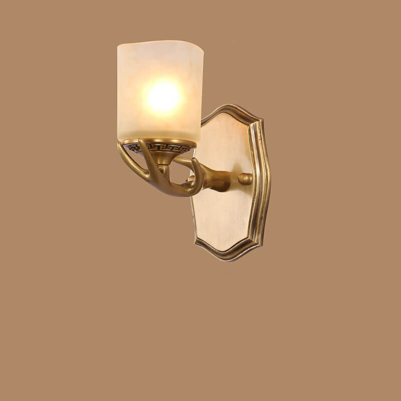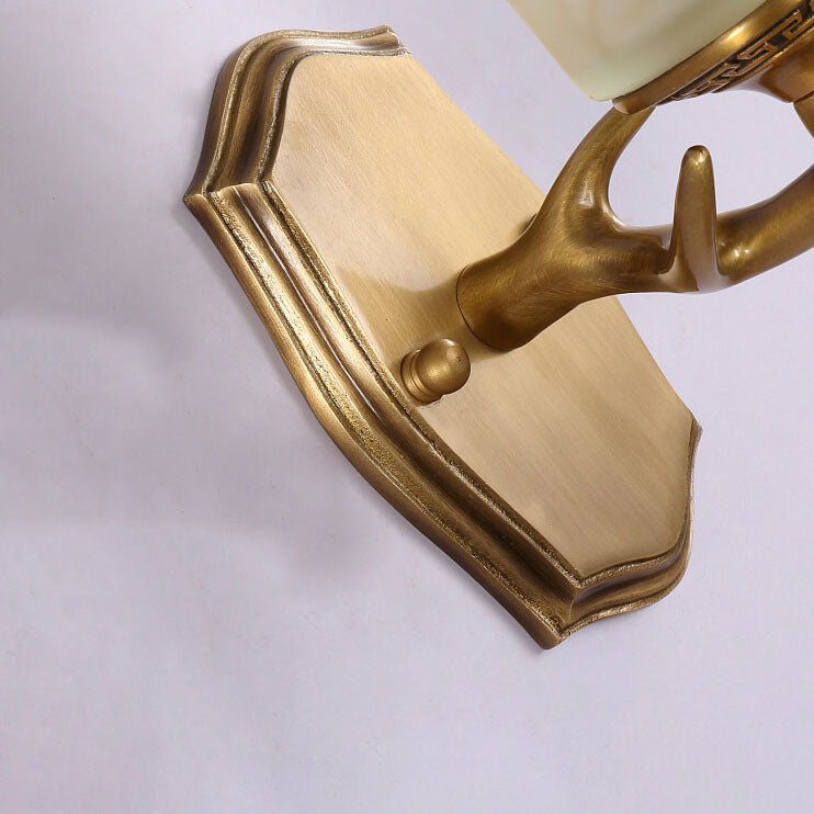 مصباح حائطي أوروبي عتيق مصنوع من النحاس والزجاج ومصباح واحد