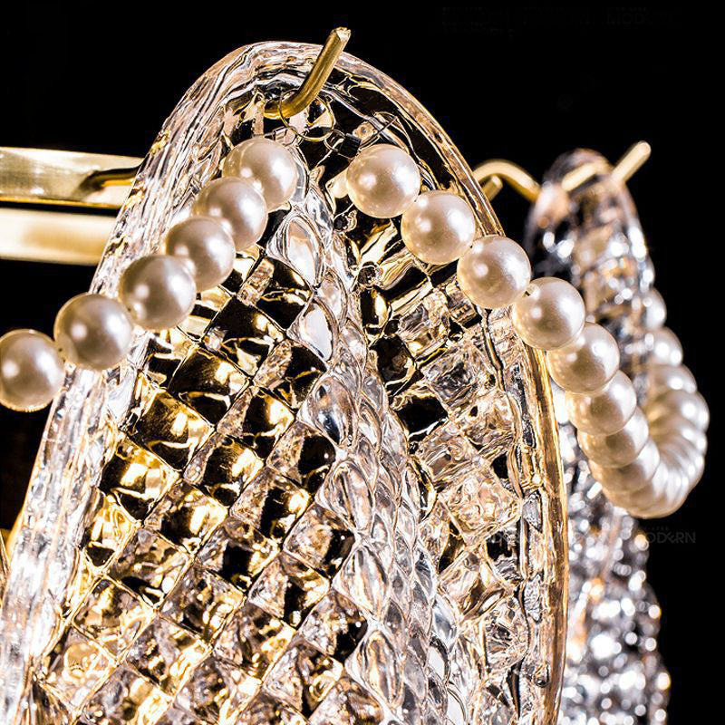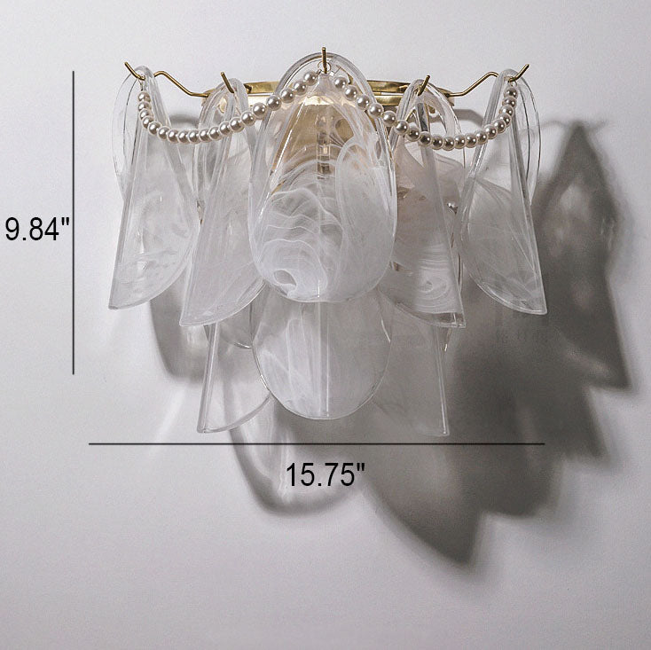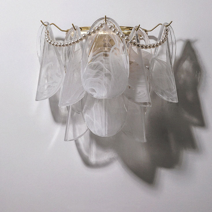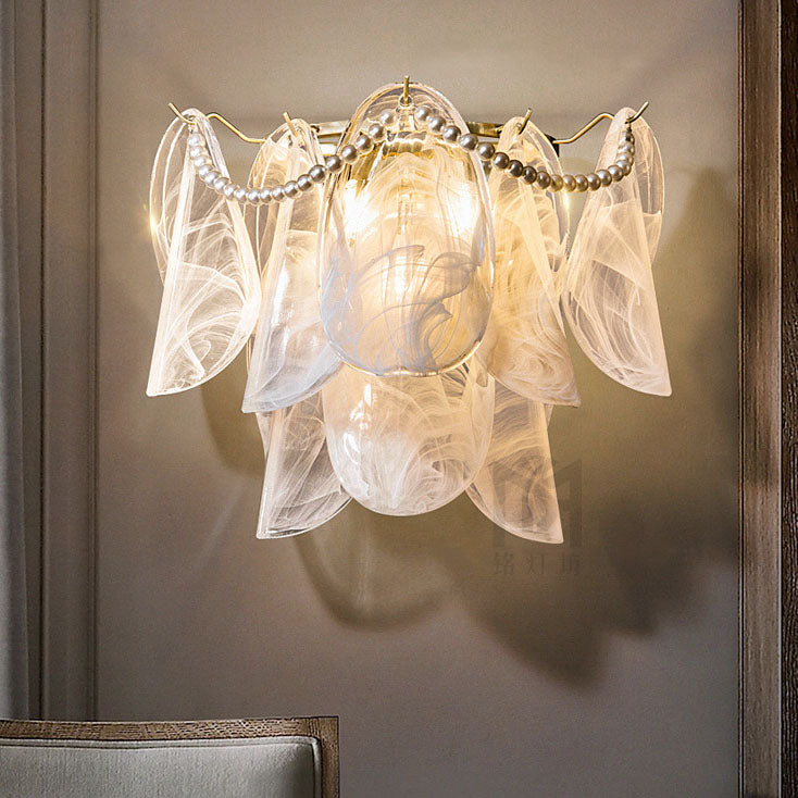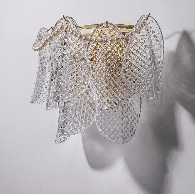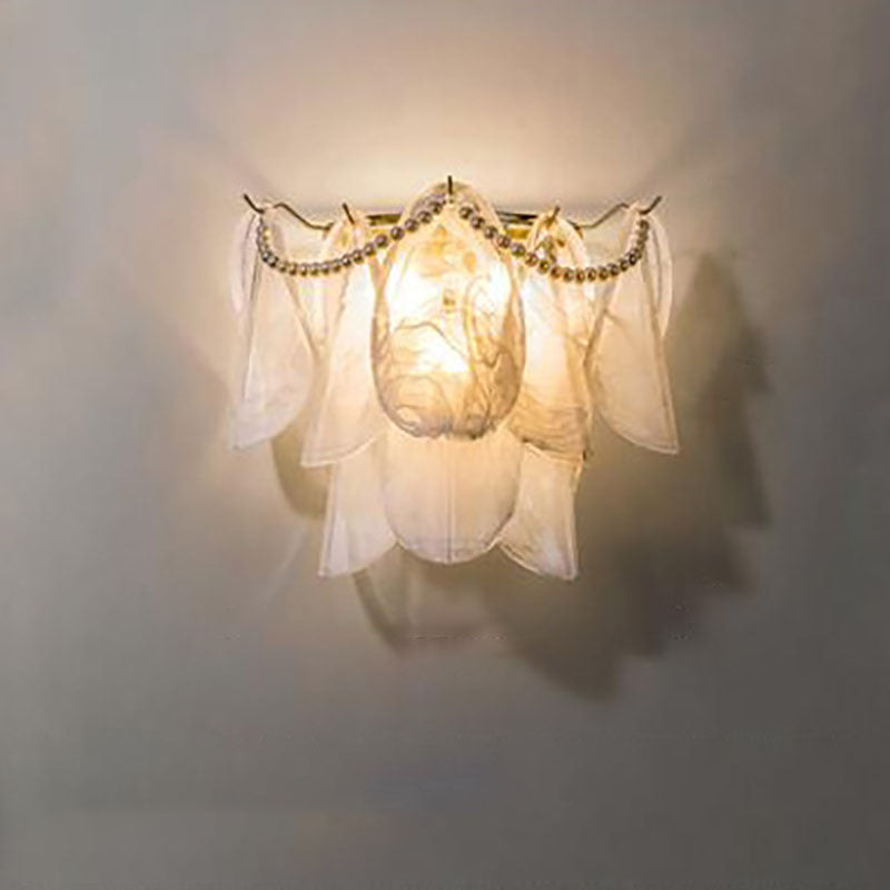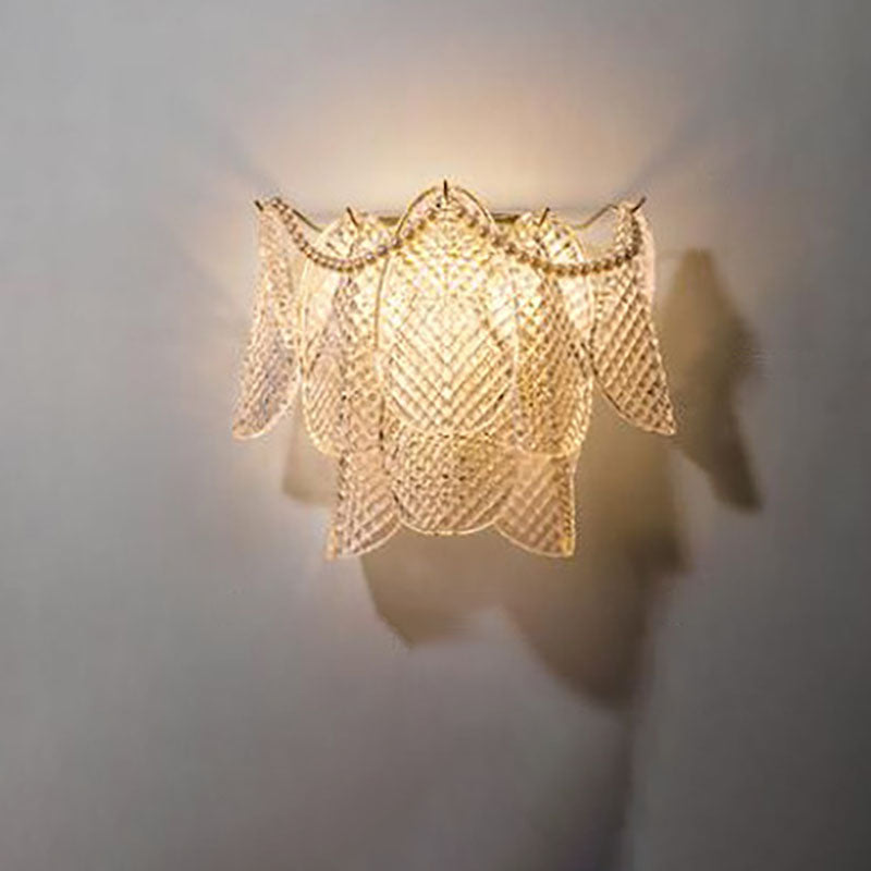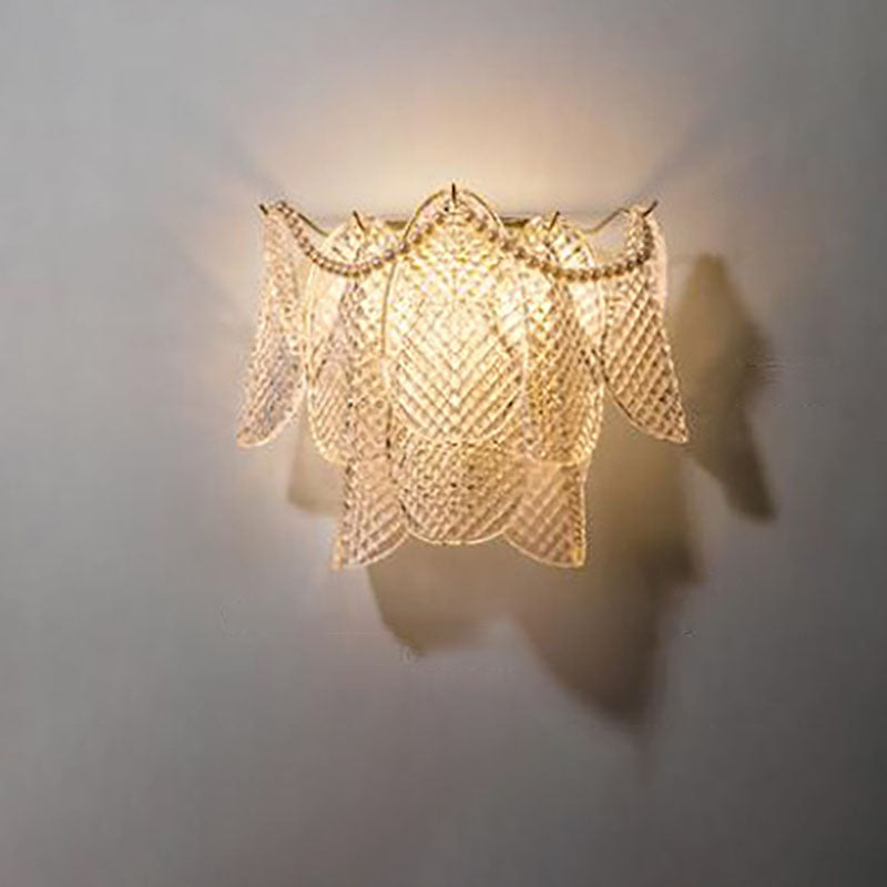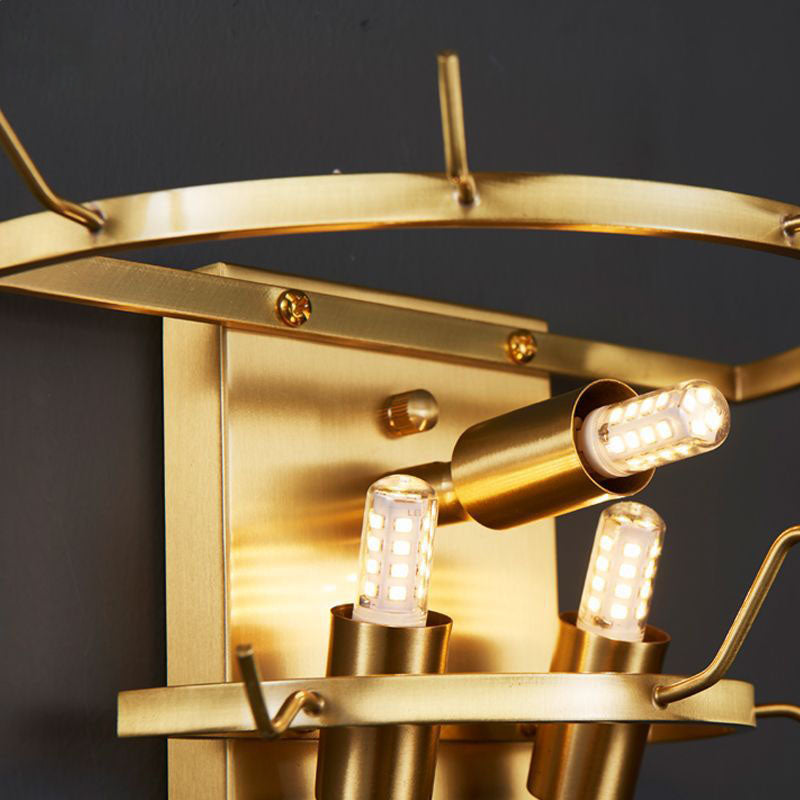 مصباح حائط فرنسي فاخر من الزجاج والنحاس بثلاثة مصابيح
