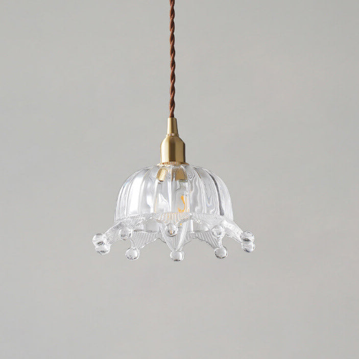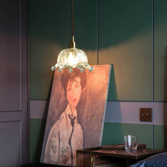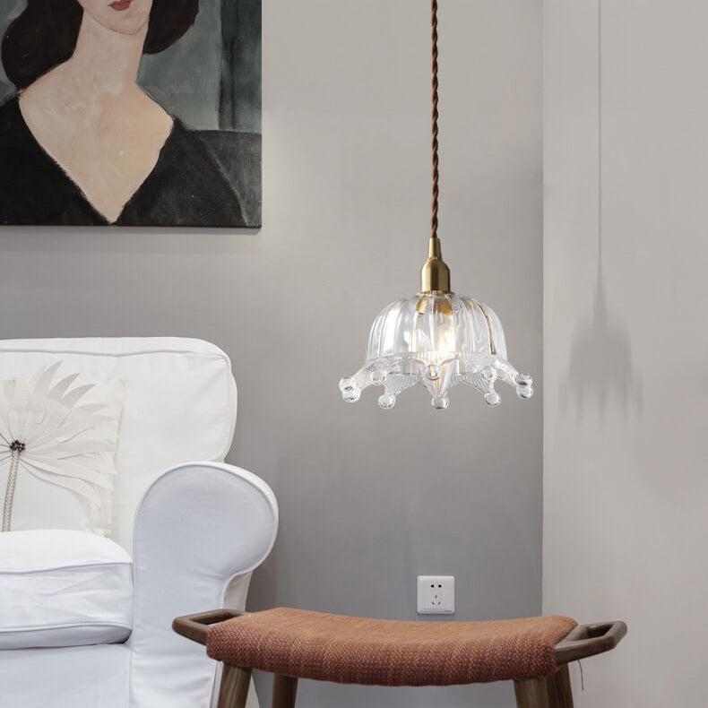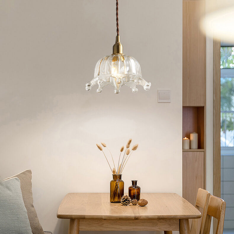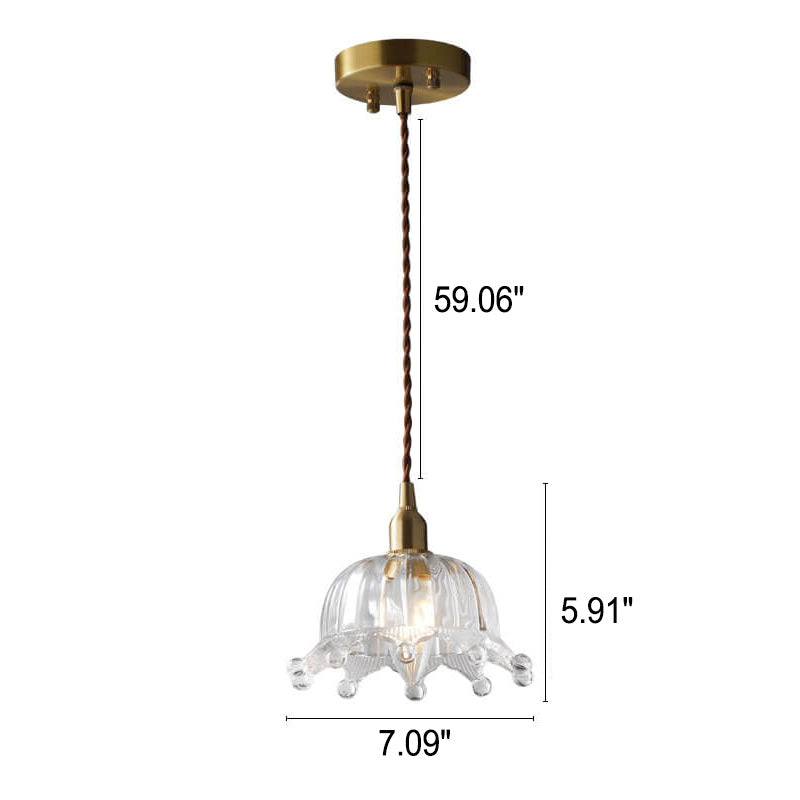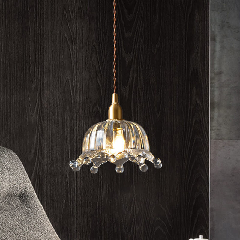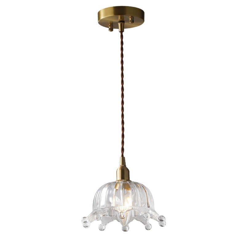 مصباح معلق فرنسي فاخر من الزجاج والنحاس مزود بمصباح واحد
