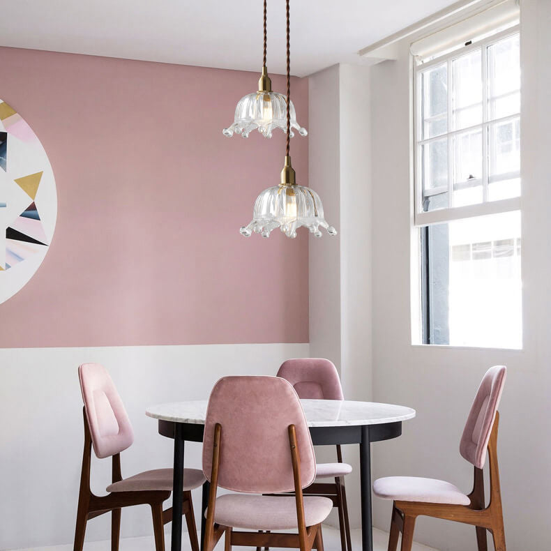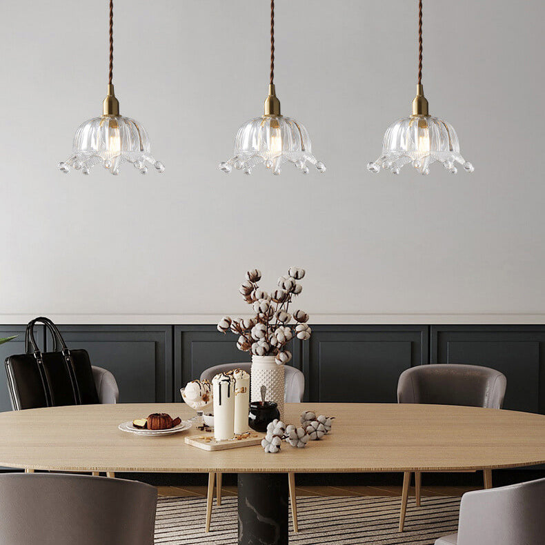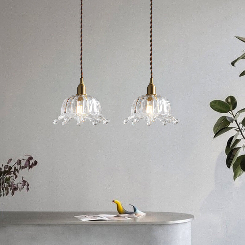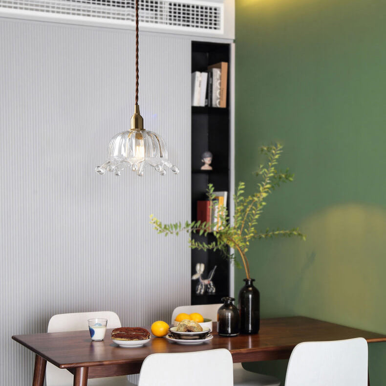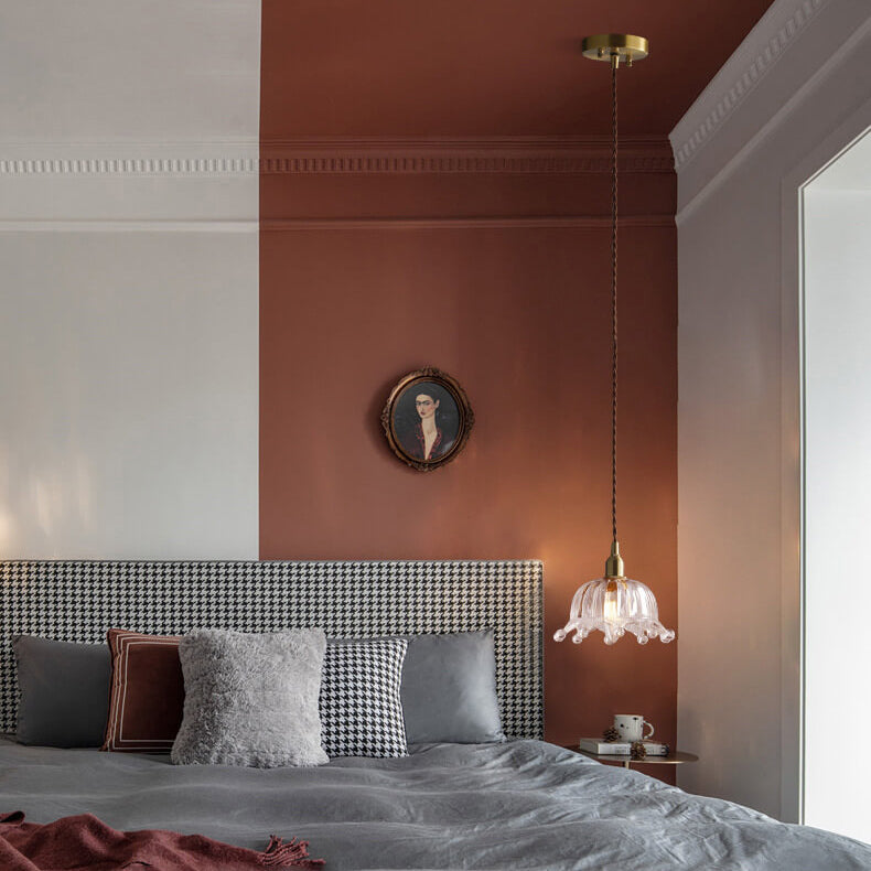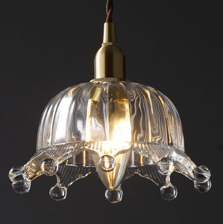 مصباح معلق فرنسي فاخر من الزجاج والنحاس مزود بمصباح واحد