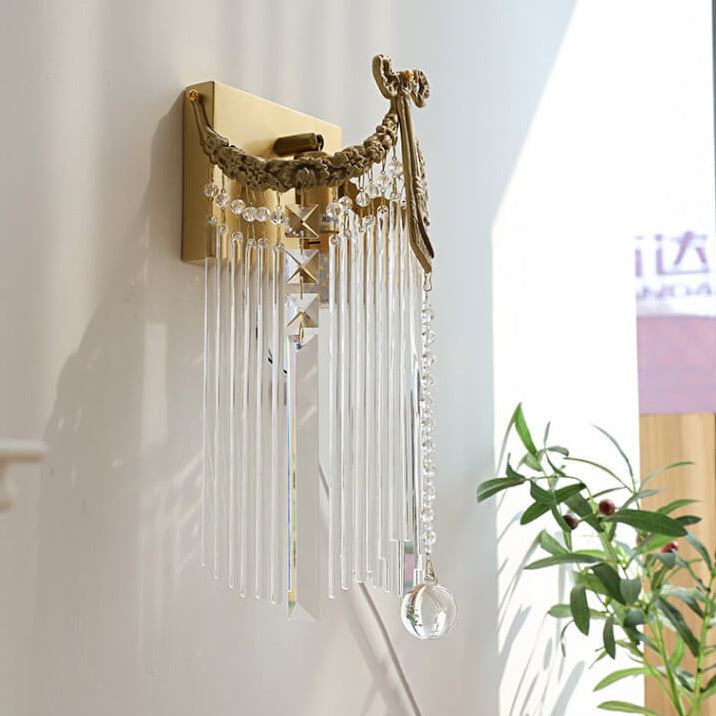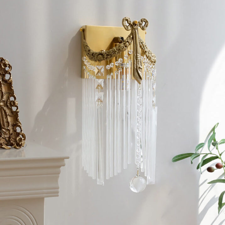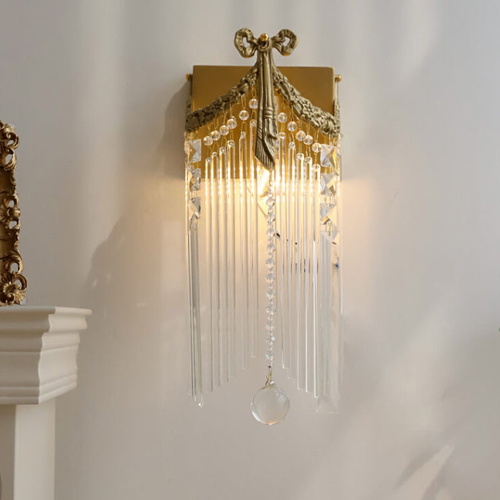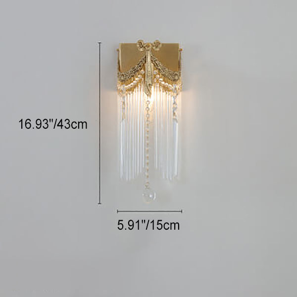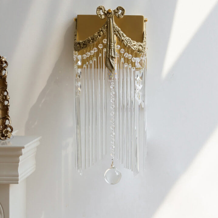 مصباح حائط فرنسي حديث فاخر من النحاس والكريستال مزود بمصباح واحد