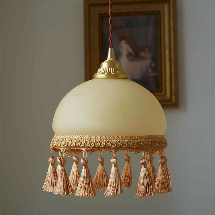 مصباح معلق فرنسي عتيق من النحاس بالكامل مزود بمصباح واحد