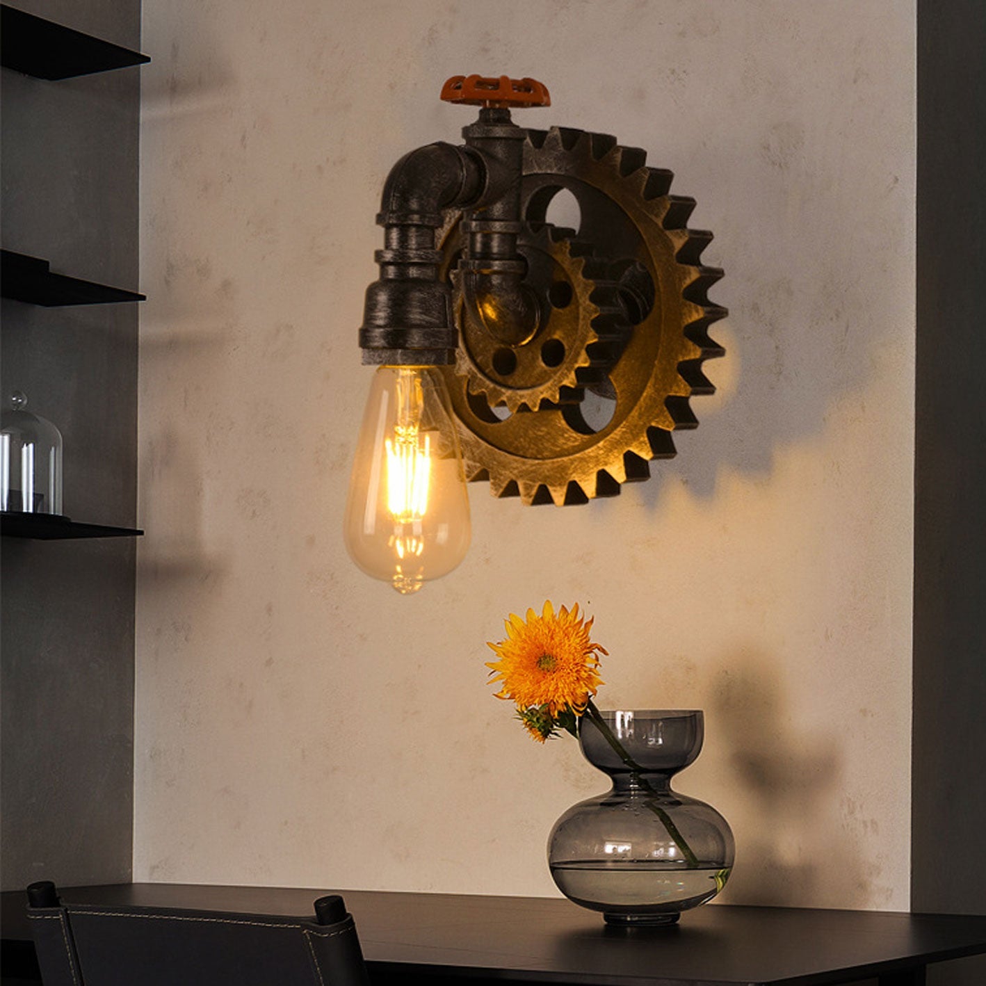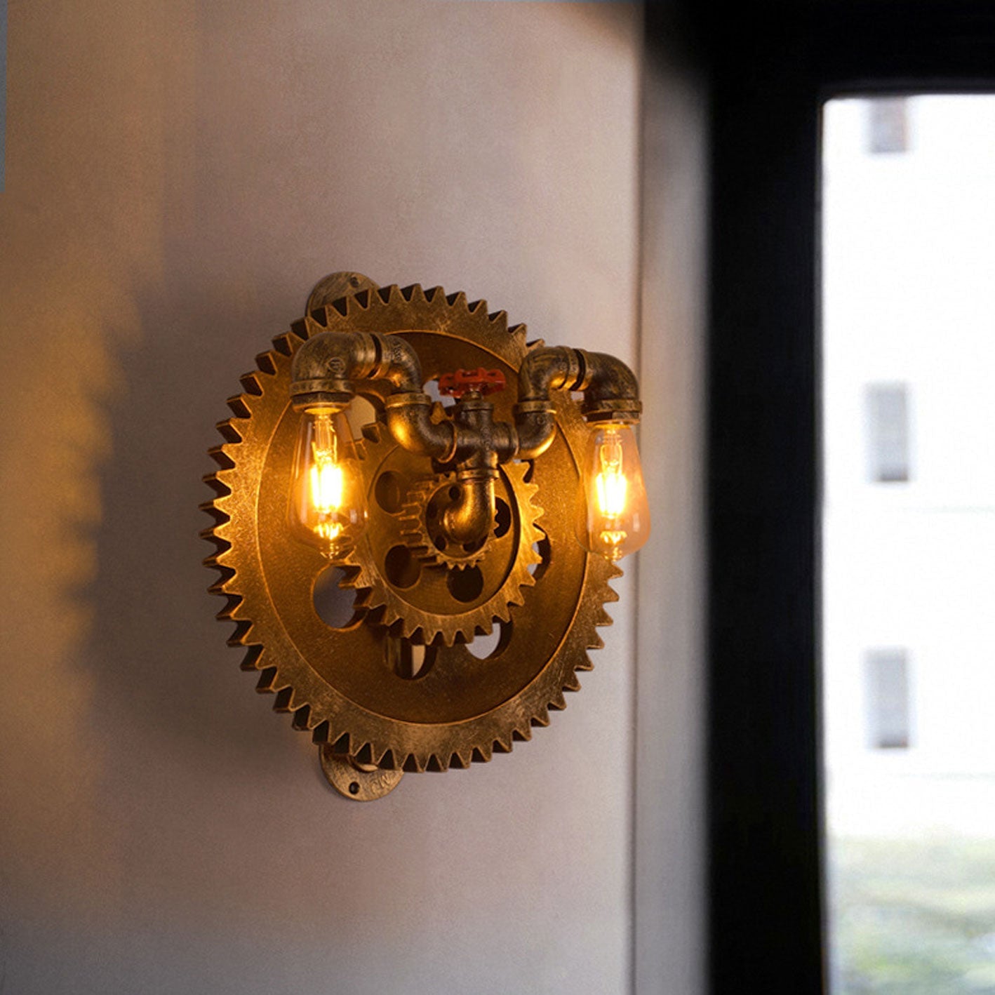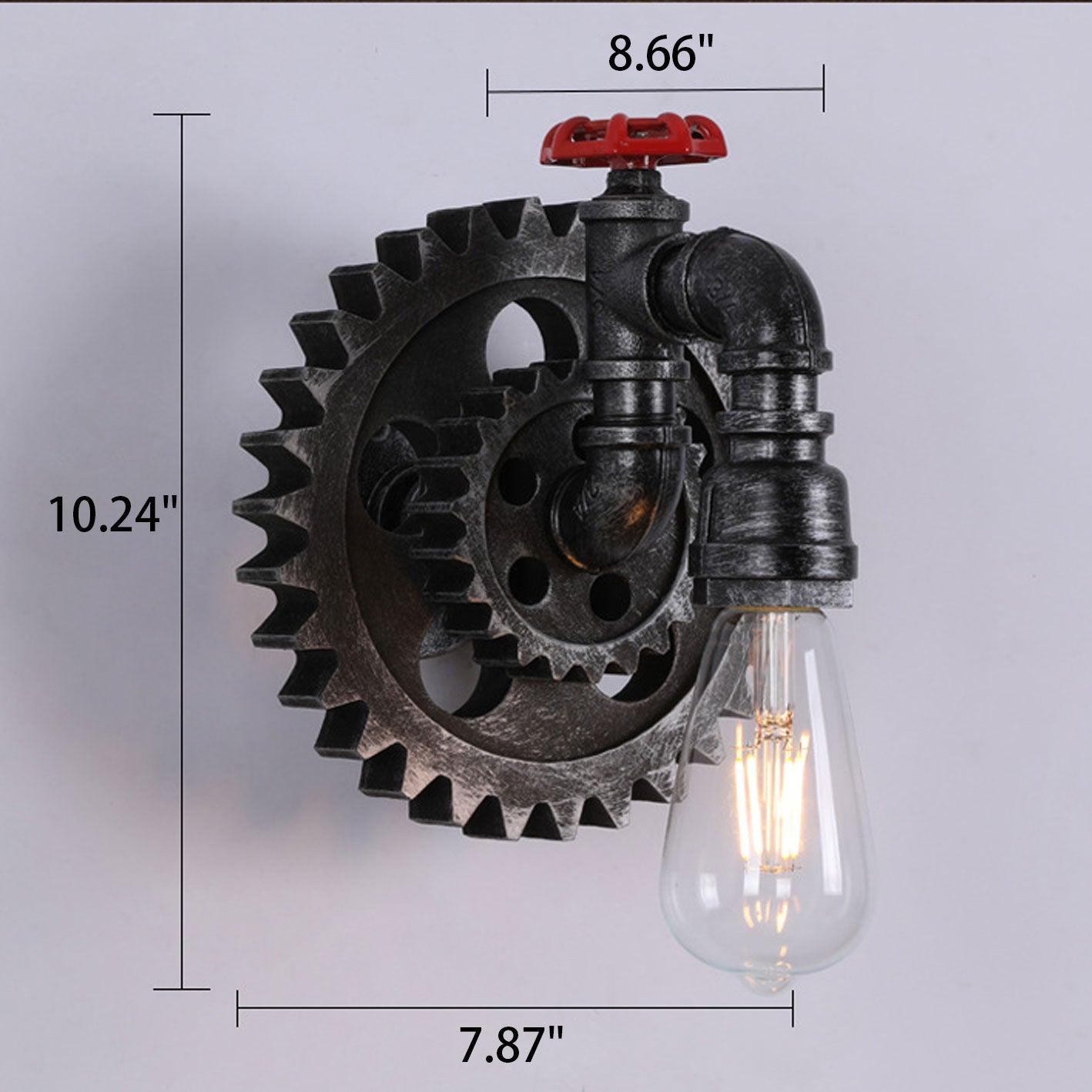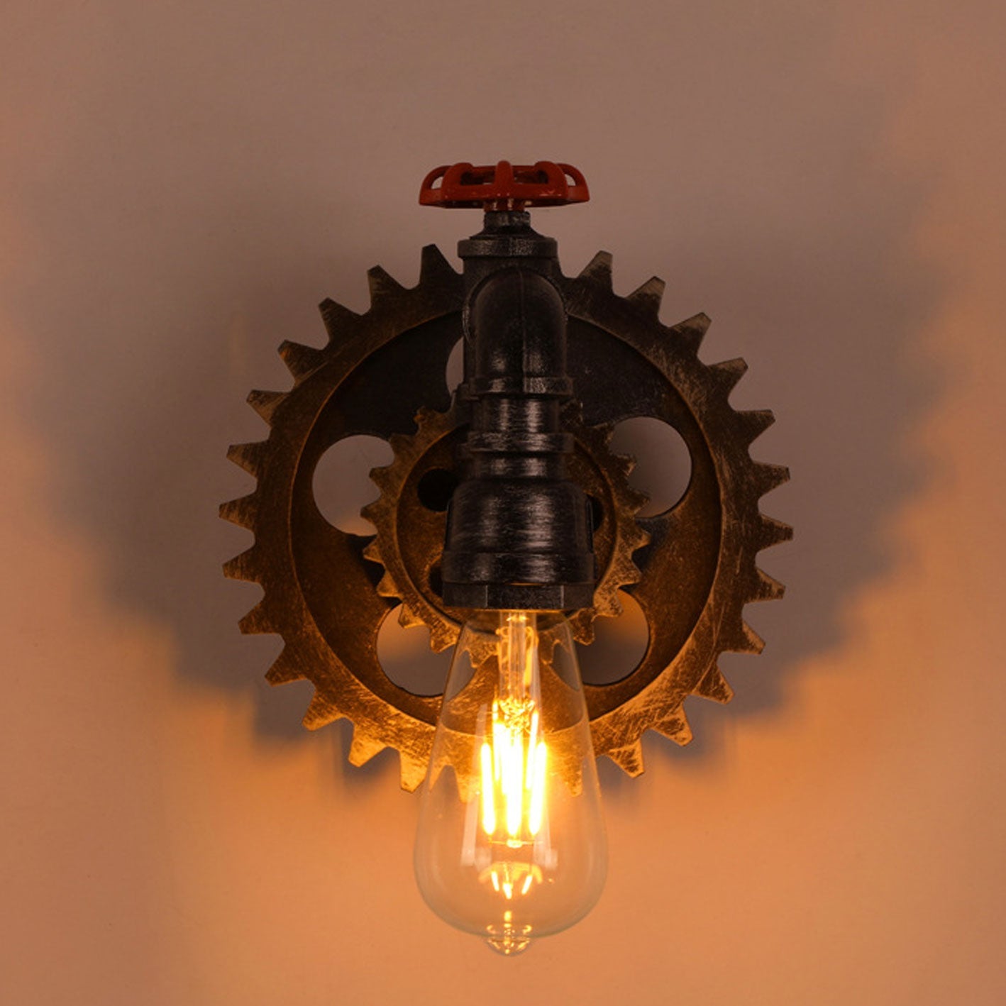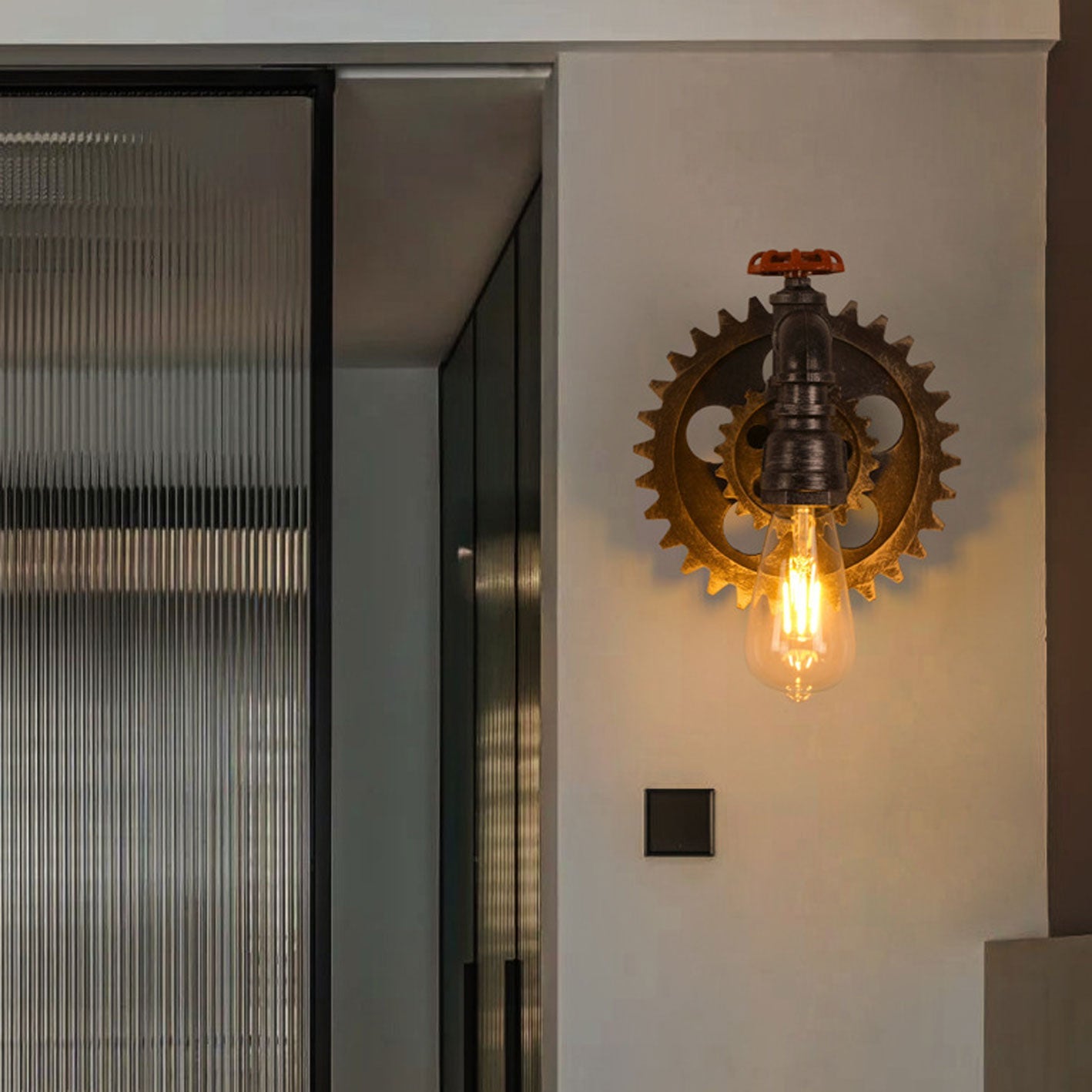 مصباح حائط صناعي إبداعي على شكل ترس من الحديد المطاوع بنصف ضوء