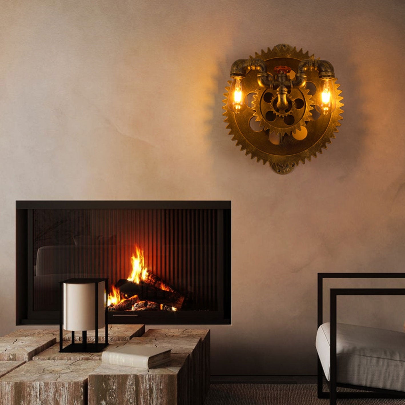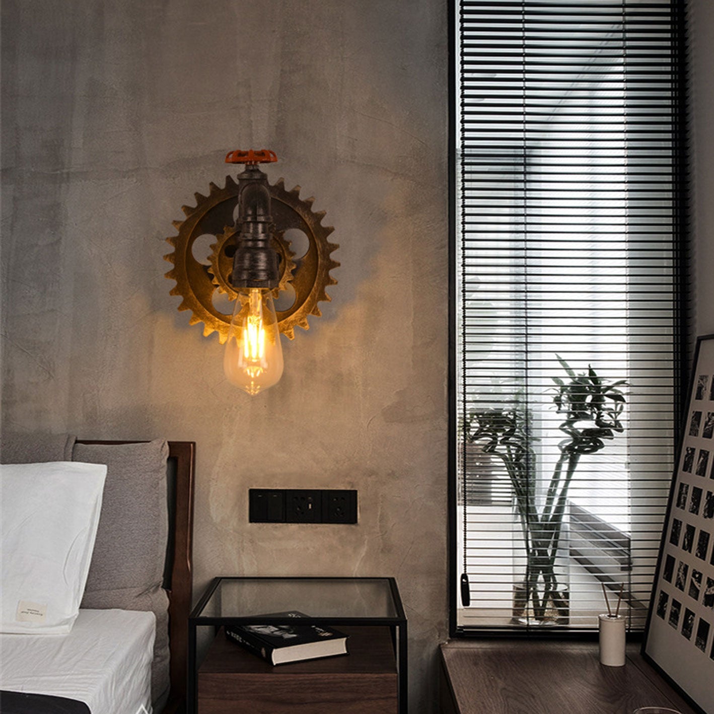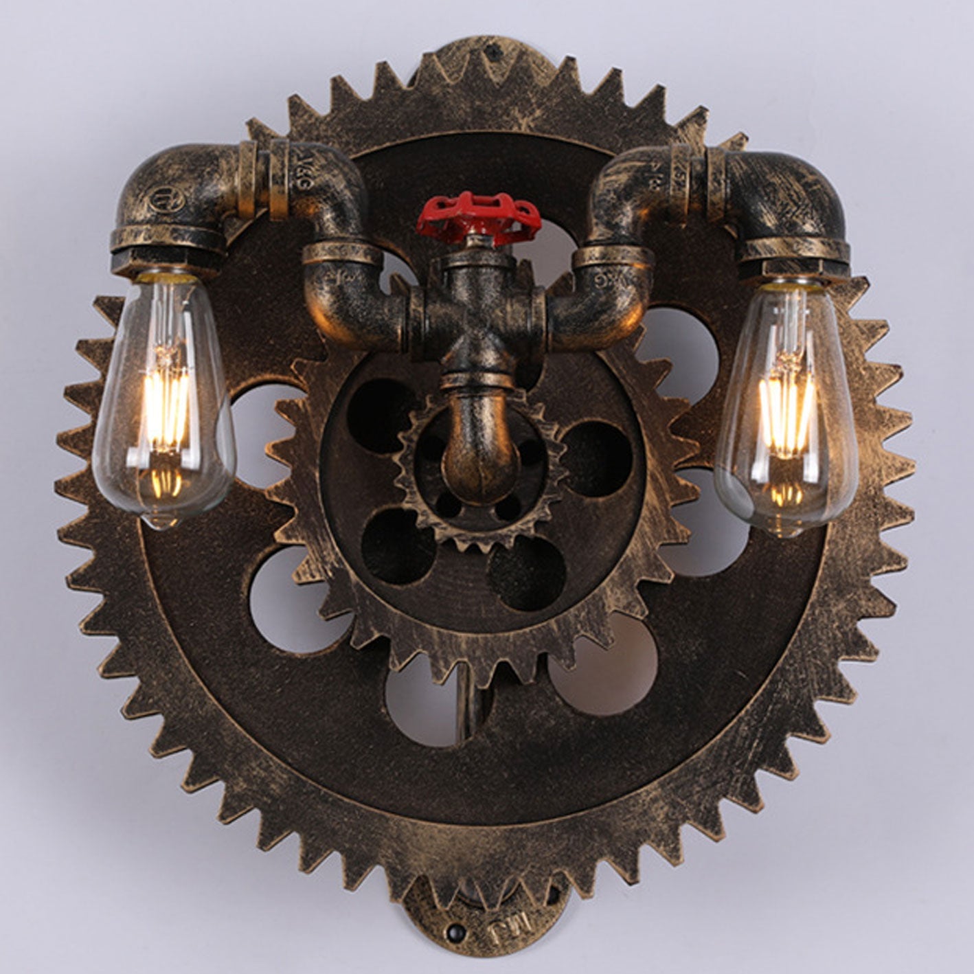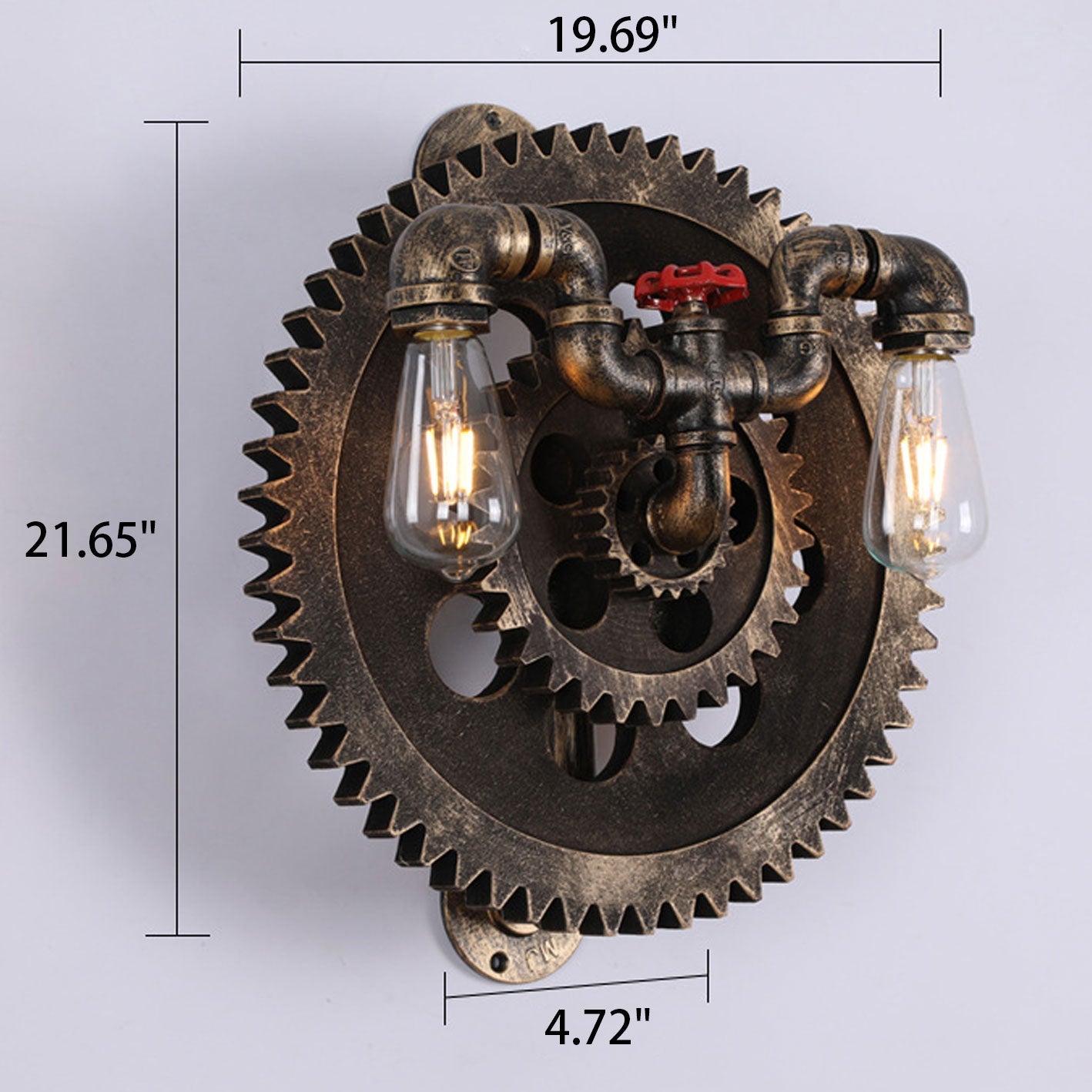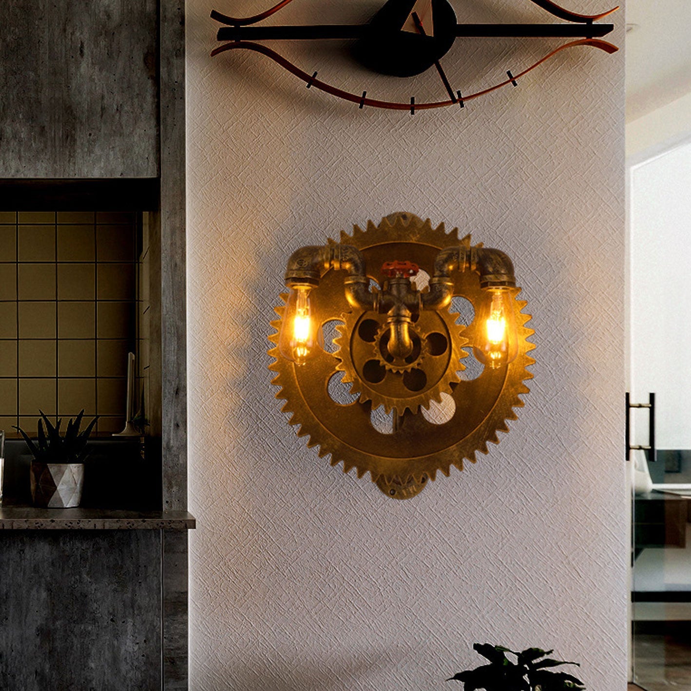 مصباح حائط صناعي إبداعي على شكل ترس من الحديد المطاوع بنصف ضوء